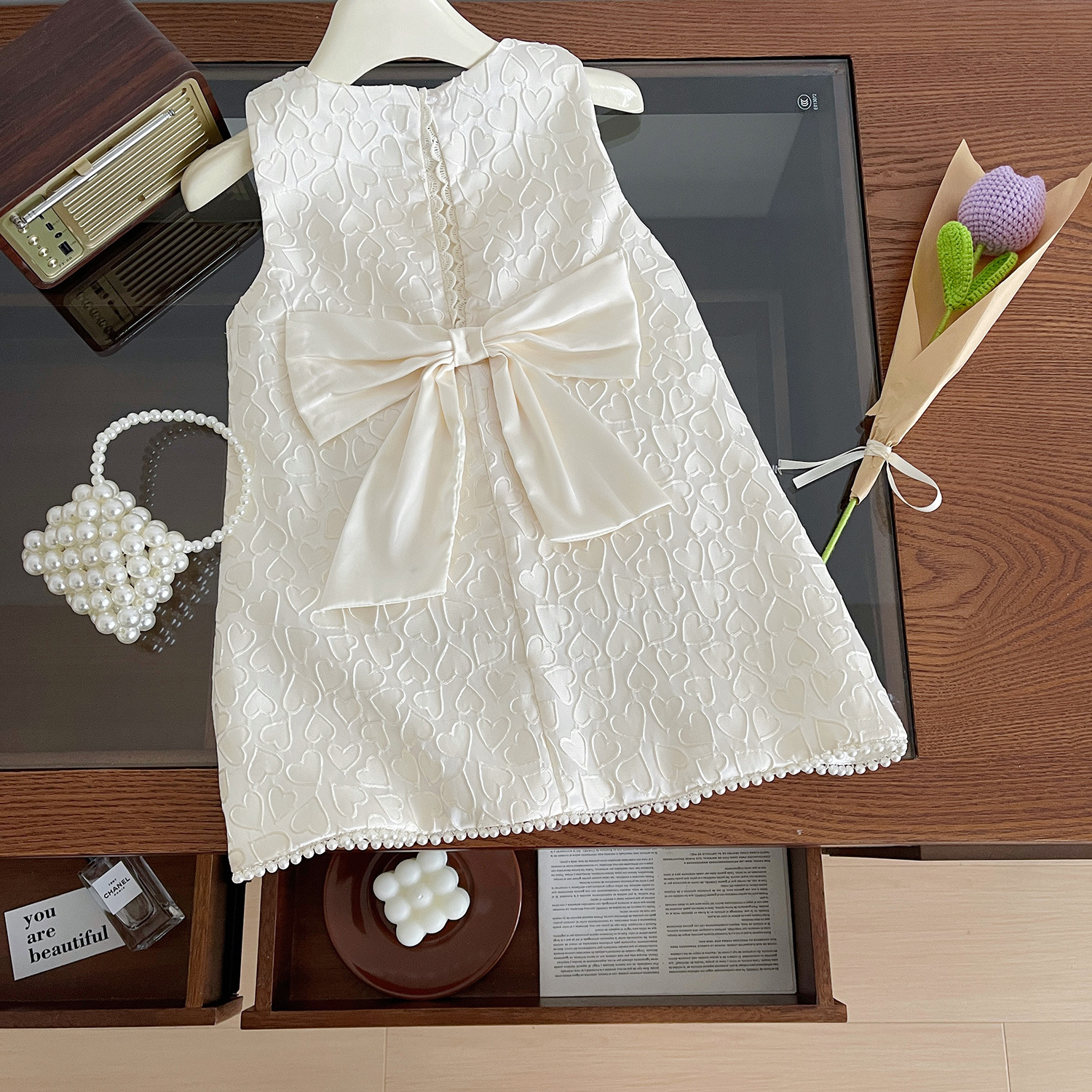 소녀 공주 원피스 2024 여름 새로운 한국식 어린이 민소매 활 진주 원피스 국경 간 배달스토어 가기