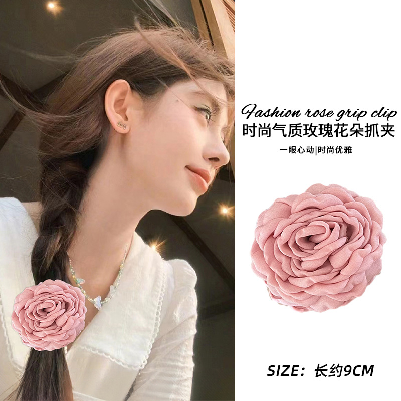 빨간 장미 꽃 클립 여성 머리 장식 꽃 접시 머리핀 고급 감각 뒤 머리 자오 루시 같은 상어 클립 머리