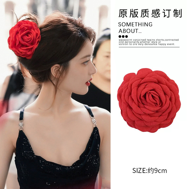 빨간 장미 꽃 클립 여성 머리 장식 꽃 접시 머리핀 고급 감각 뒤 머리 자오 루시 같은 상어 클립 머리스토어 가기