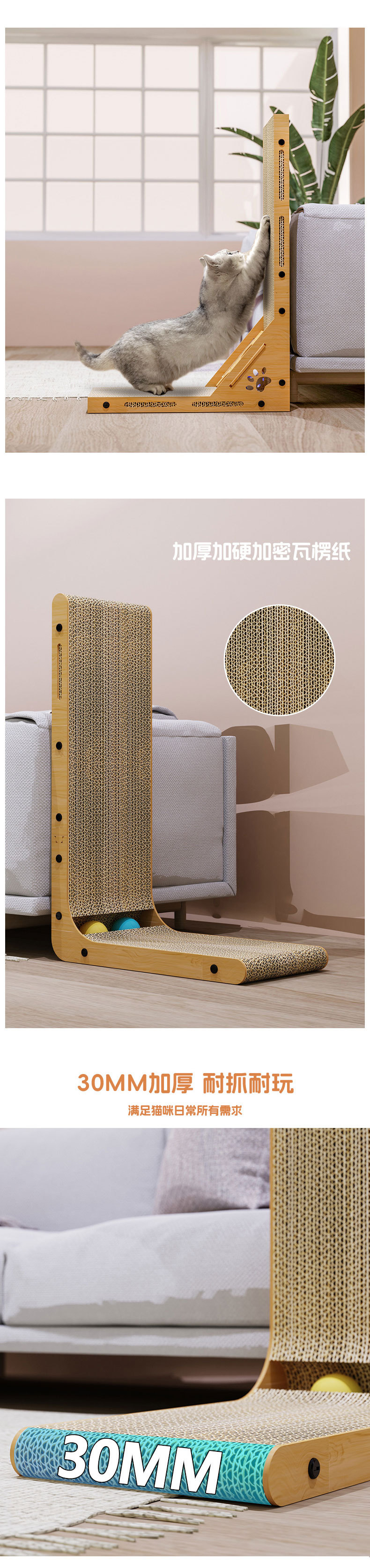 공장 직접 공급 L 형 벽 골판지 종이 스크래치 보드 고양이 스크래치 보드 수직 스크래치 저항하는 두꺼운 연삭 발톱 자체-Hi 애완 동물 용품