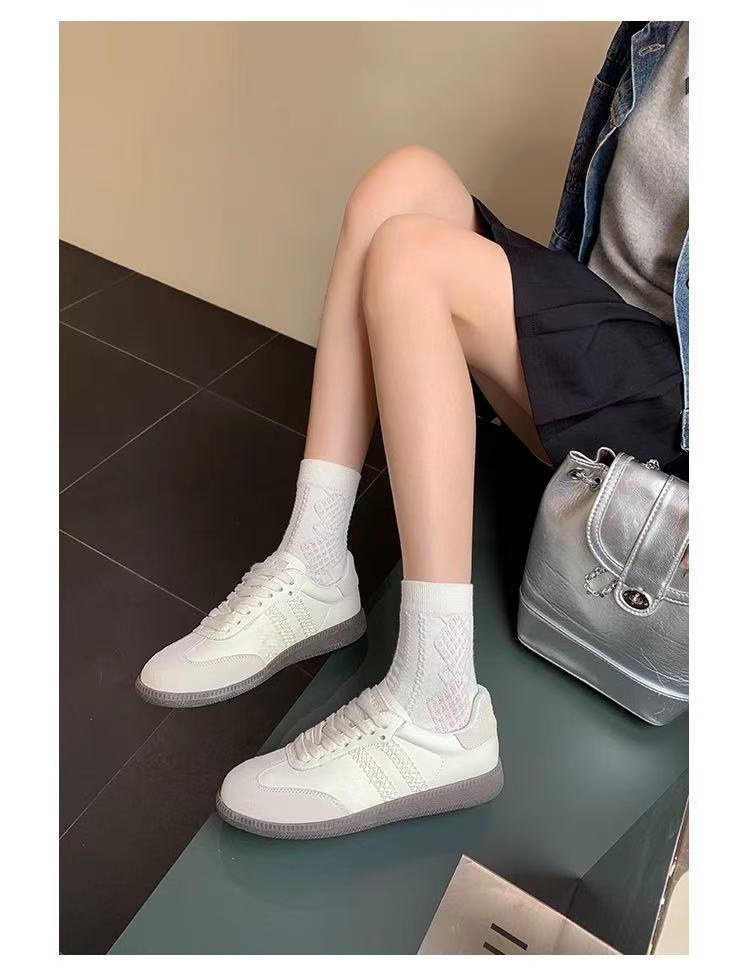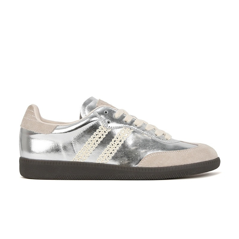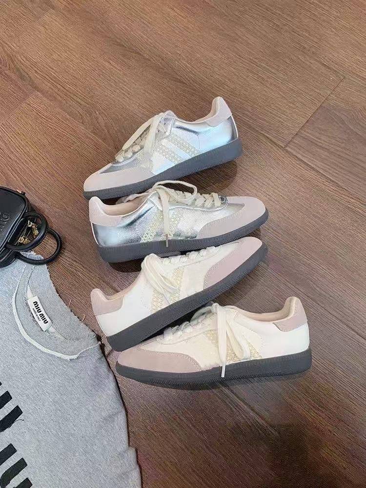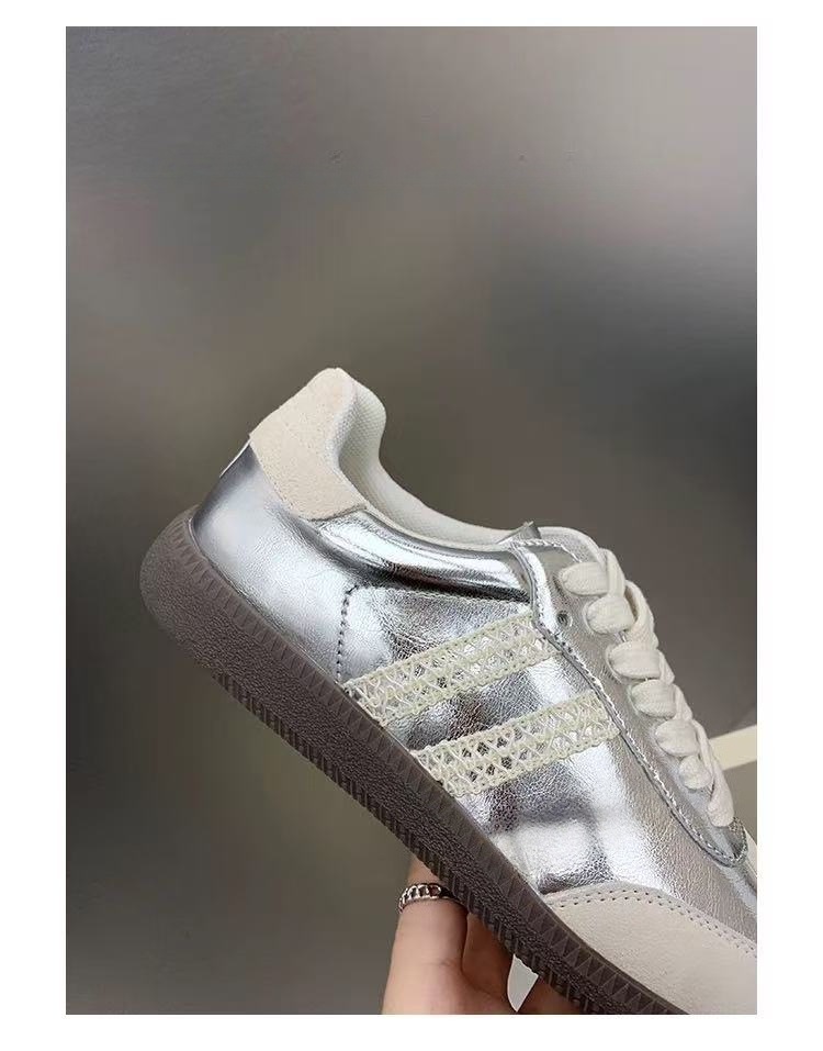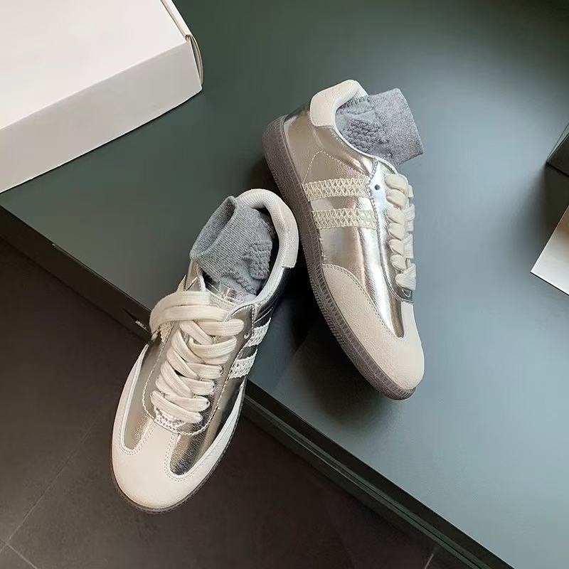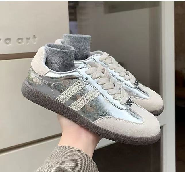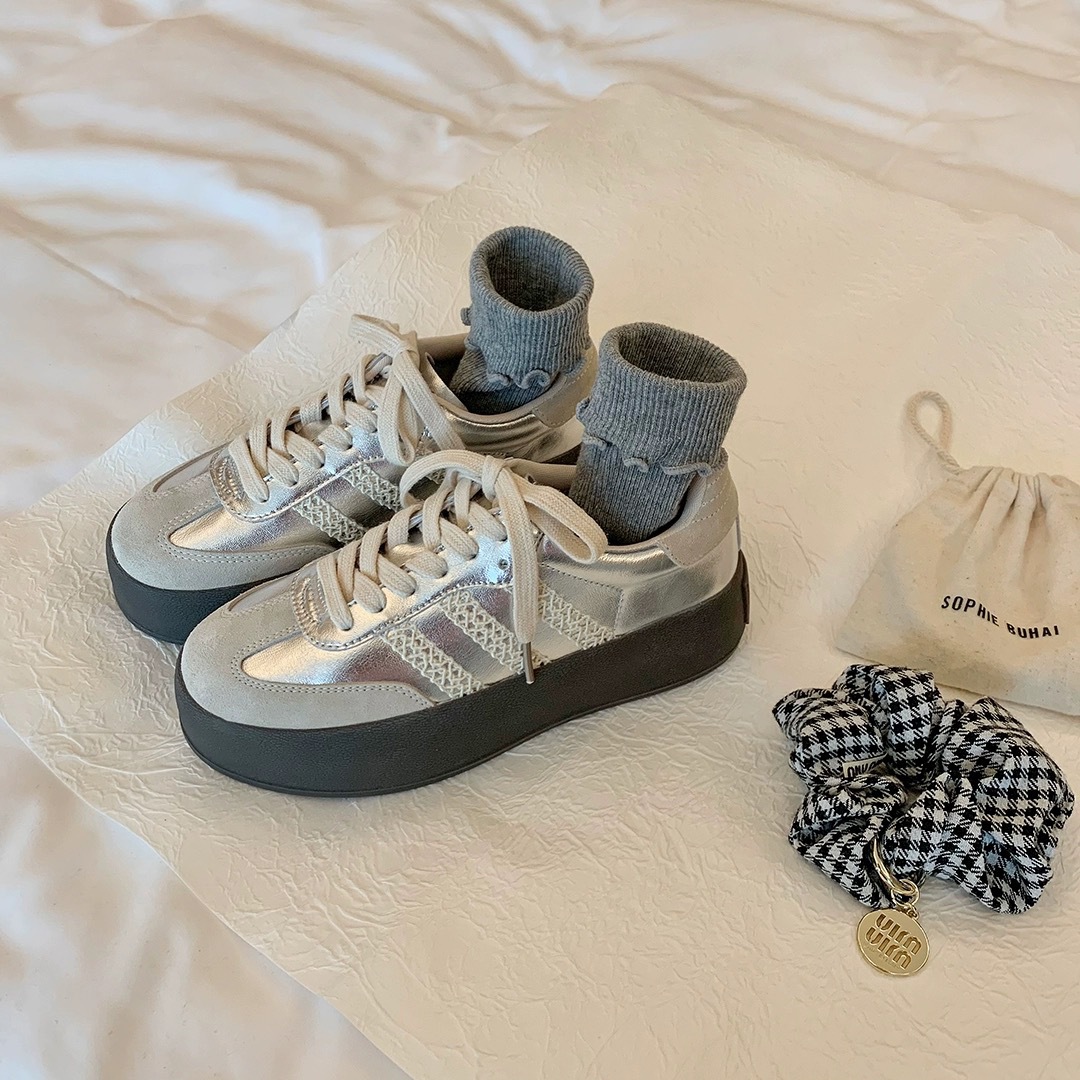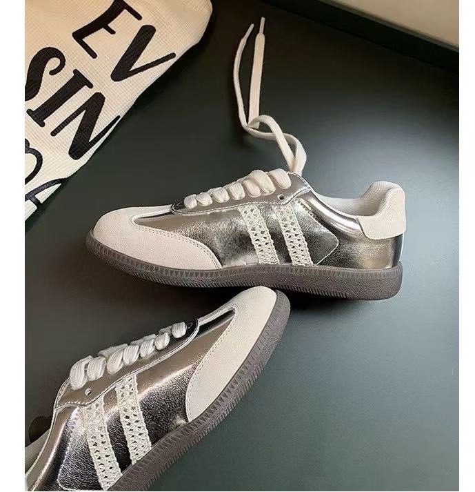 Su Yinyin 같은 스타일의 정품 가죽 실버 훈련 신발 여성 레이스 트리밍 흰색 신발 3 극 캐주얼 신발 스포츠 통기성 스케이트 신발