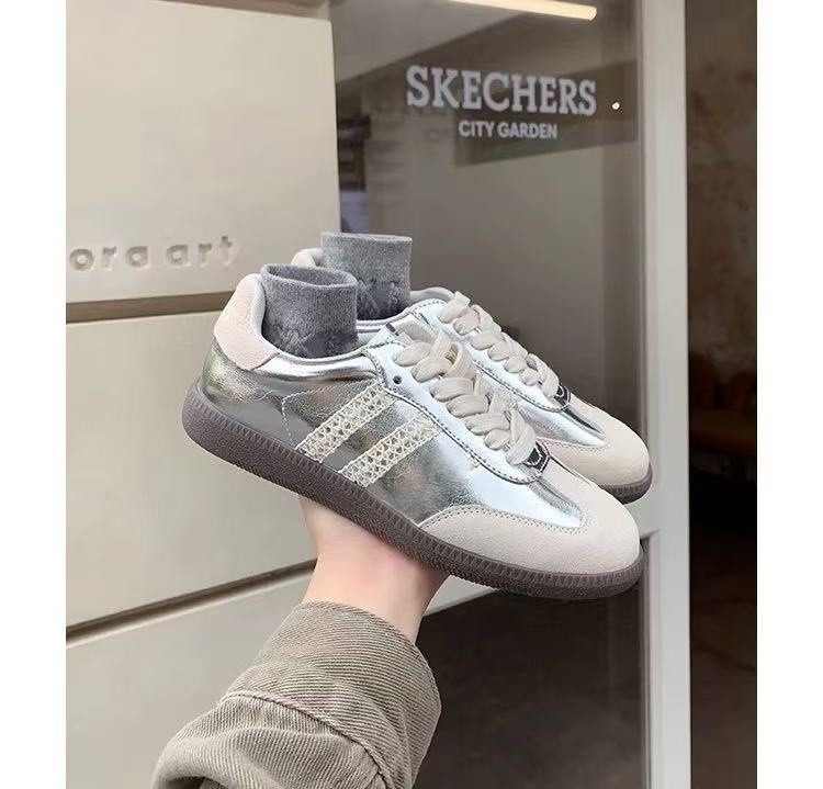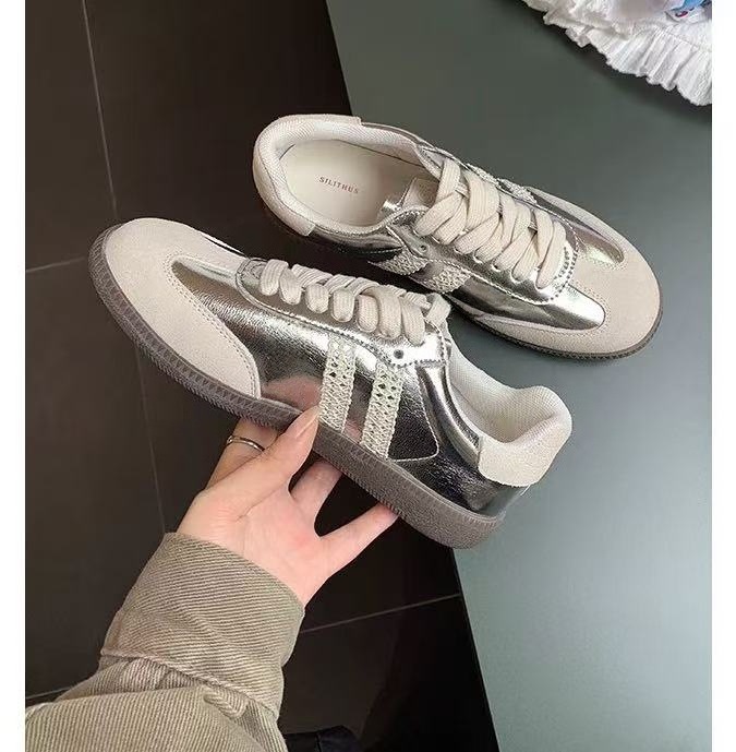 Su Yinyin 같은 스타일의 정품 가죽 실버 훈련 신발 여성 레이스 트리밍 흰색 신발 3 극 캐주얼 신발 스포츠 통기성 스케이트 신발스토어 가기