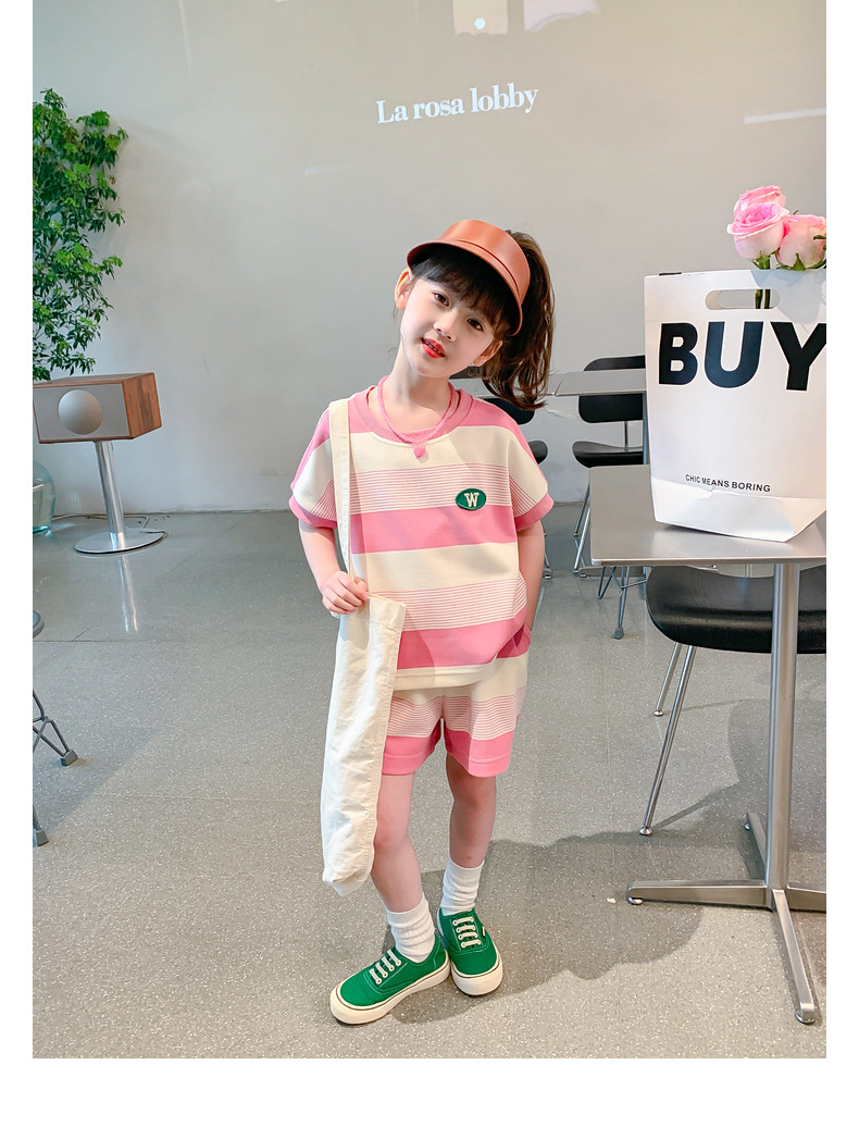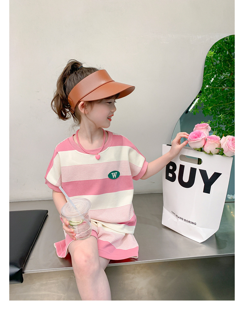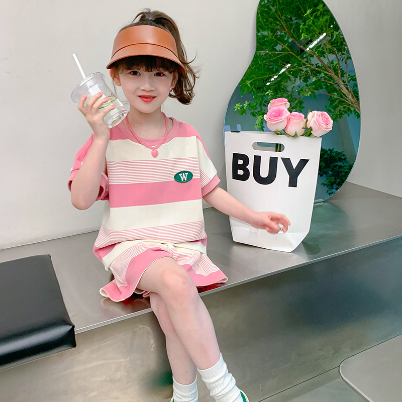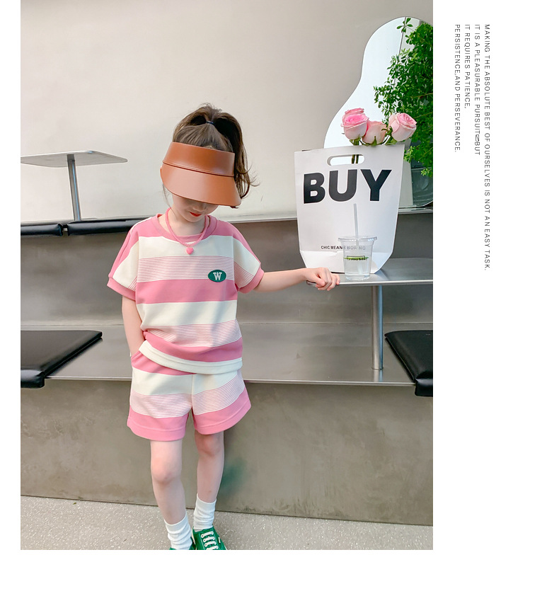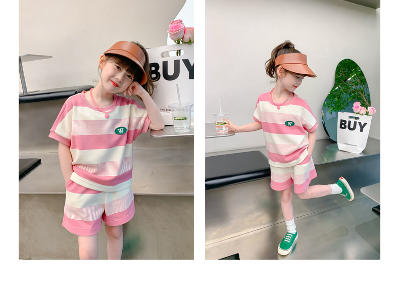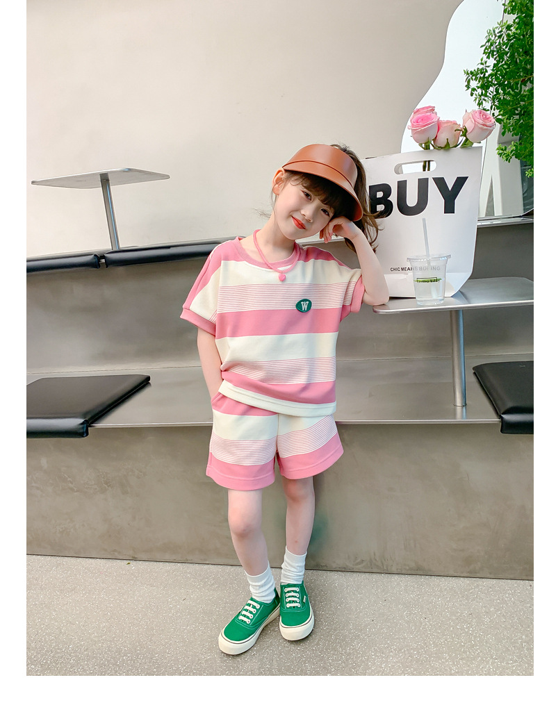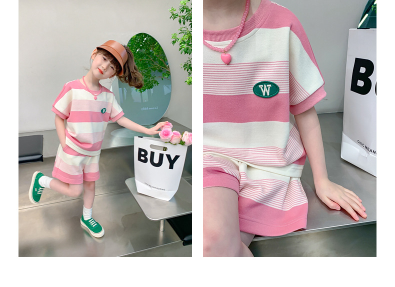 • W 줄무늬 세트-여름-핑크