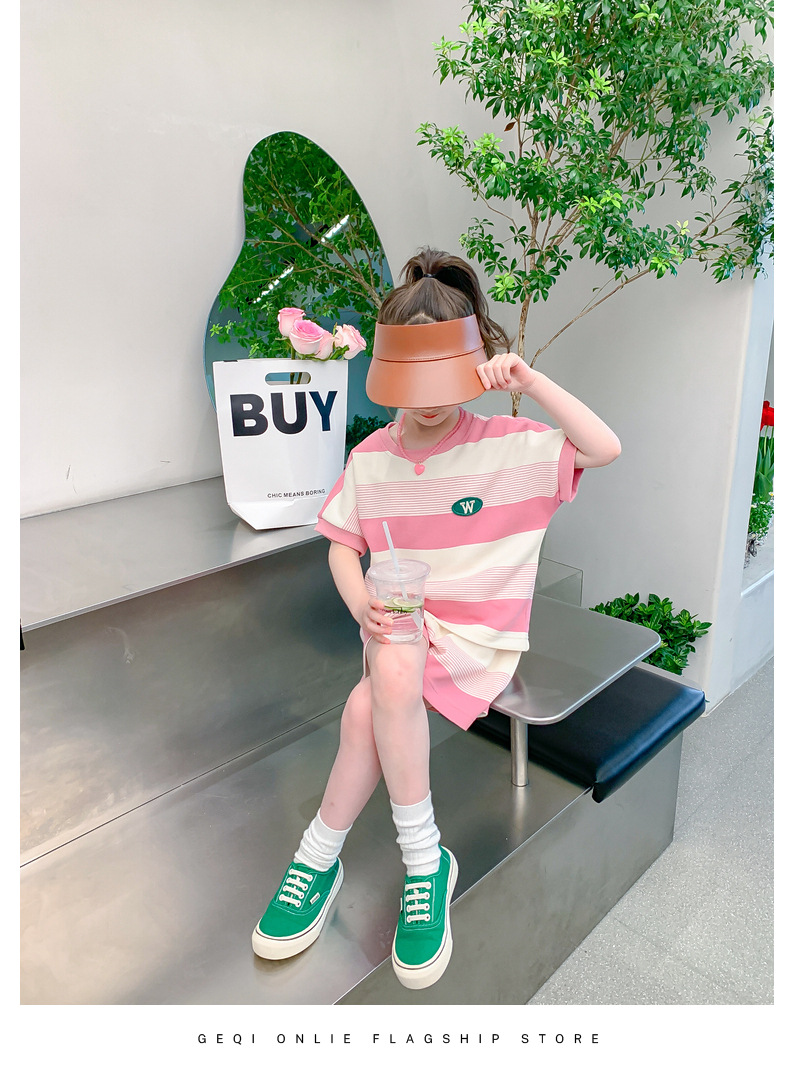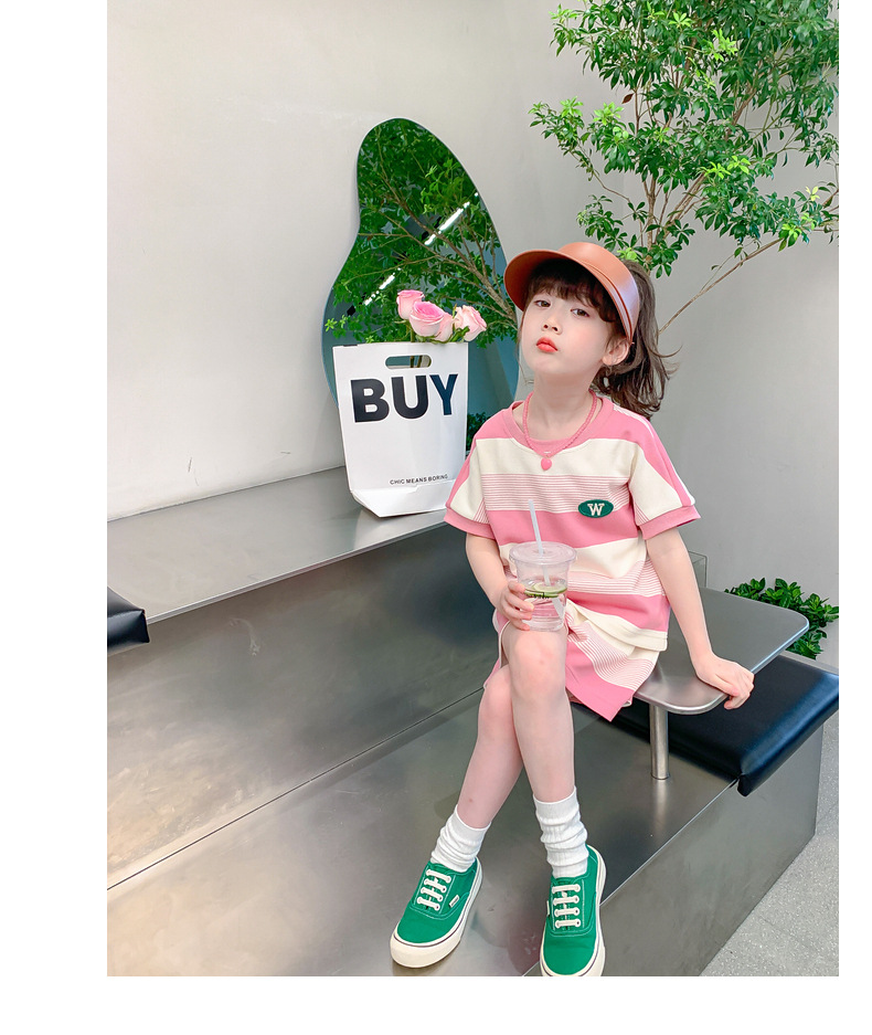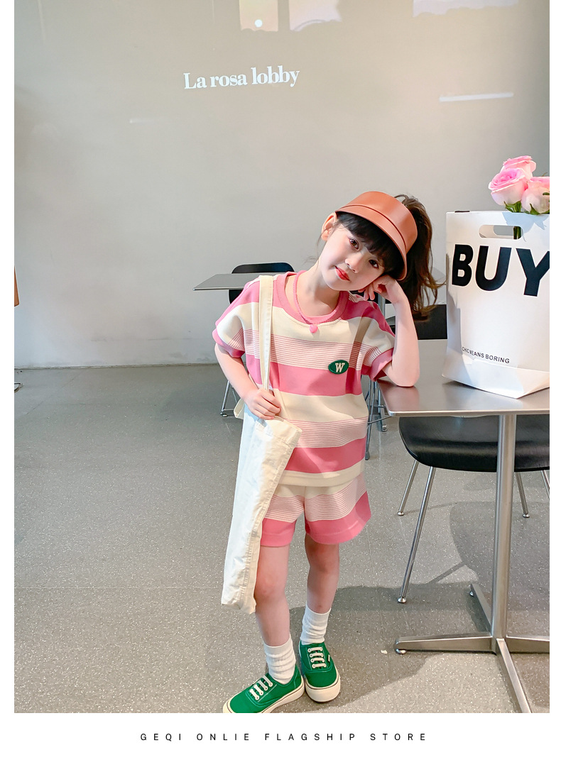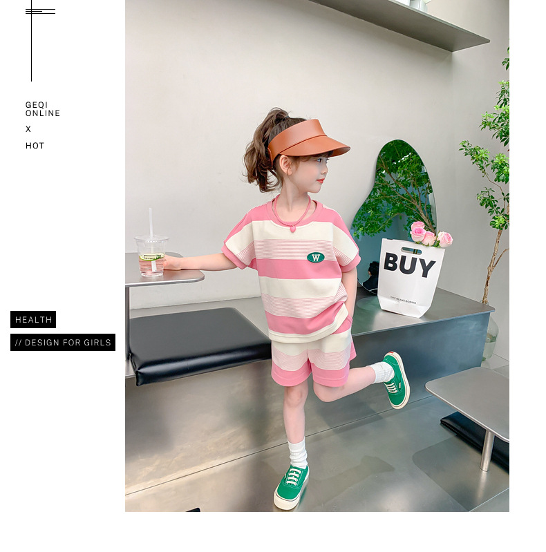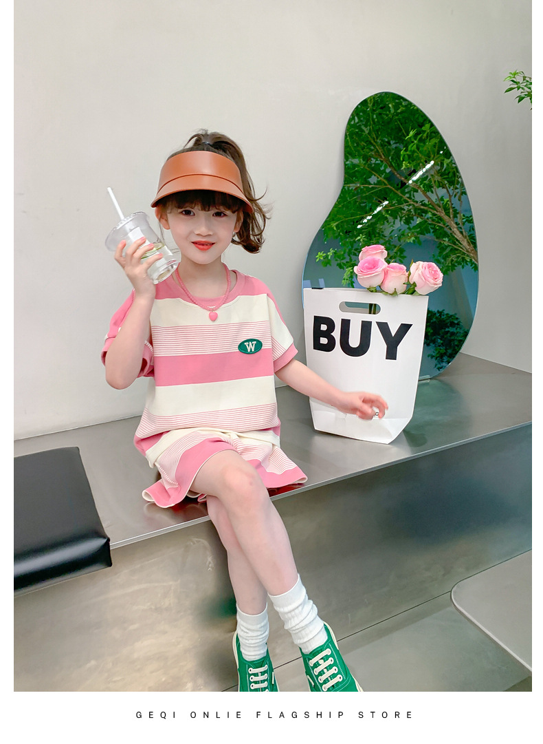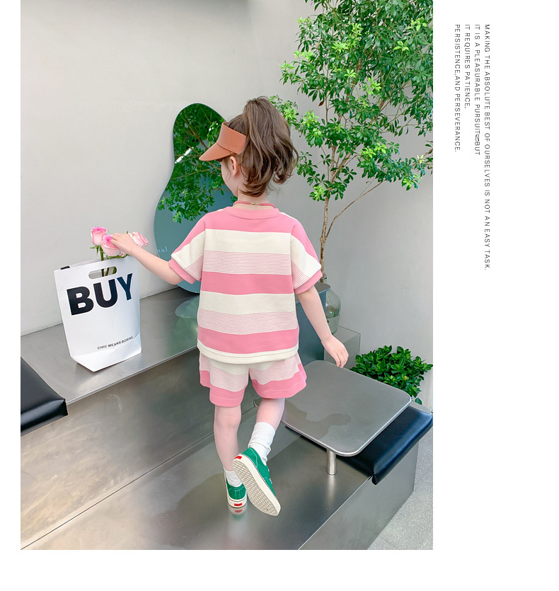 • W 줄무늬 세트-여름-핑크