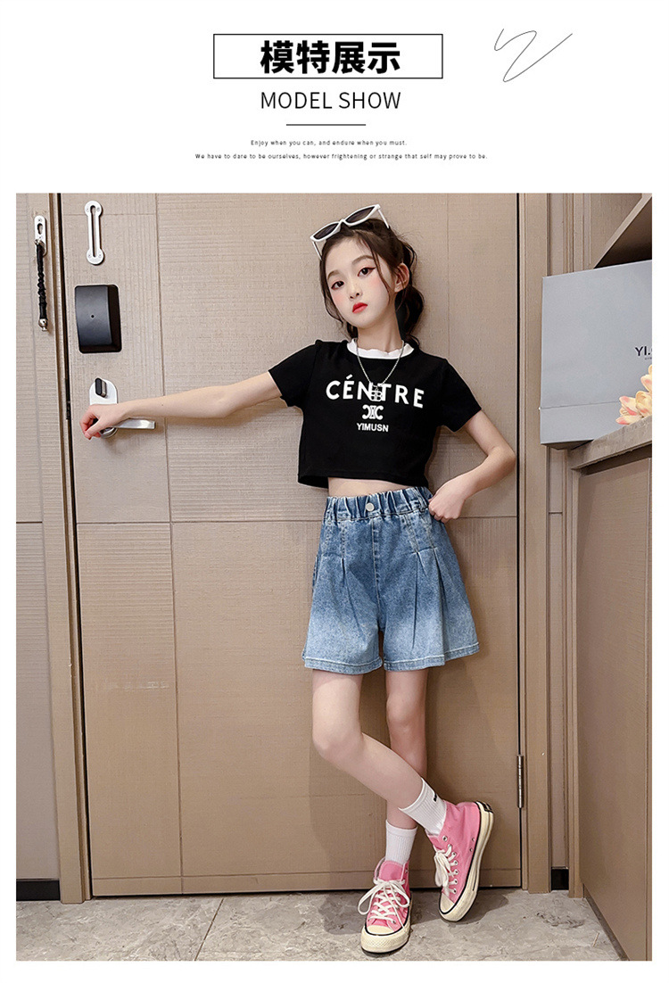 여아 데님반바지, 여름옷, 스타일리시한 아동용 중대형 아동 한국판 만능 청바지, 여름 얇은 그라데이션 핫팬츠스토어 가기