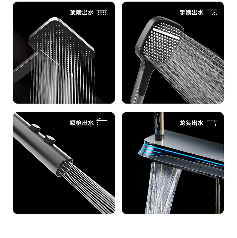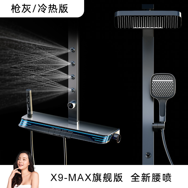 X9 구리 욕실 일정한 온도 샤워 세트 목욕 허리 스프레이 홈 레인 샤워 욕실 샤워 오로라 분위기 조명
