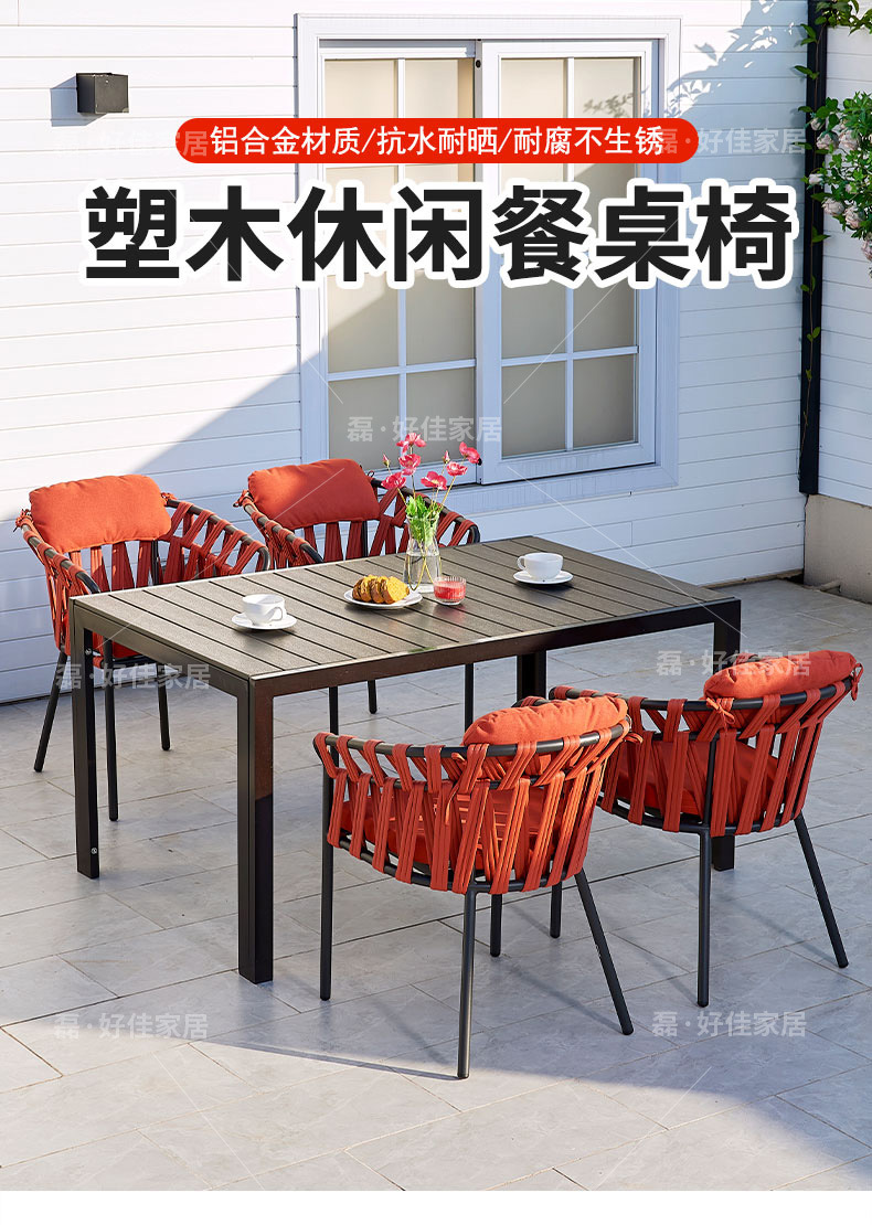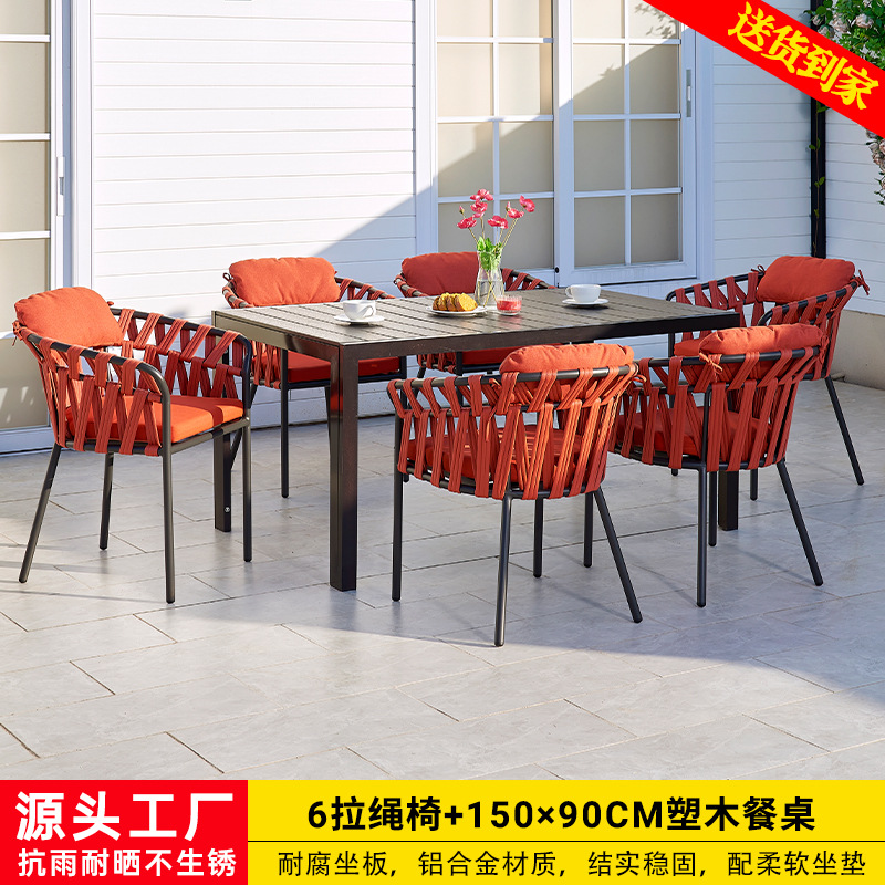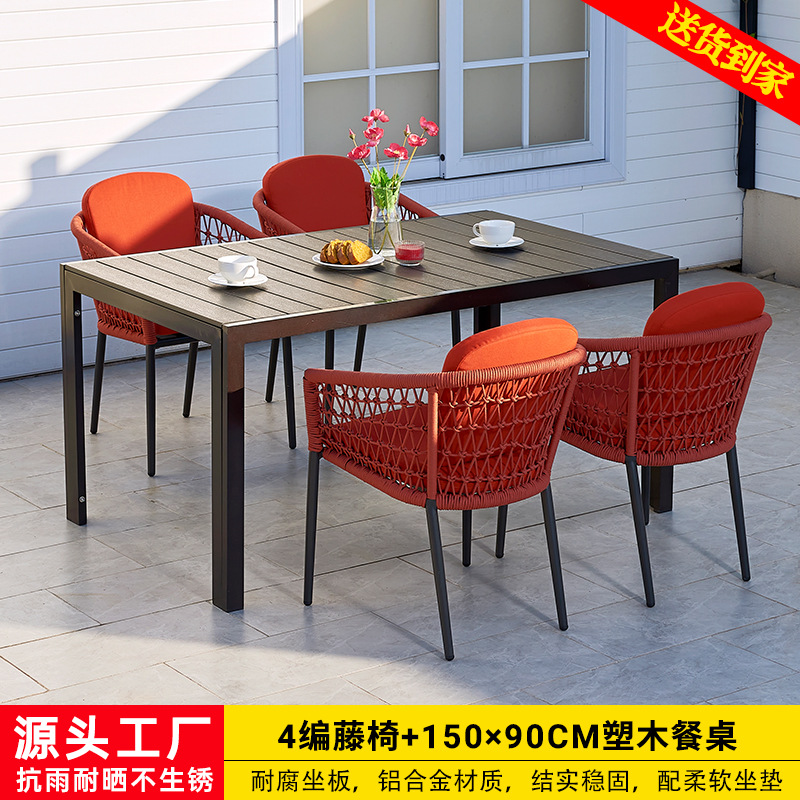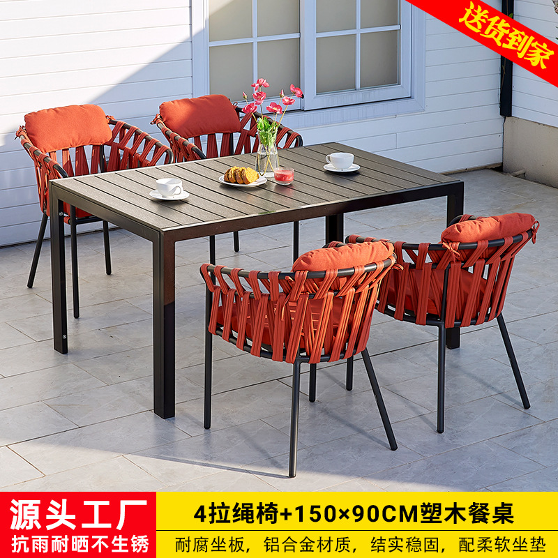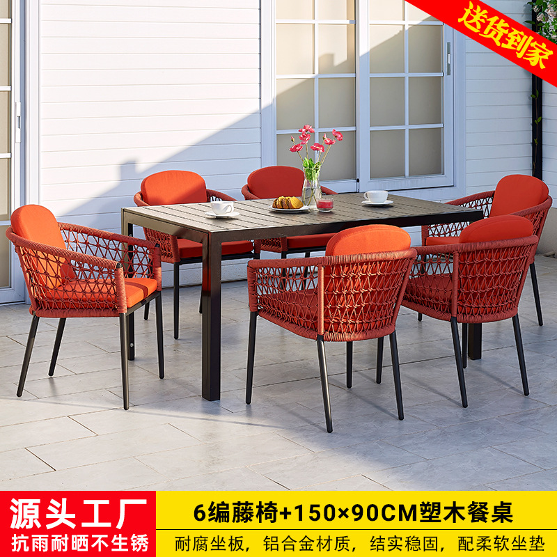• 150*90CM 플라스틱 나무 테이블 + Aileou 의자 6개