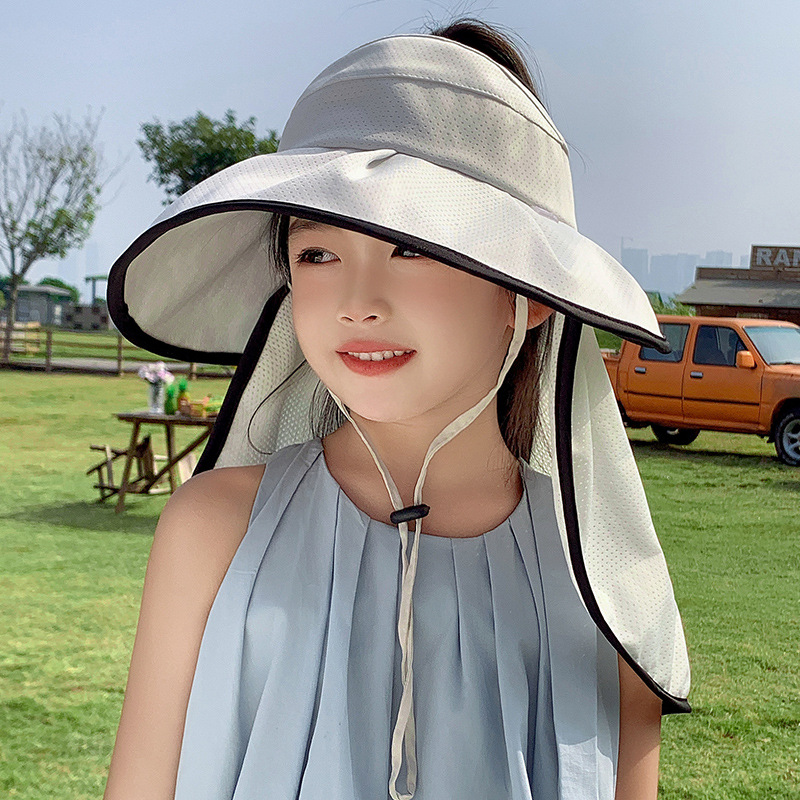 봄 여행 선스크린 어린이 모자 소녀 여름 빈 탑 모자 방풍 태양 모자 소년과 아기를위한 큰 목도리 모자스토어 가기