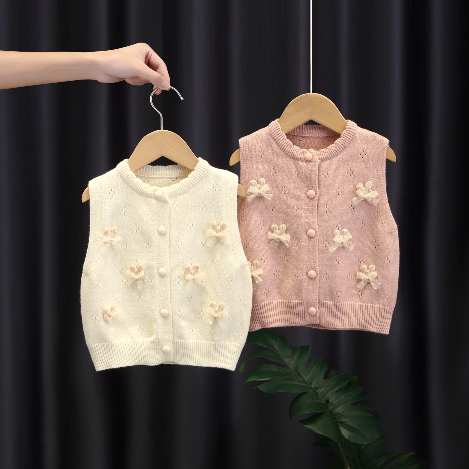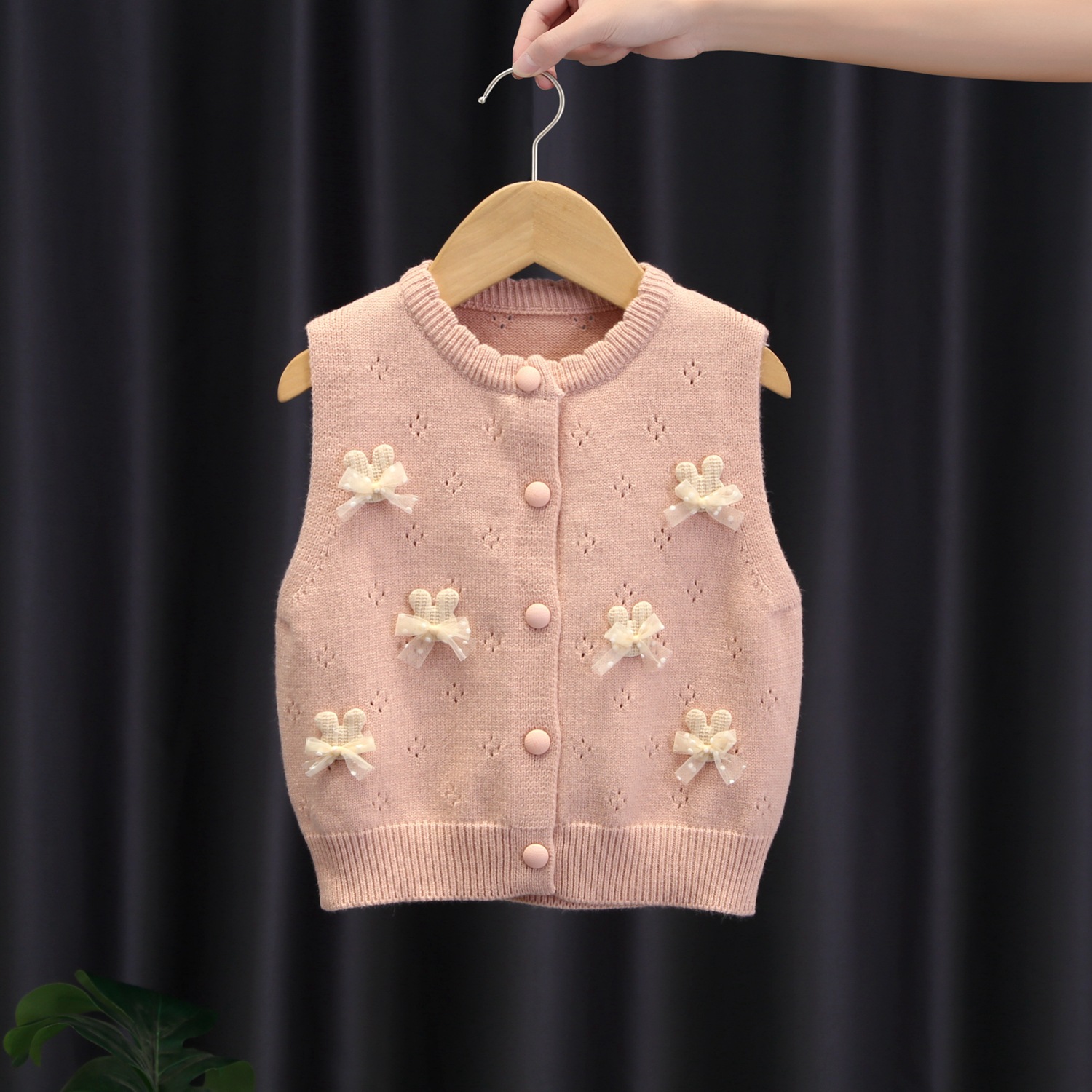 여자 스웨터 조끼 2024 뉴 오픈 러브 나비 토끼 어린이 니트 카디건 조끼 여성 아기 봄