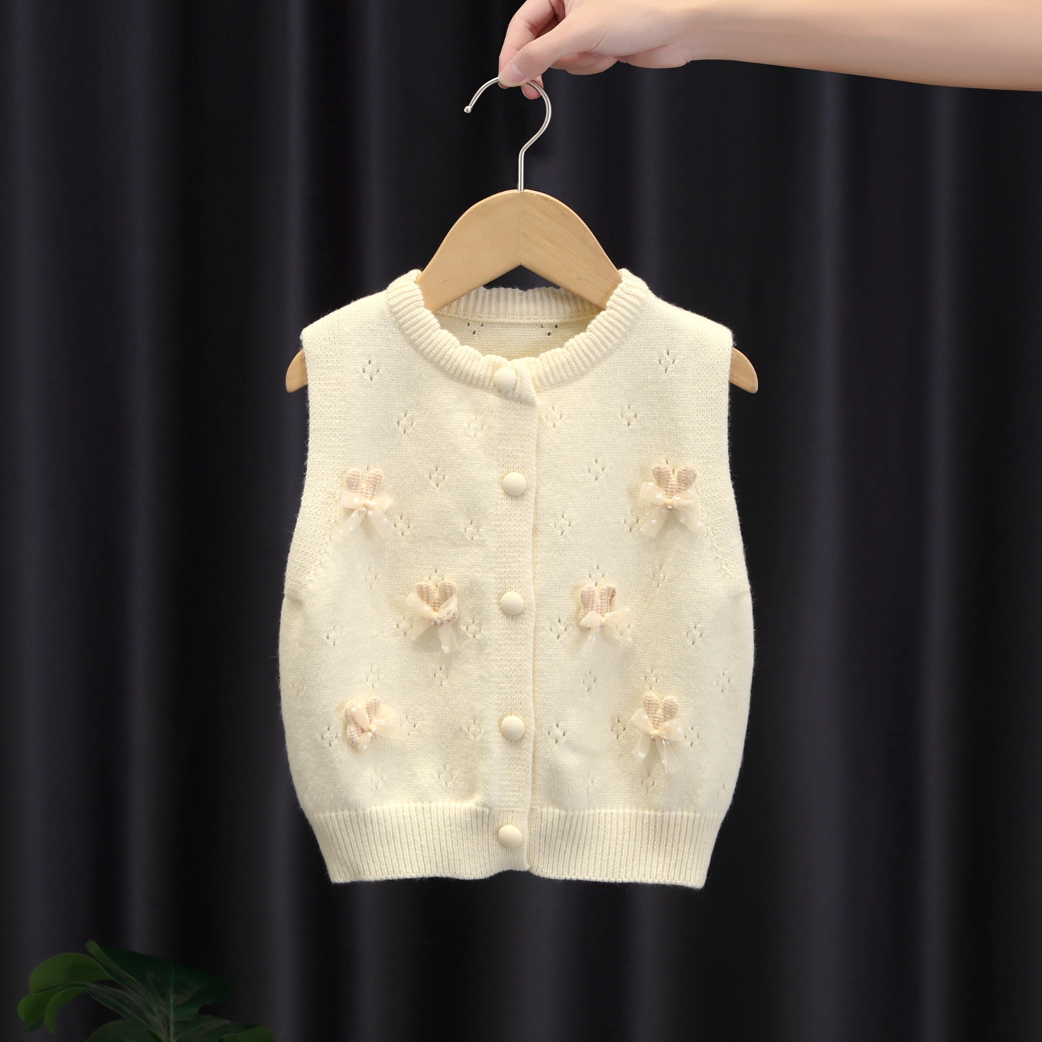 여자 스웨터 조끼 2024 뉴 오픈 러브 나비 토끼 어린이 니트 카디건 조끼 여성 아기 봄스토어 가기