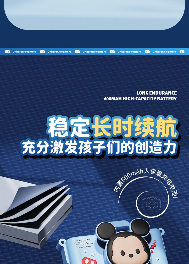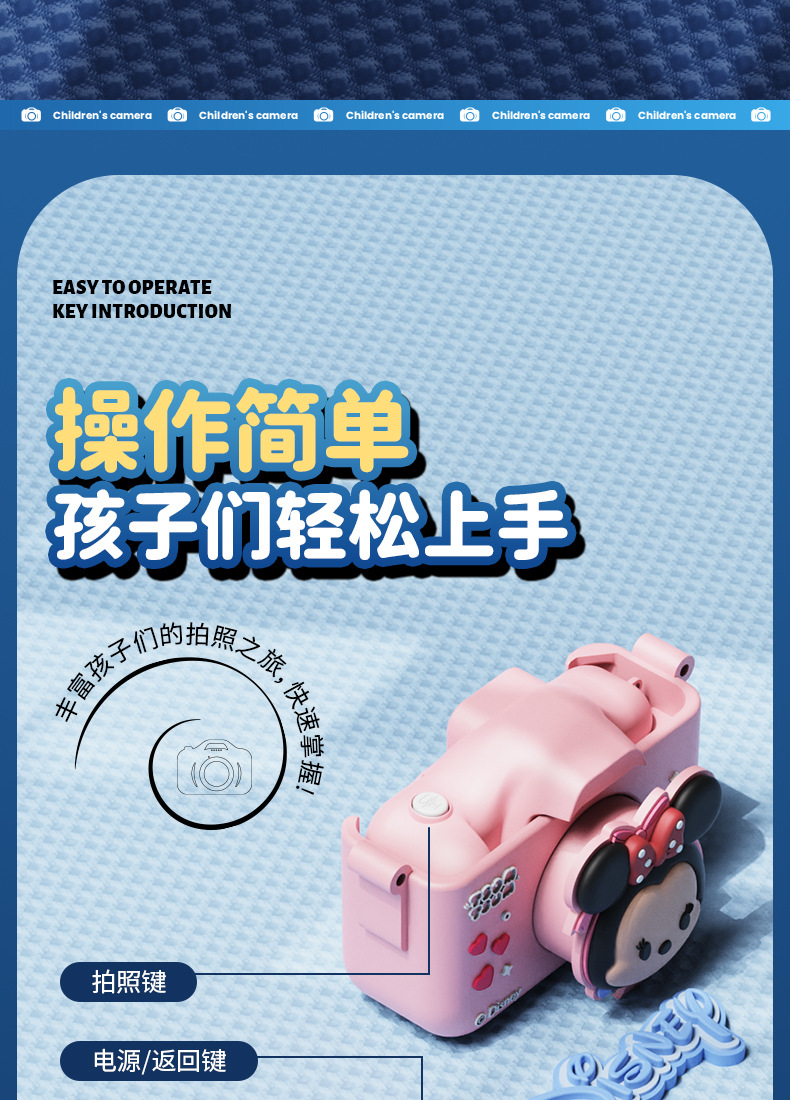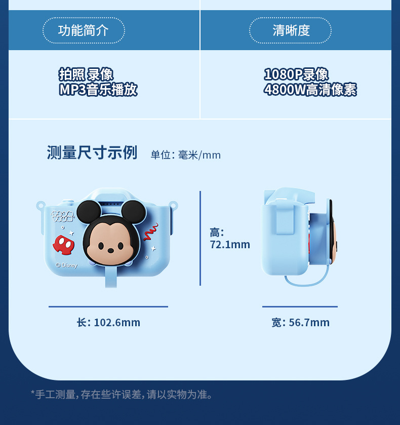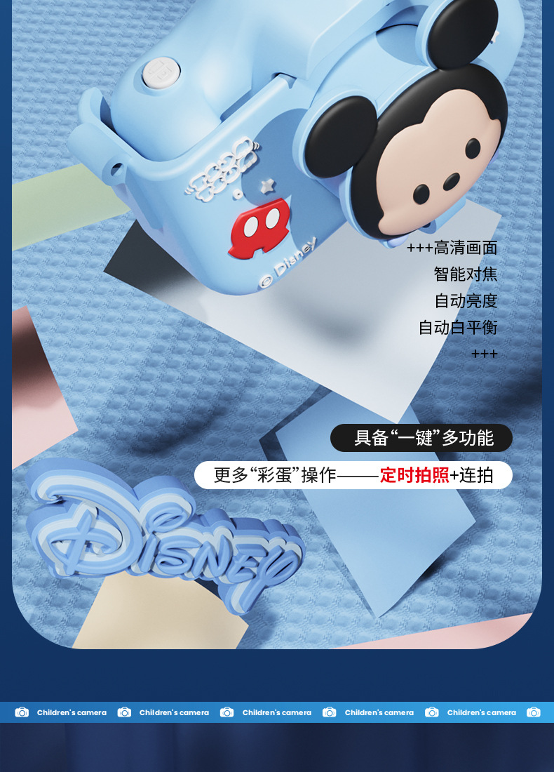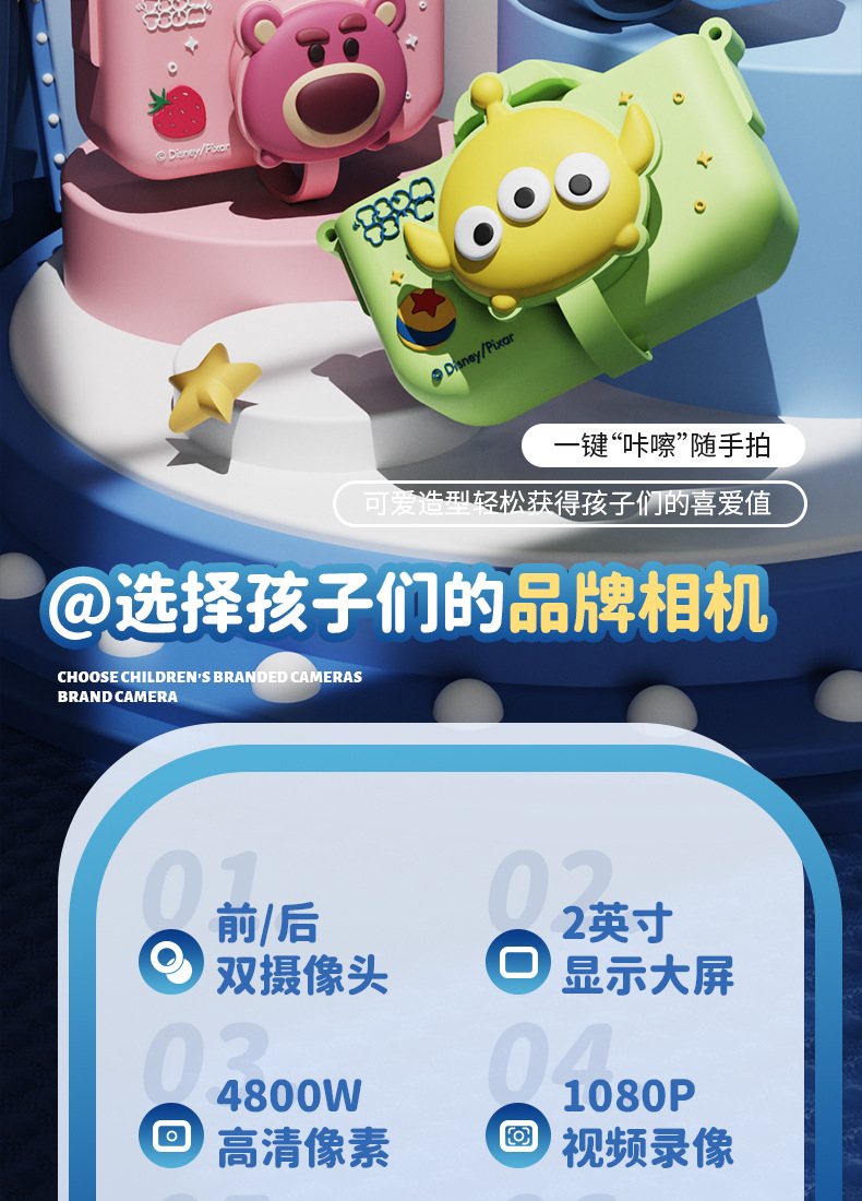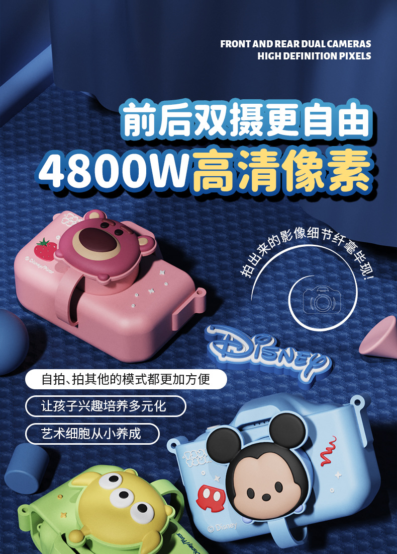 迪士尼儿童数码相机拍照录像 迷你卡通户外4800W高清双摄学生礼物