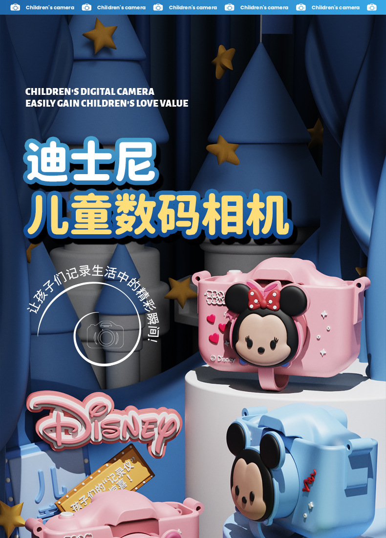 디즈니 어린이 디지털 카메라 학생 파티 사진 촬영 비디오 미니 만화 귀여운 고화질 듀얼 카메라 장난감 선물스토어 가기