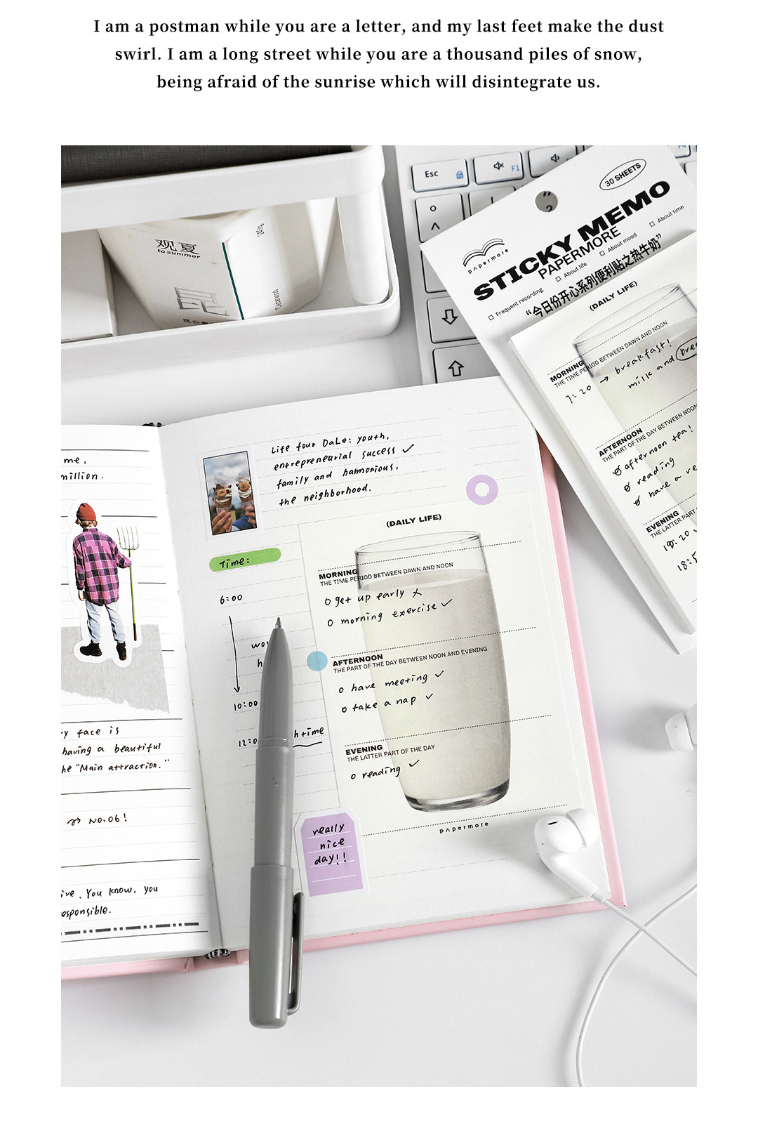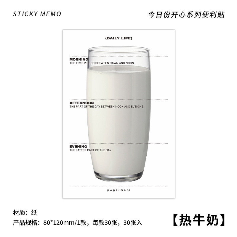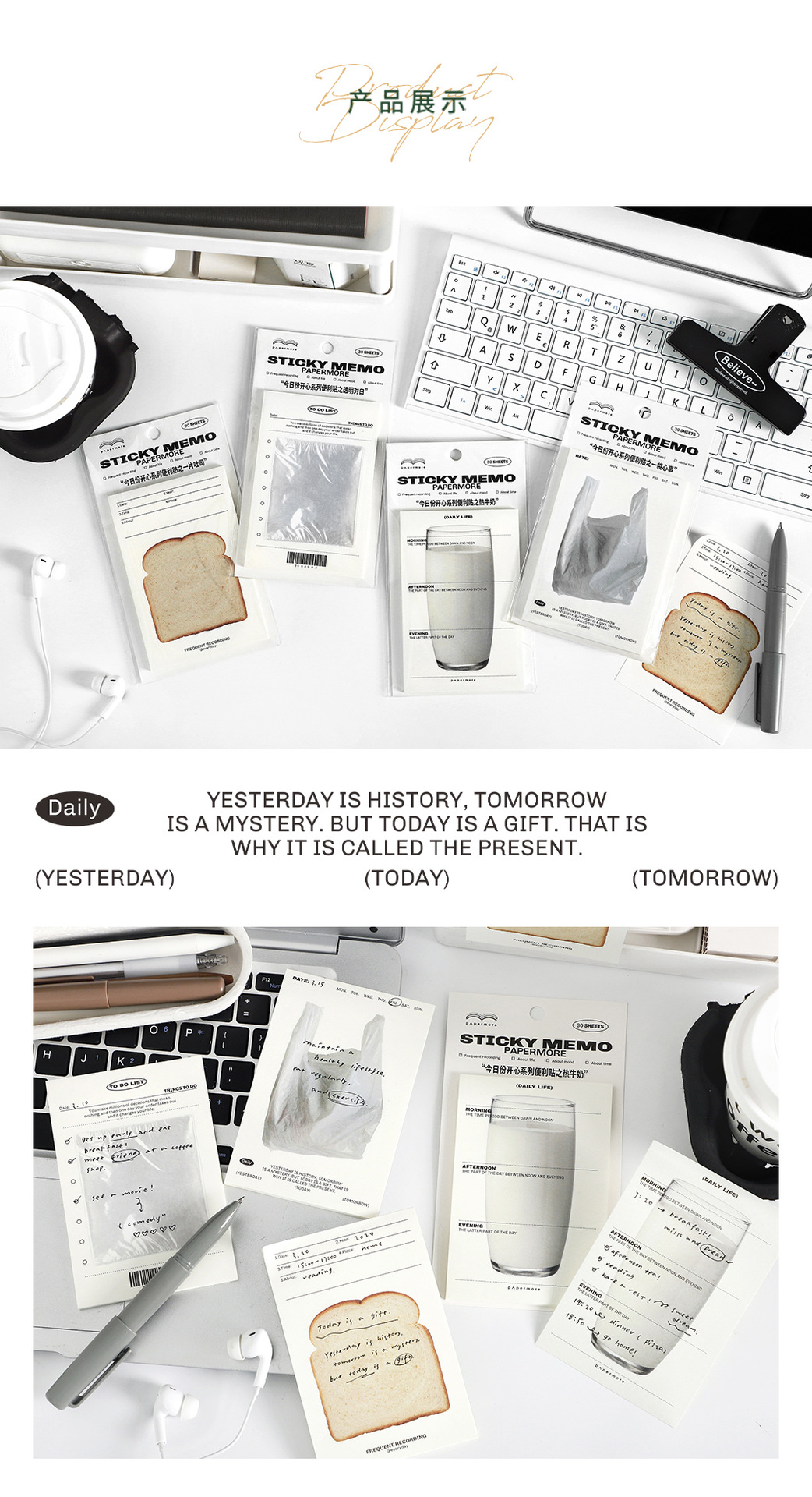 PaperMore 스티커 메모 오늘의 행복한 시리즈 간단한 아침 식사 테마 학생 메모 메시지 저널 스티커