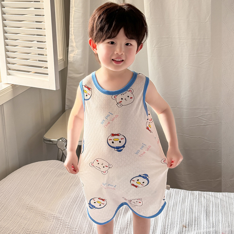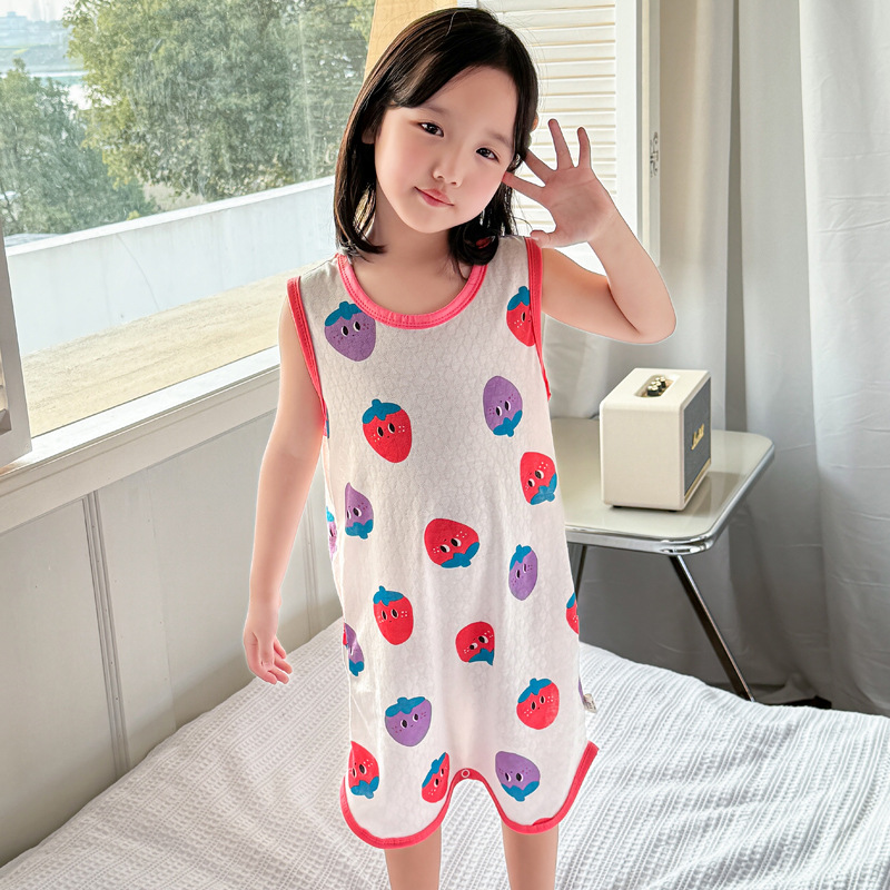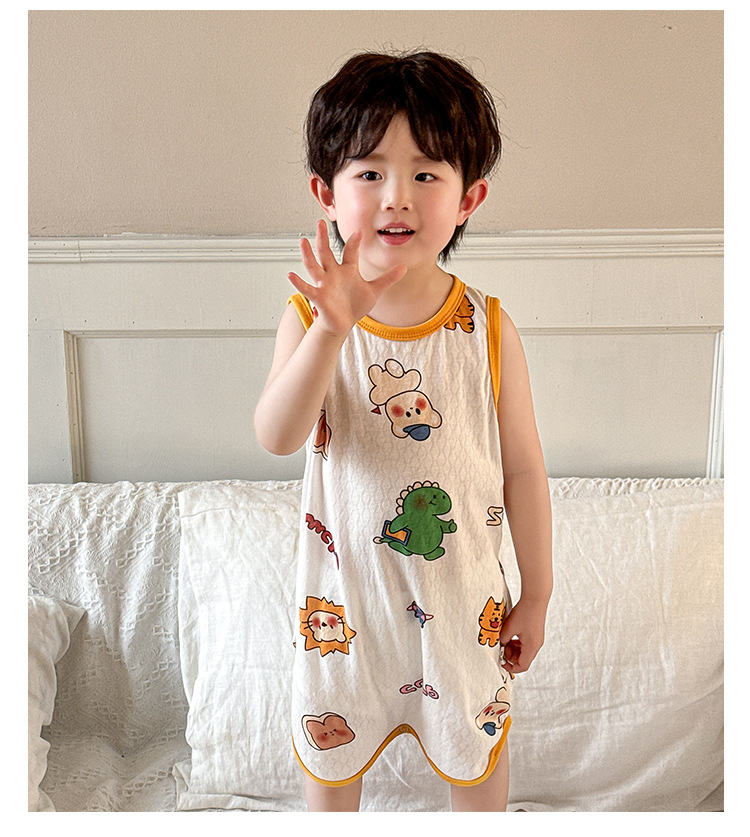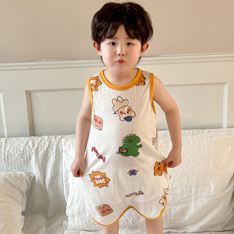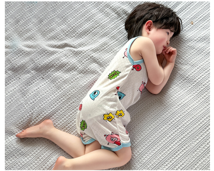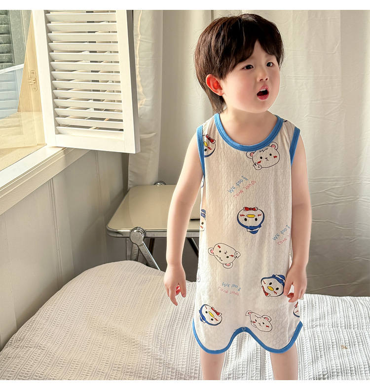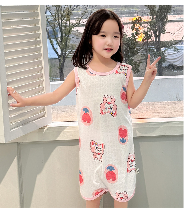 어린이 민소매 원피스 잠옷 여름 얇은 순면 아기 에어컨이 설치된 방 잠옷 소년 소녀 안티 킥 침낭