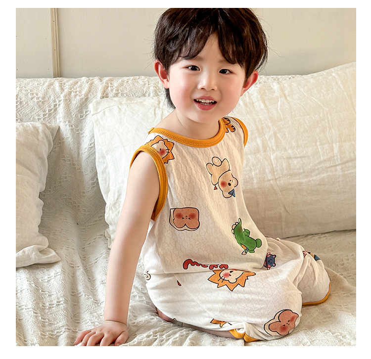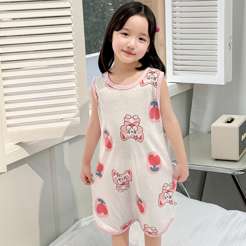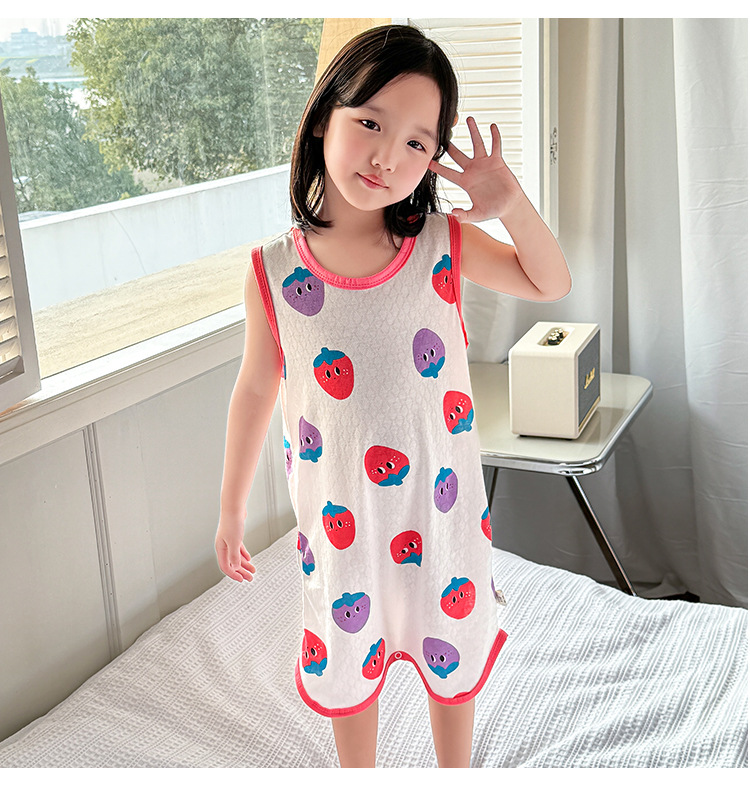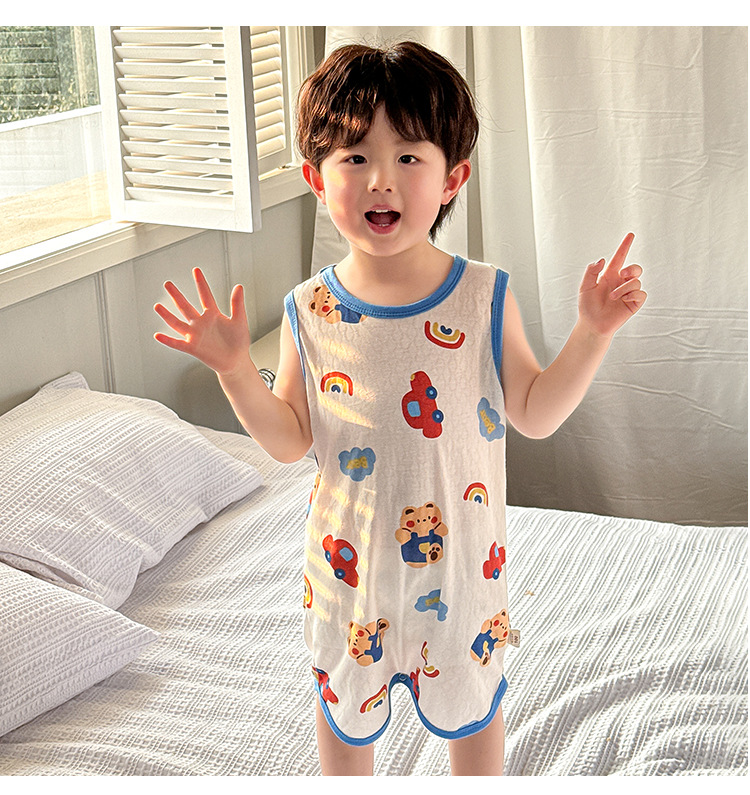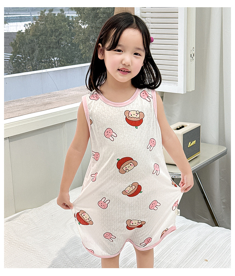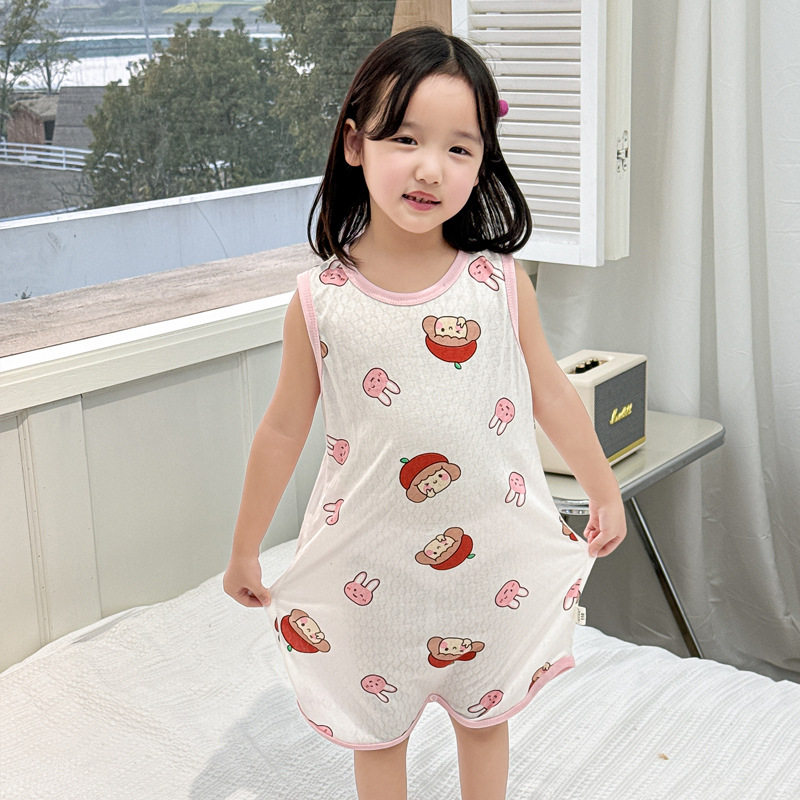 어린이 민소매 원피스 잠옷 여름 얇은 순면 아기 에어컨이 설치된 방 잠옷 소년 소녀 안티 킥 침낭