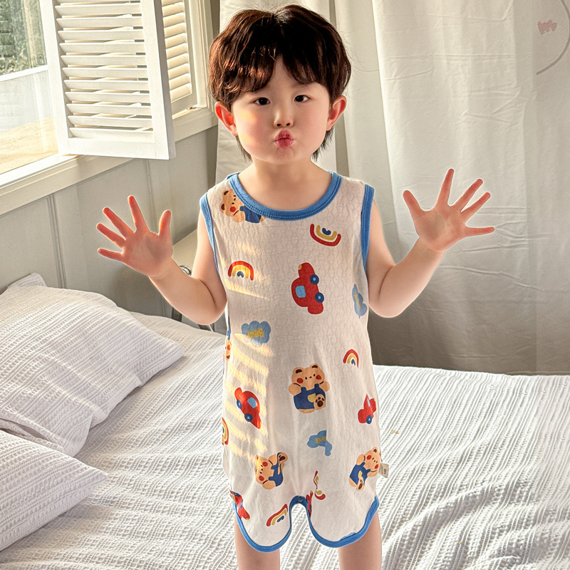 어린이 민소매 원피스 잠옷 여름 얇은 순면 아기 에어컨이 설치된 방 잠옷 소년 소녀 안티 킥 침낭스토어 가기
