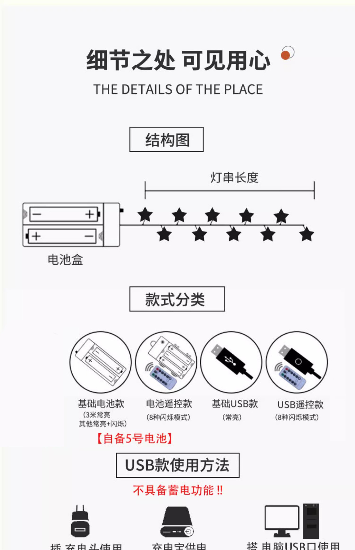 • 20 조명 5 M USB