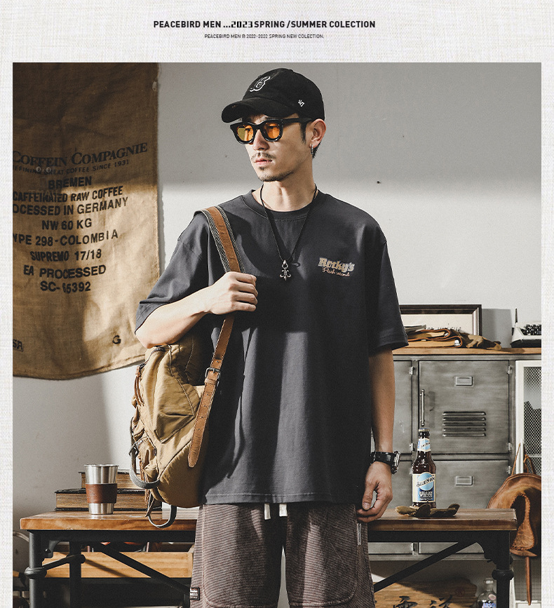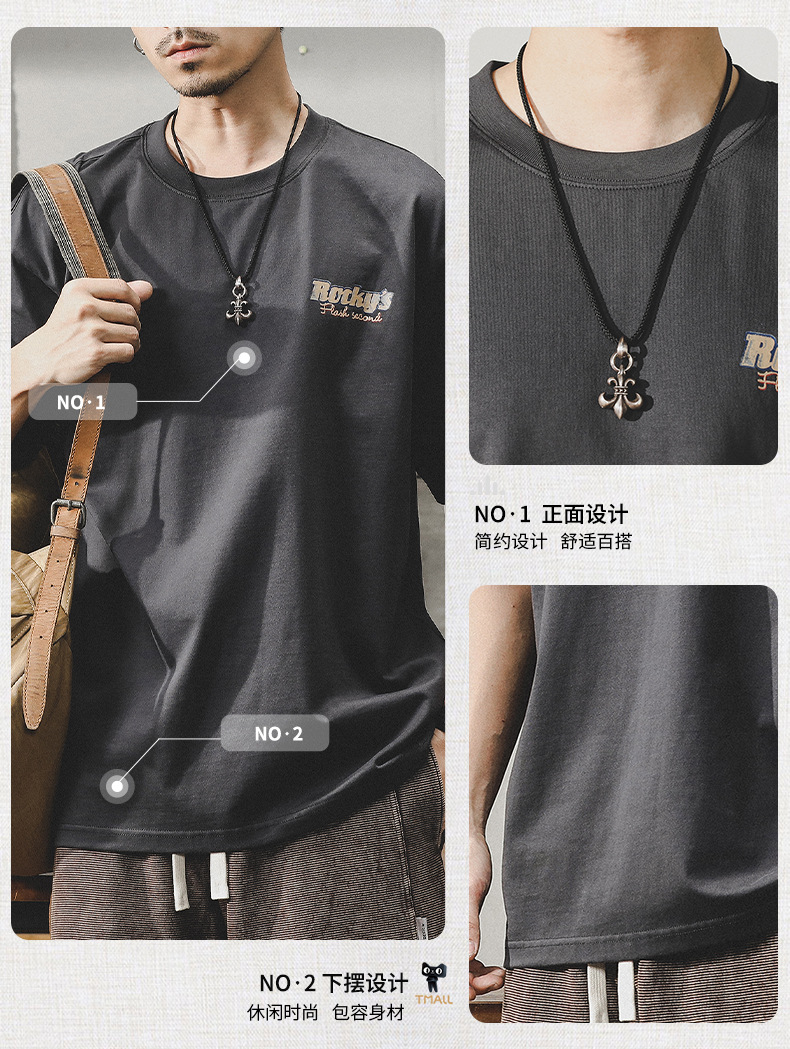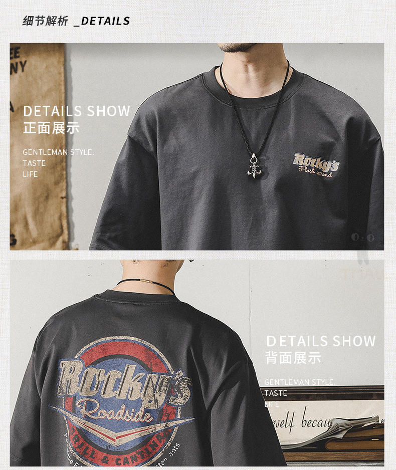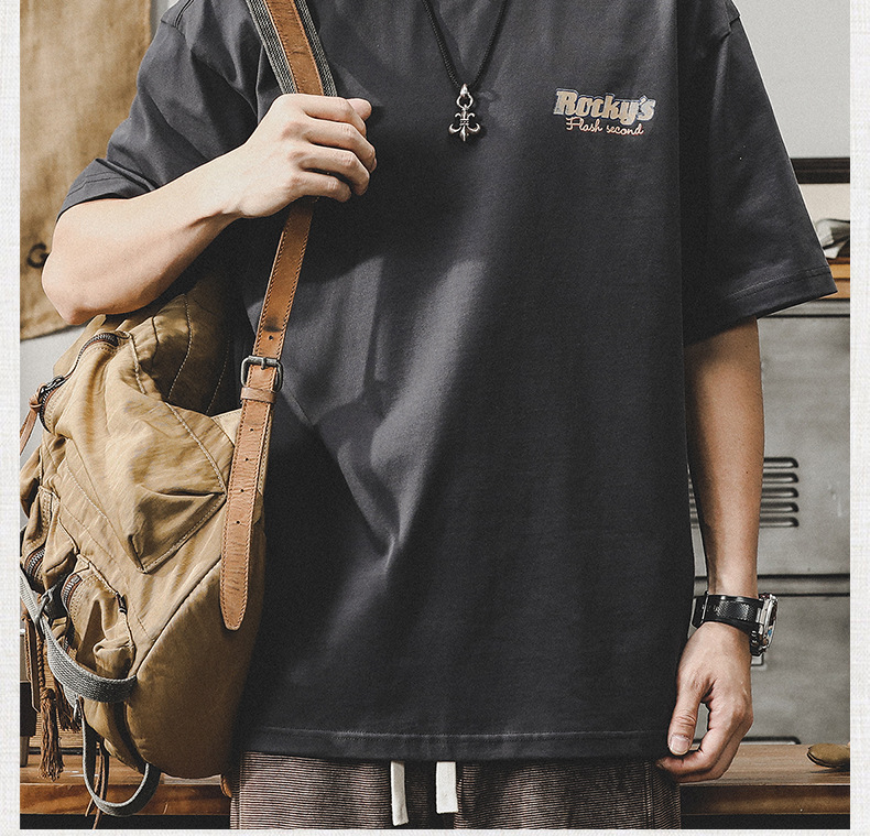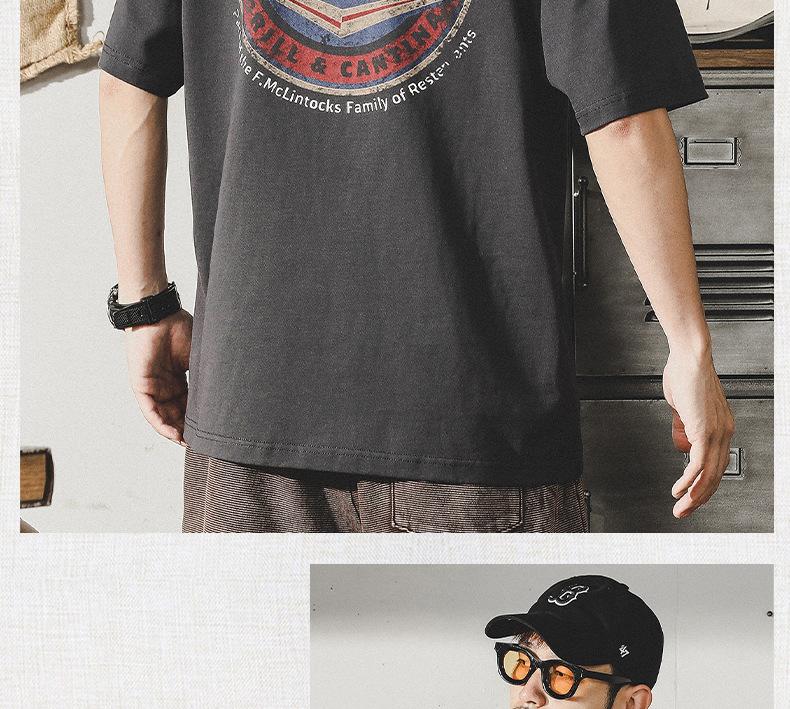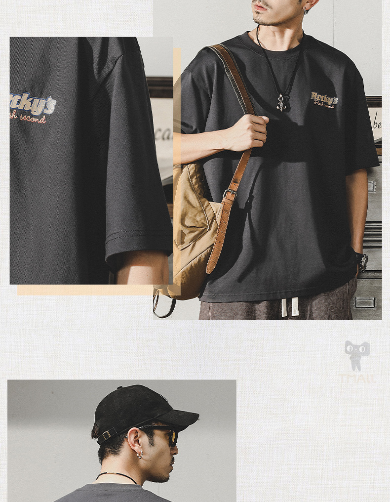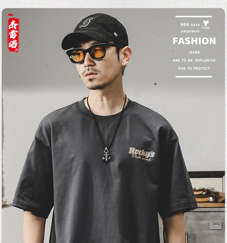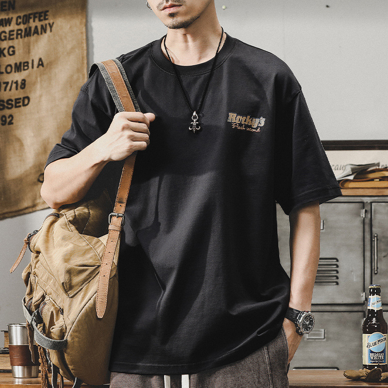 Gereno 헤비급 레트로 반팔 티셔츠 남성 여름 2025 새로운 루즈 인 트렌디 브랜드 반팔 탑 티셔츠스토어 가기