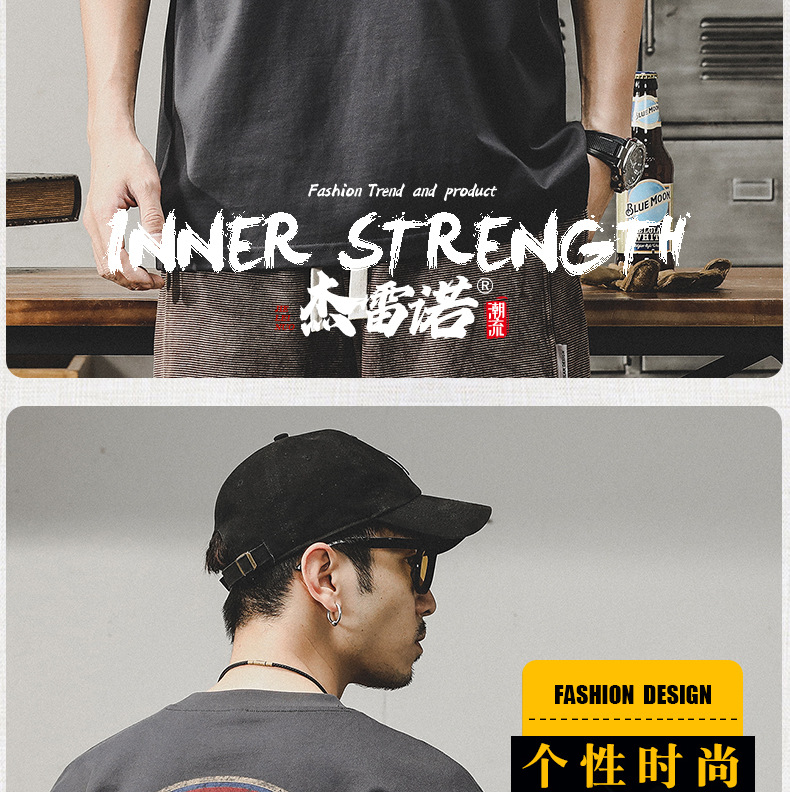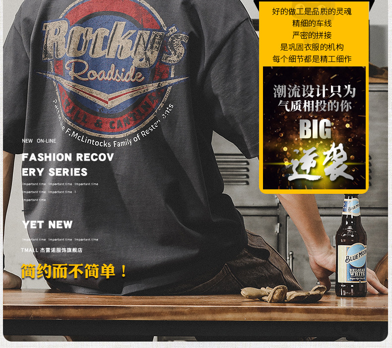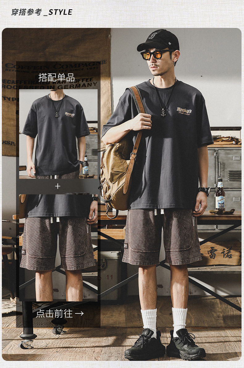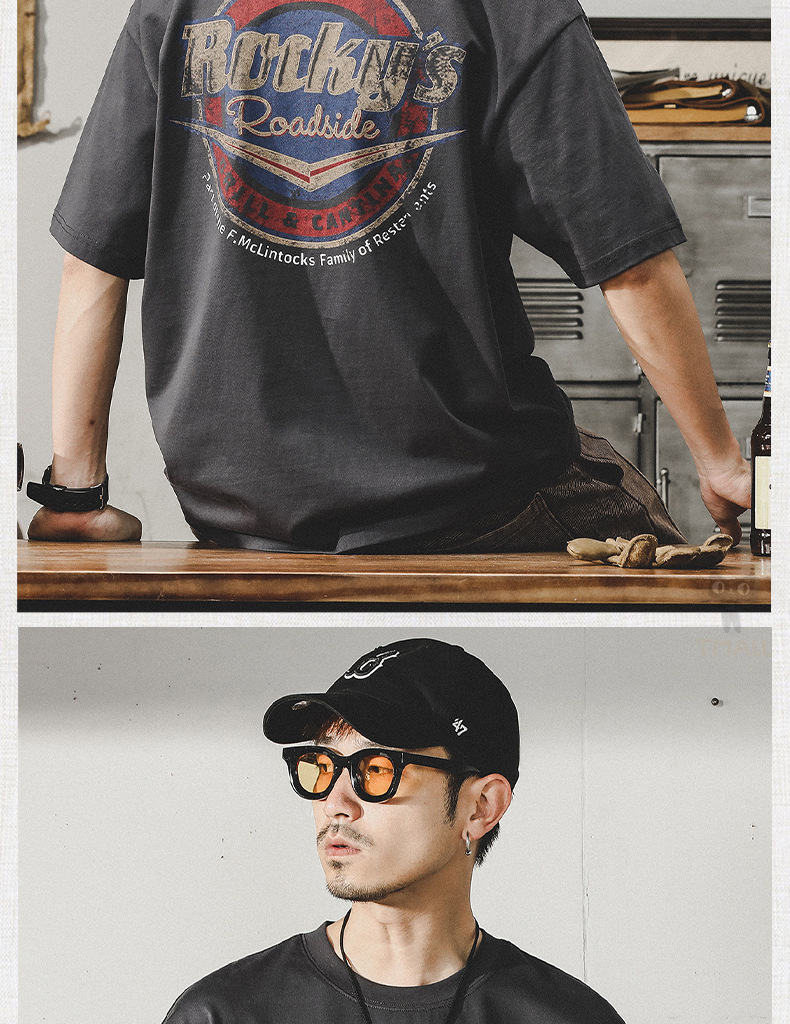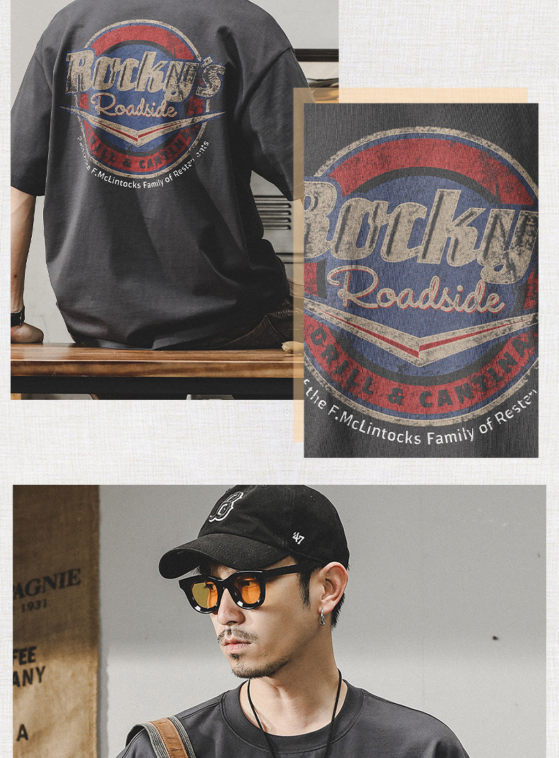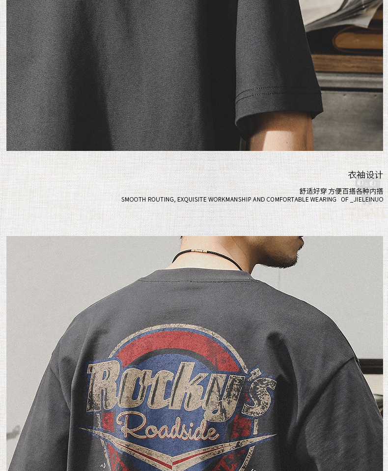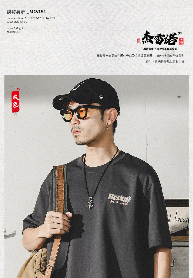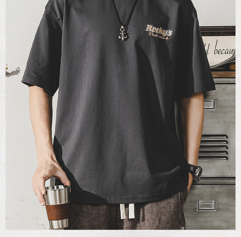Gereno 헤비급 레트로 반팔 티셔츠 남성 여름 2025 새로운 루즈 인 트렌디 브랜드 반팔 탑 티셔츠스토어 가기