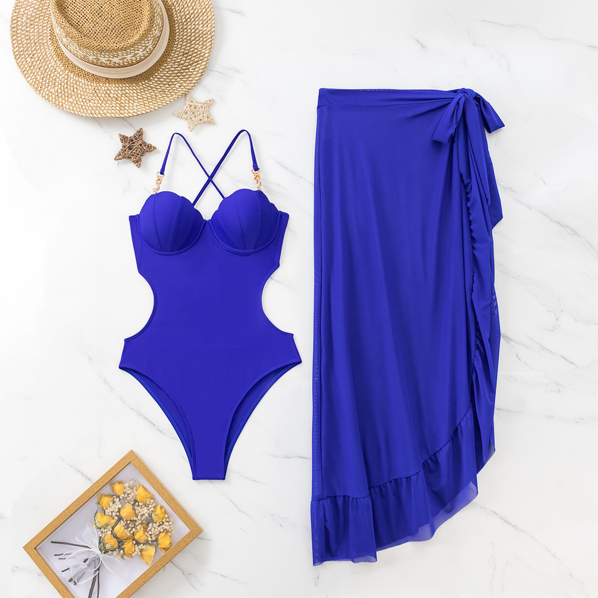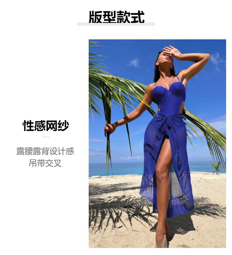 새로운 수영복 여성 섹시한 솔리드 컬러 슬링 크로스 백리스 딥 V 웨이스트 메쉬 아마존 크로스 보더 비치 수영복스토어 가기