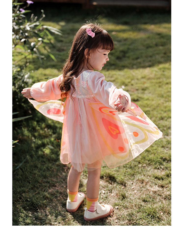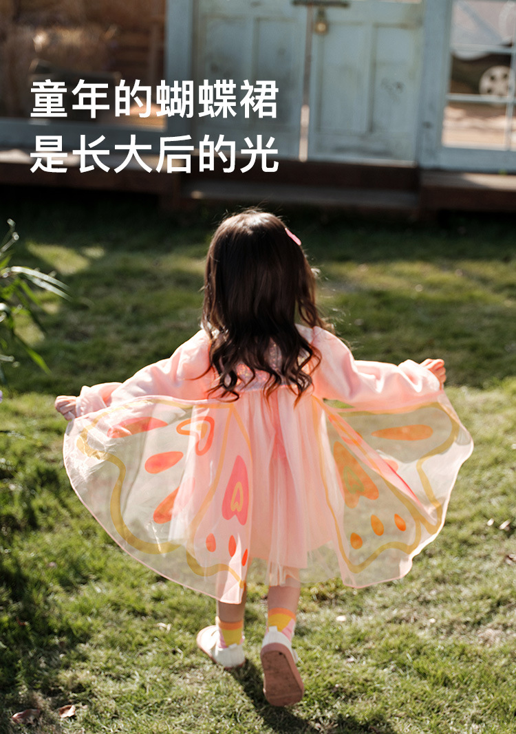 아미라 아동복 2026 봄 신상품 어린이 드레스 소녀 입체 나비 날개 귀여운 망사 원피스