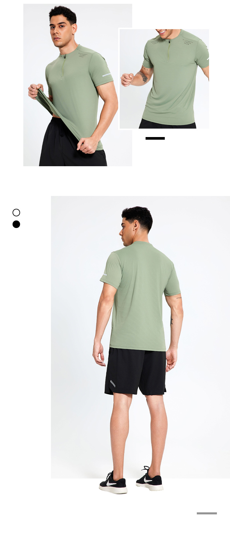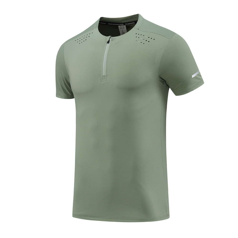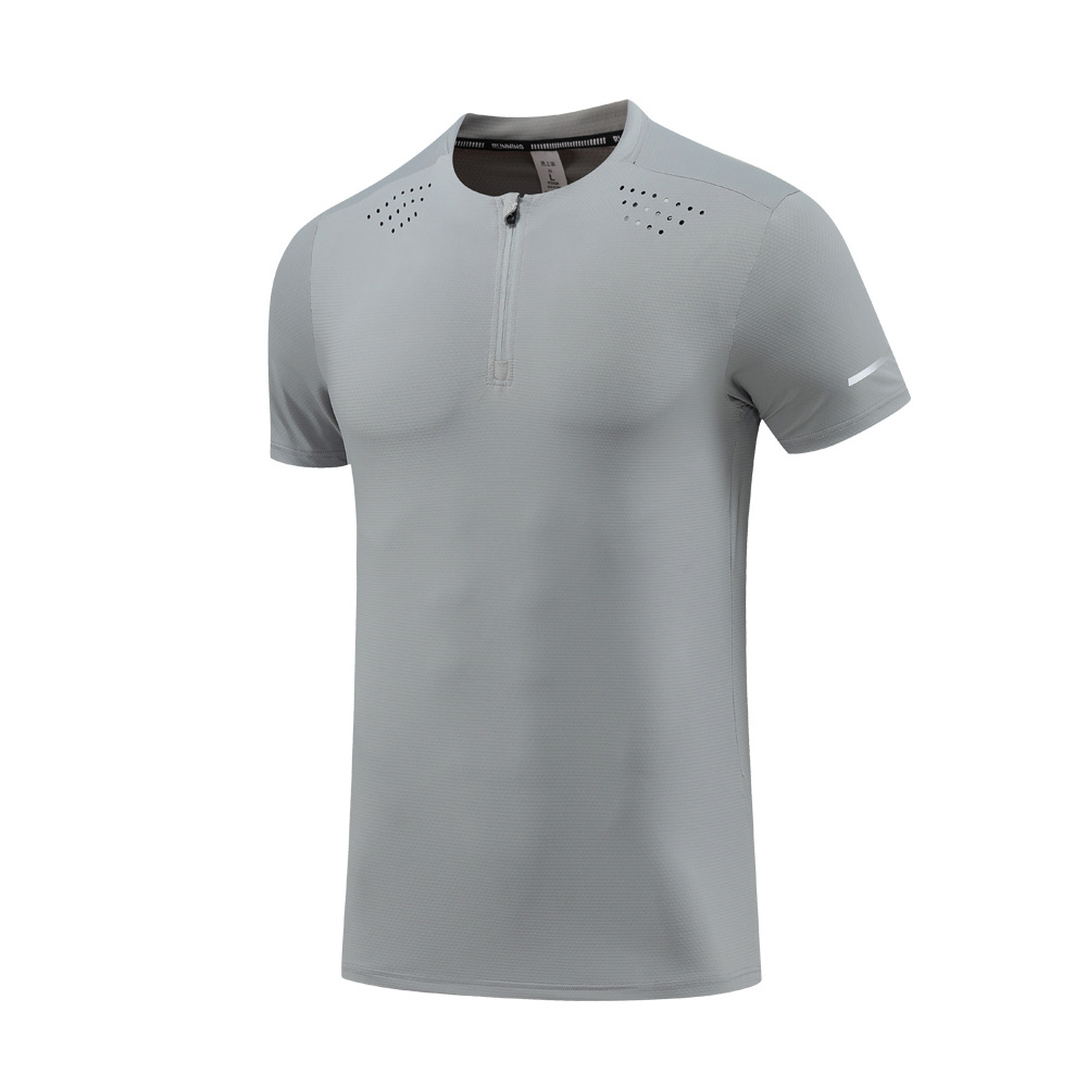 나일론 아이스 실크 달리기 스포츠 반팔 티셔츠 남성용 스탠드 칼라 하프 지퍼 단색 피트니스 옷 훈련 스트레치 퀵 드라이 의류스토어 가기