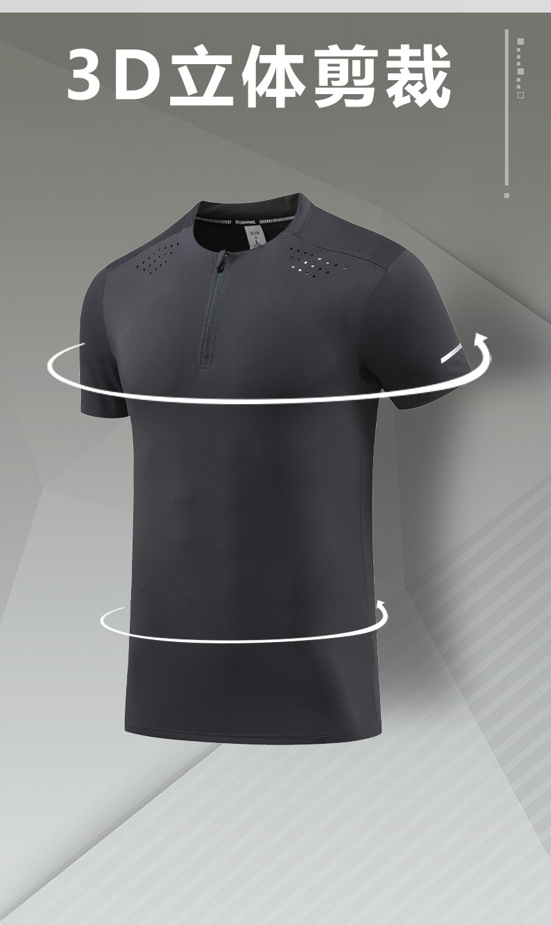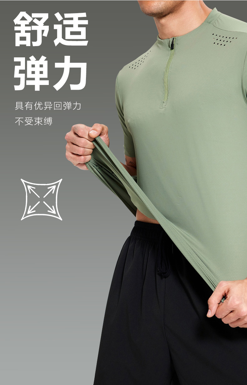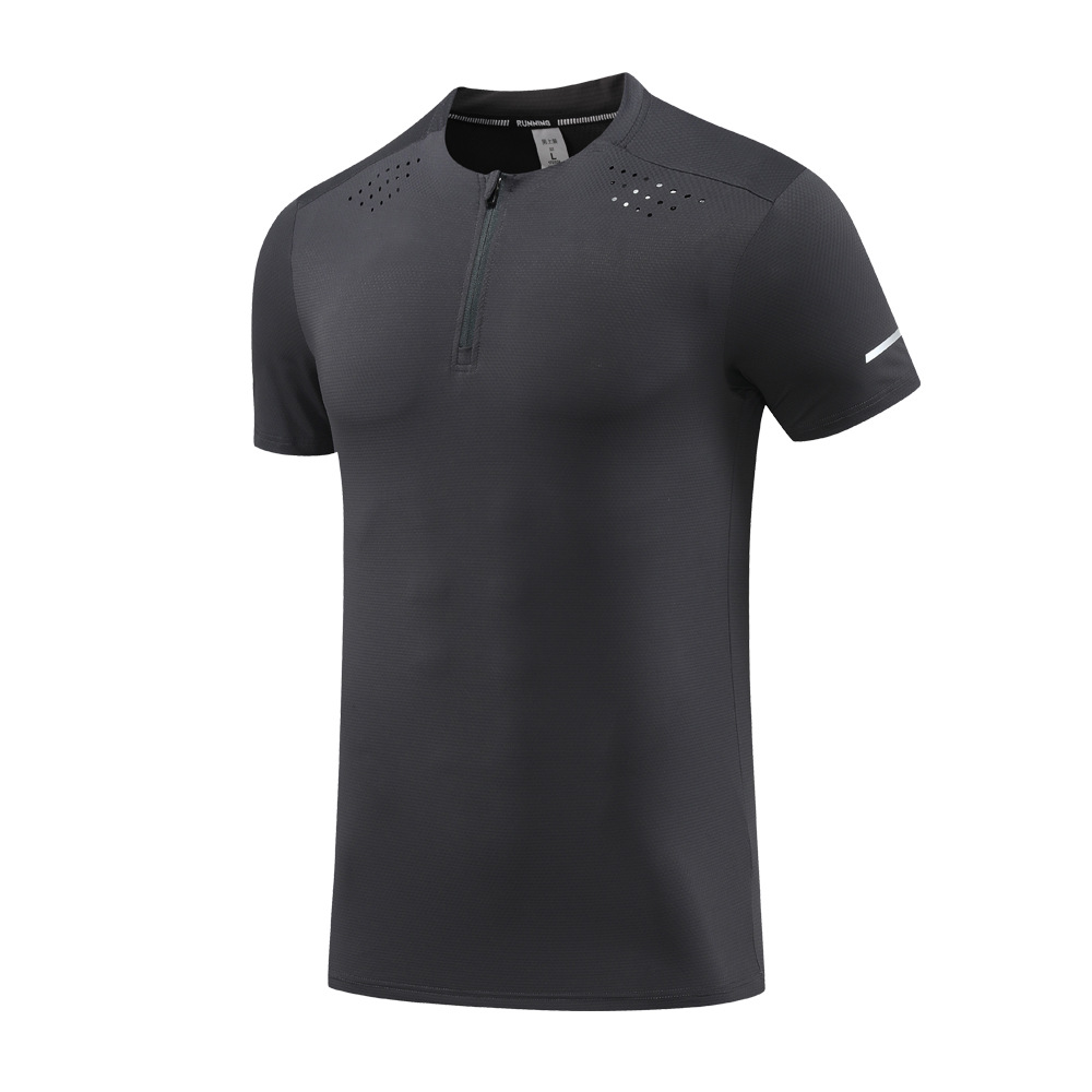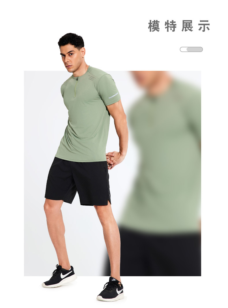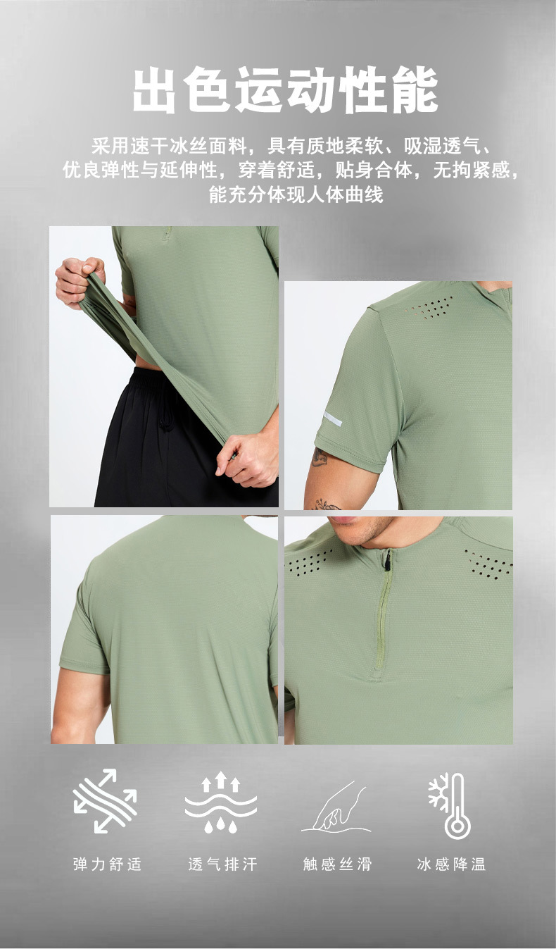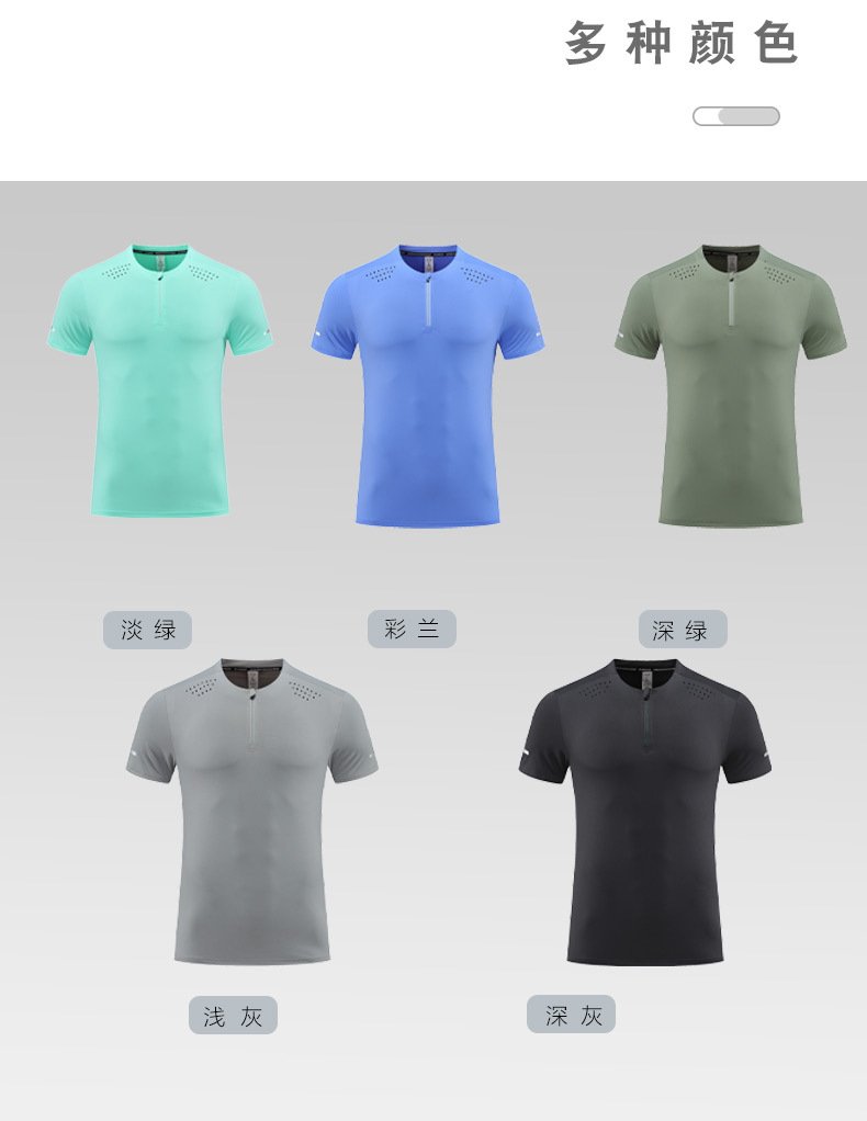 锦纶冰丝跑步运动短袖t恤男立领半拉链纯色健身衣训练弹力速干衣