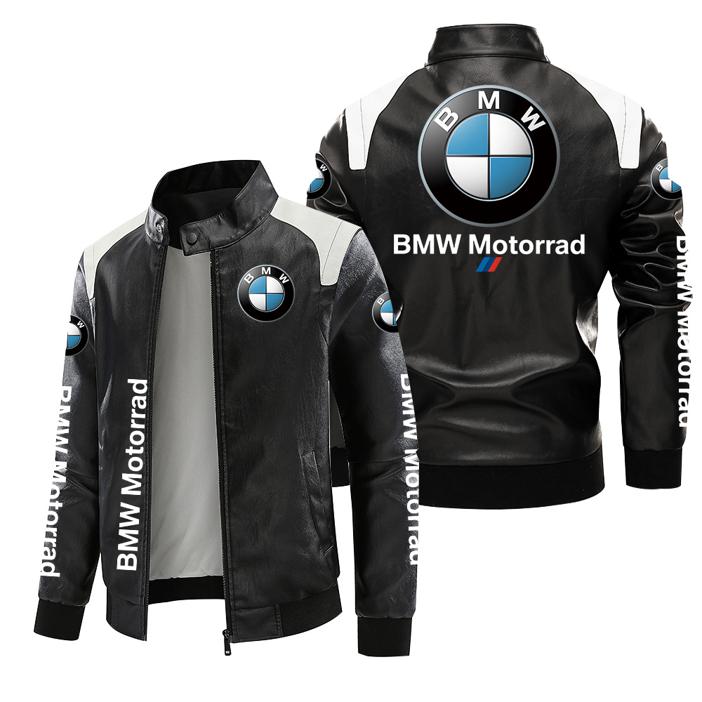 [유럽 사이즈 기모] Ma Bao 오토바이 로고 가죽 코트 플러스 사이즈 가을과 겨울 재킷 pu 하이 엔드 남성 클립 인쇄스토어 가기