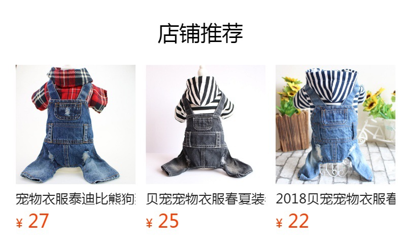 견인 링 팬더와 애완 동물 의류 Mixi 개 옷 봄, 여름, 가을, 겨울 의류 데님 조끼스토어 가기