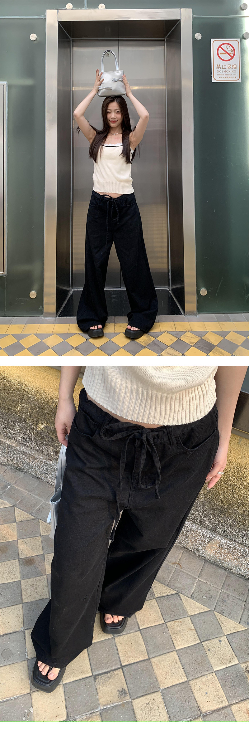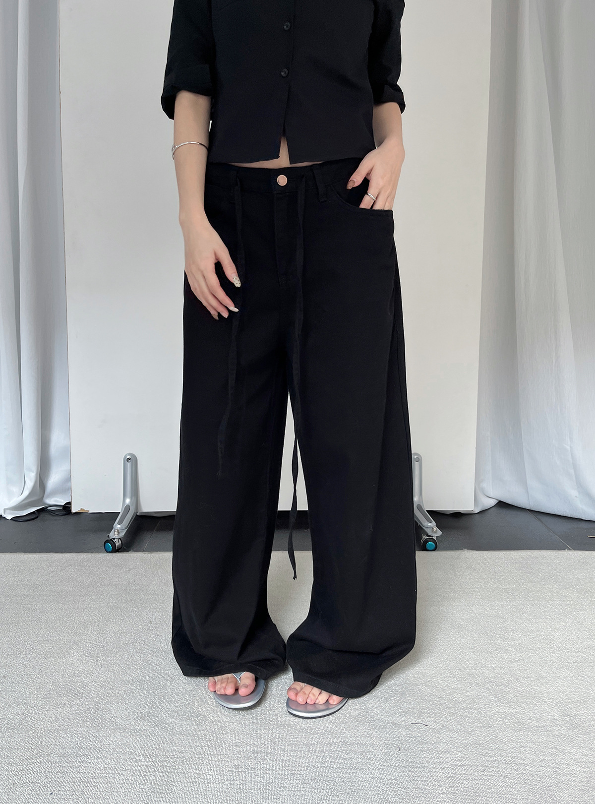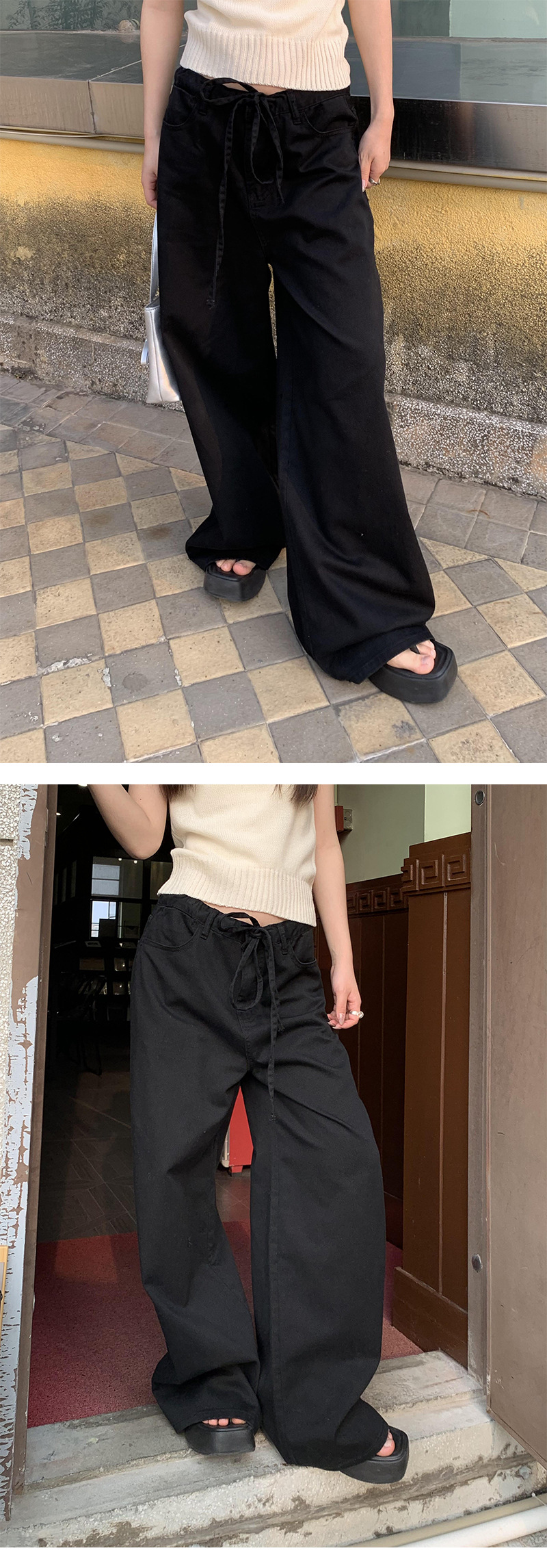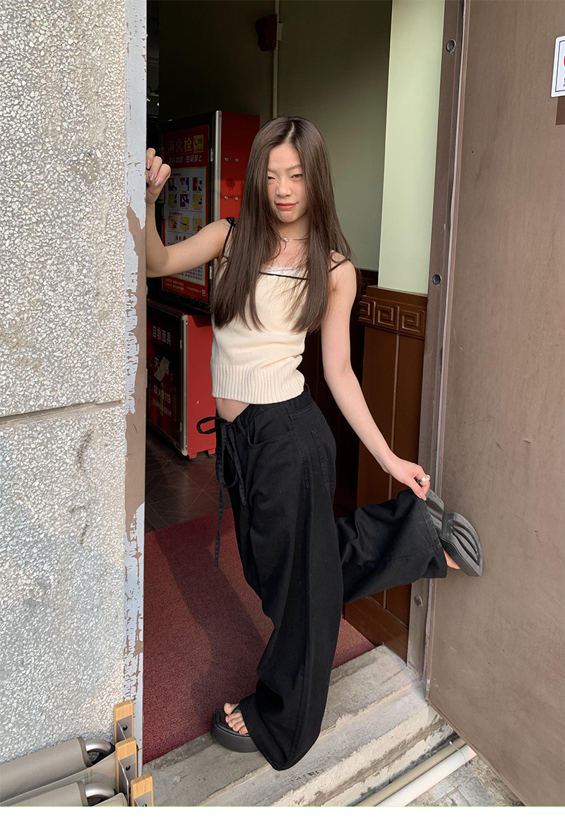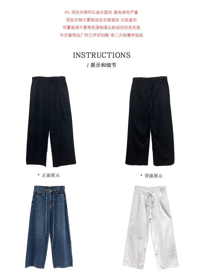 Yu Yi 새로운 2024 봄 게으른 스타일 Drawstring 바지 여성 느슨한 다목적 넓은 다리 청바지 여성 6033