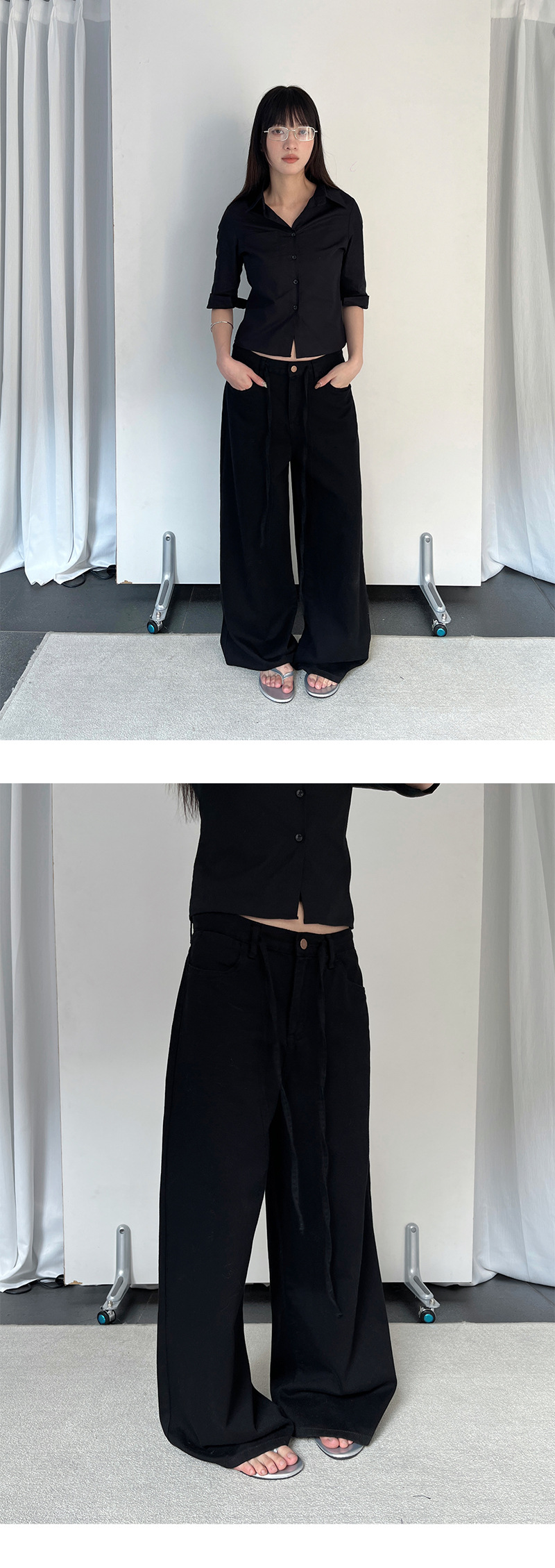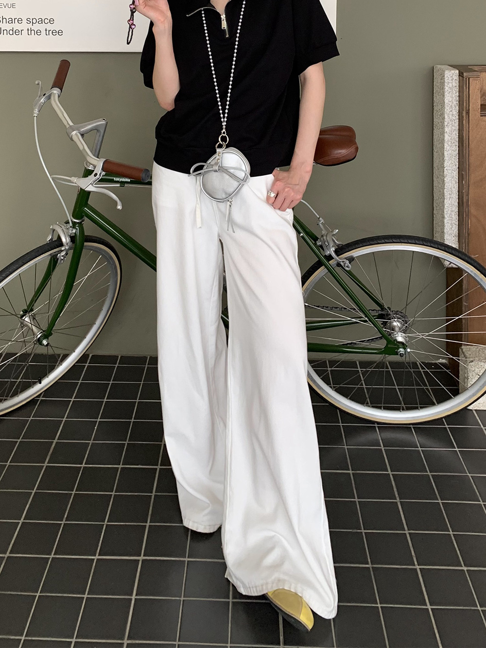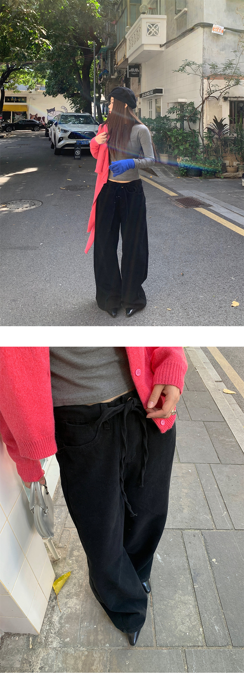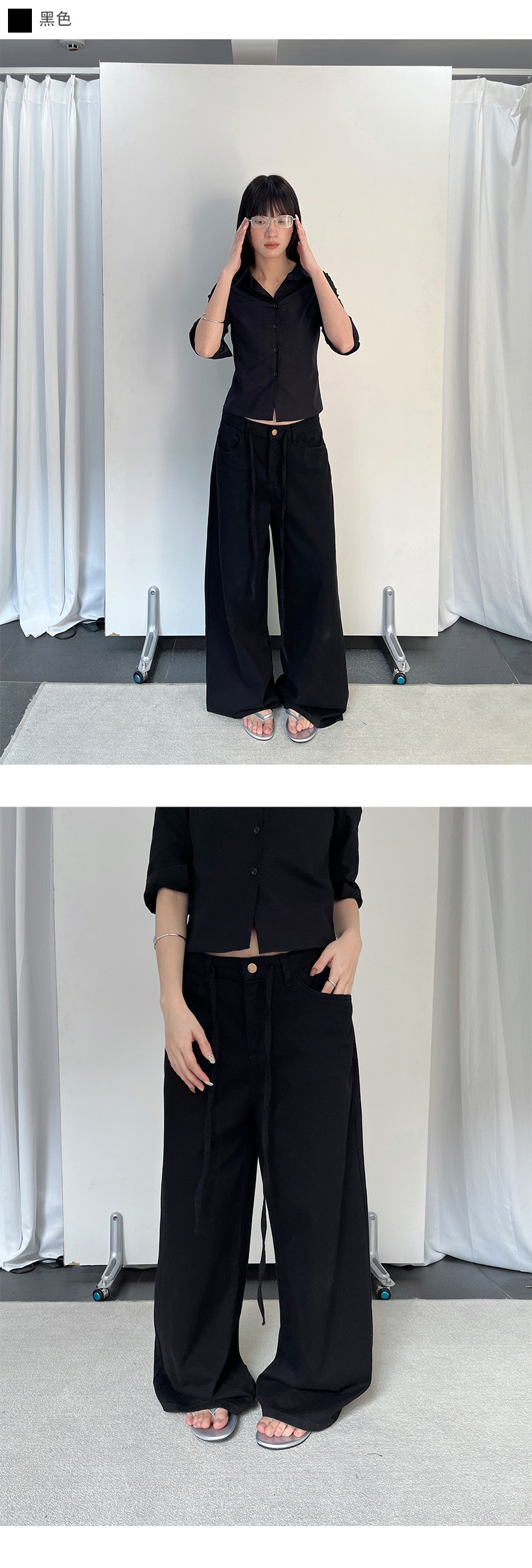 Yu Yi 새로운 2024 봄 게으른 스타일 Drawstring 바지 여성 느슨한 다목적 넓은 다리 청바지 여성 6033