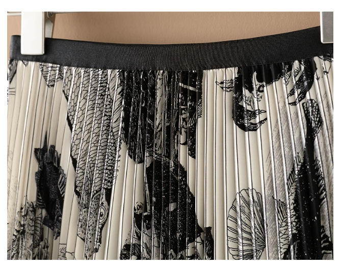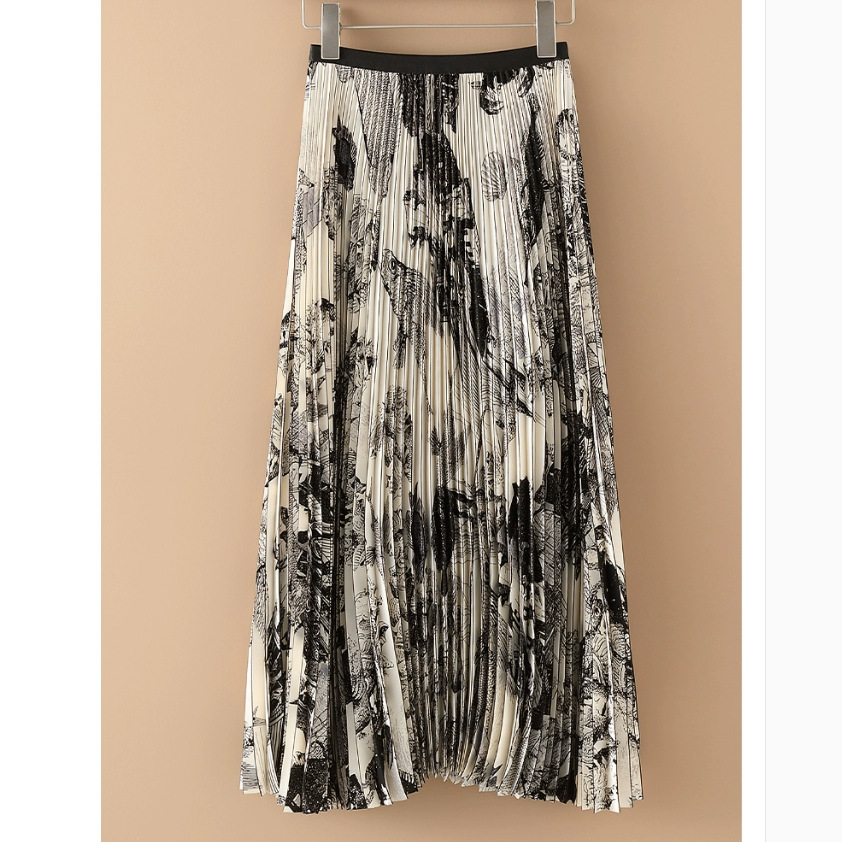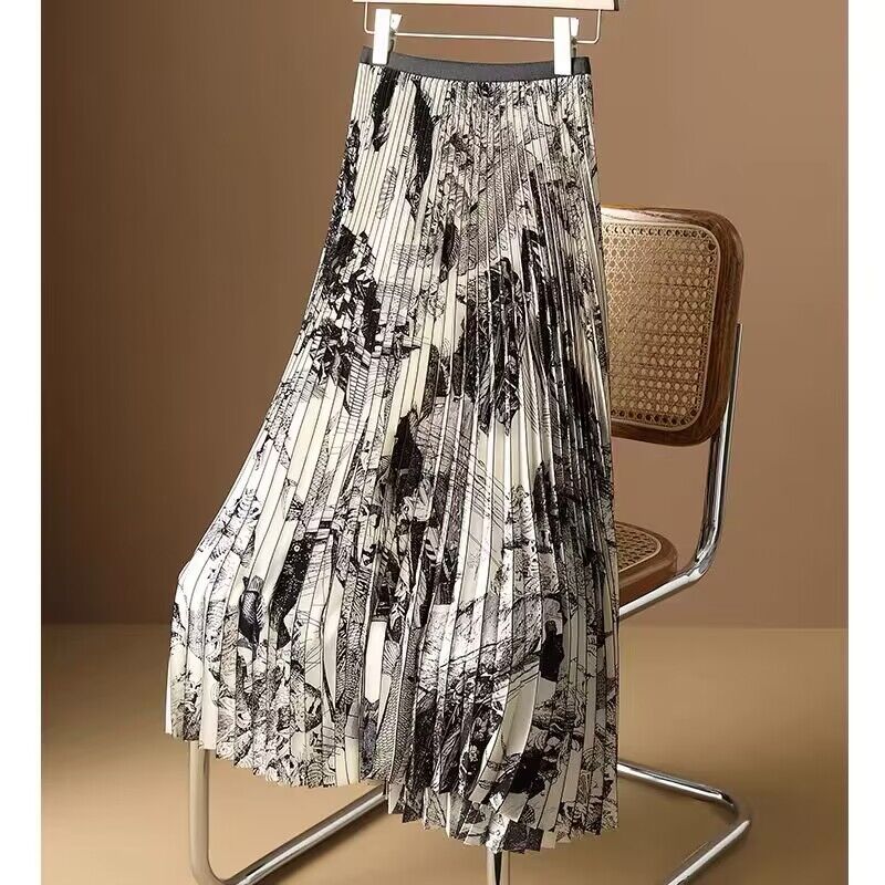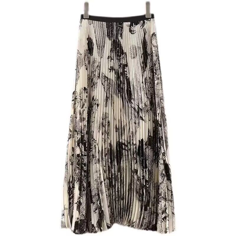 여성을위한 하이 엔드 인쇄 쉬폰 잉크 페인팅 스커트 여름 새로운 하이 엔드 슬리밍 스커트 주름 원피스스토어 가기