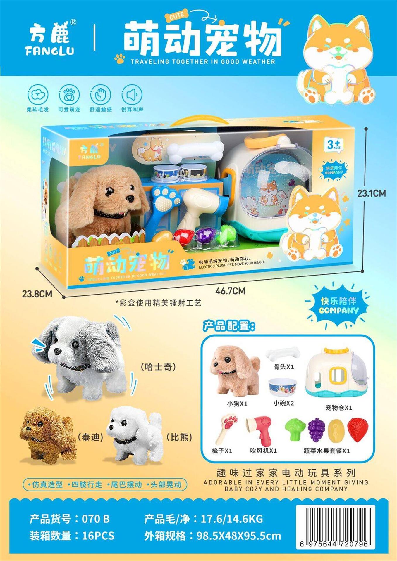 어린이 선물 상자 재미있는 놀이 집 전기 귀여운 애완 동물 홈 봉제 개 장난감 기관 등록 포인트 갱신 도매