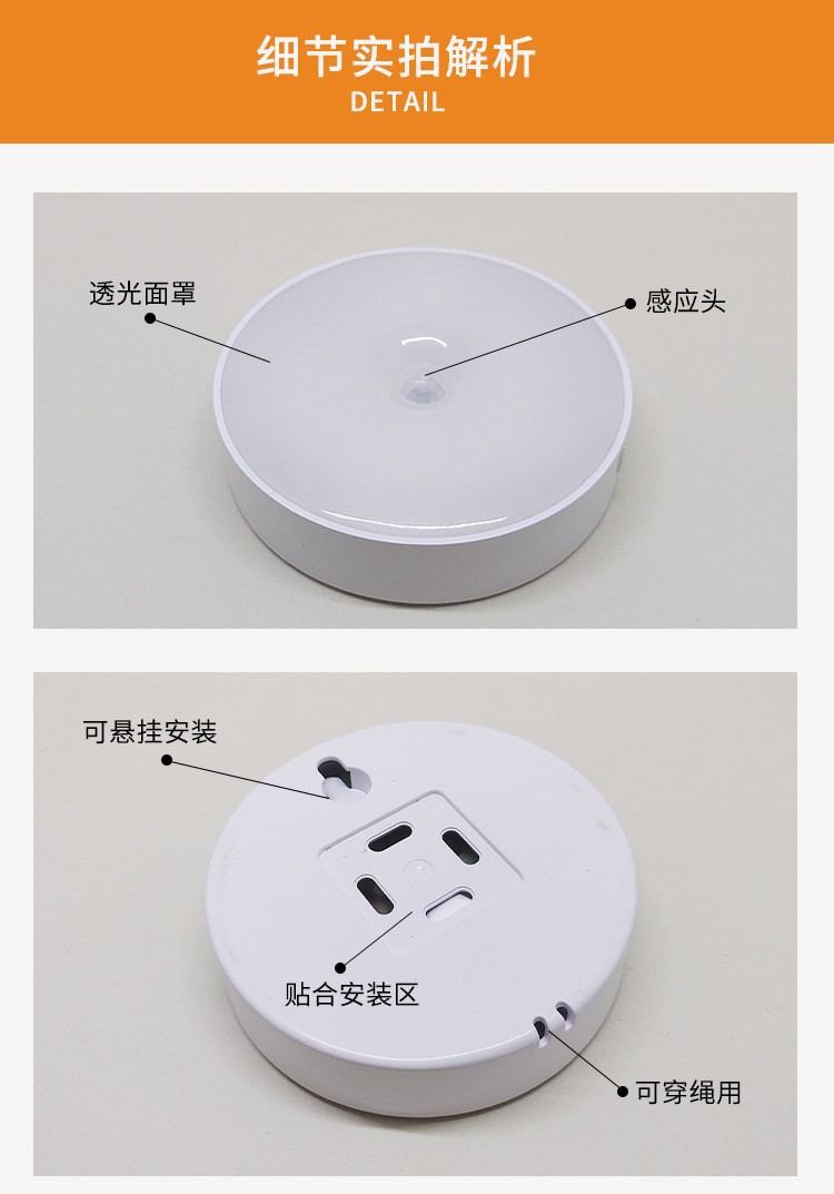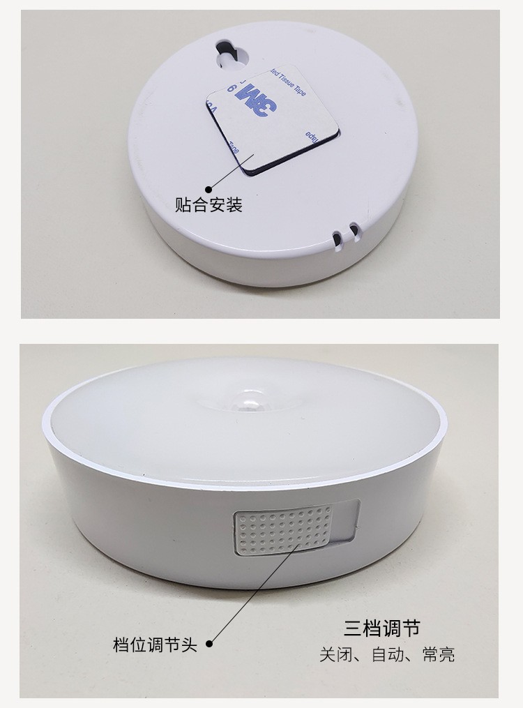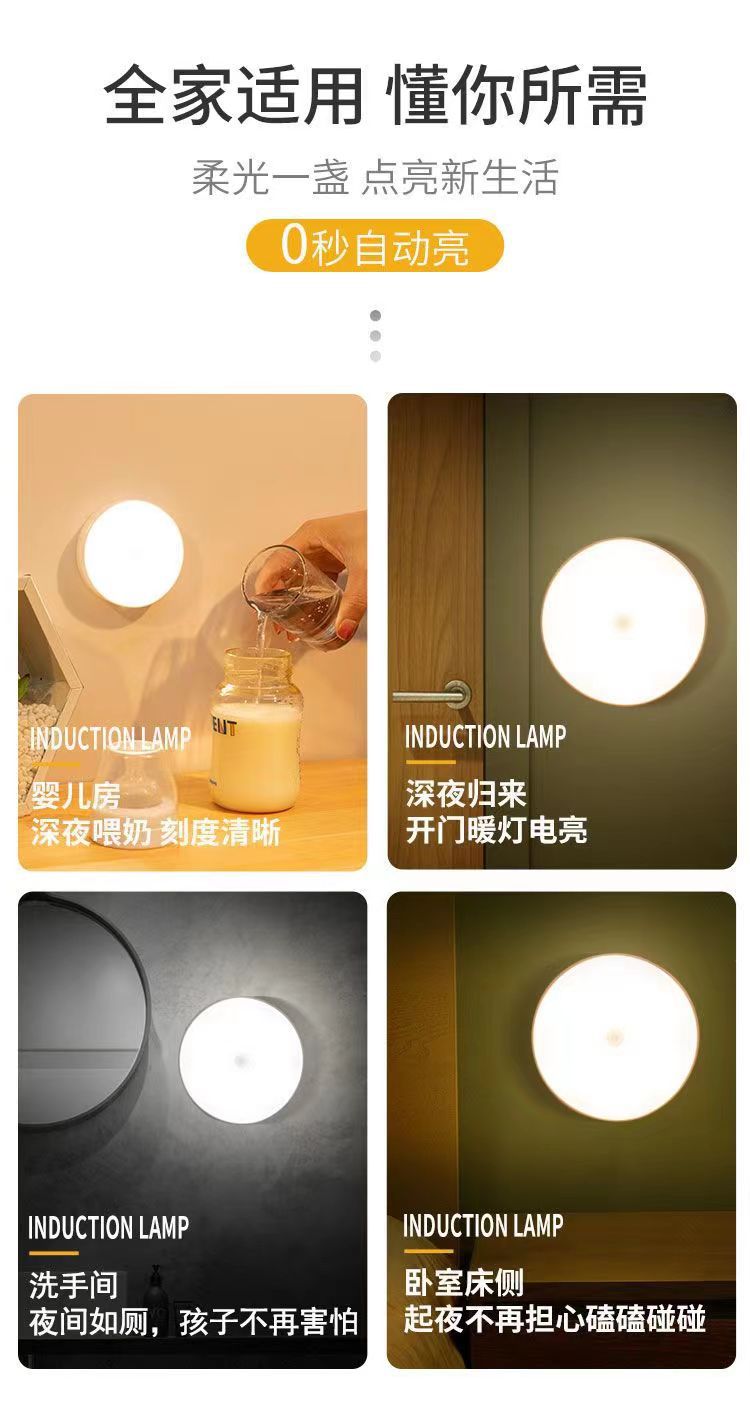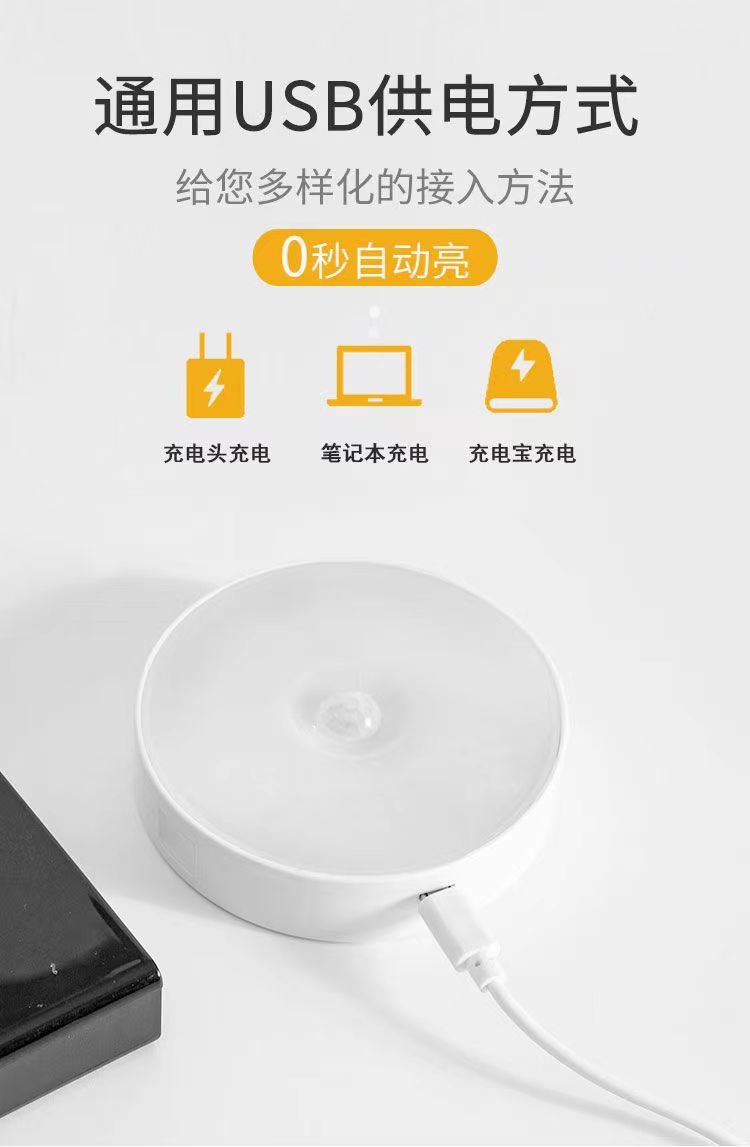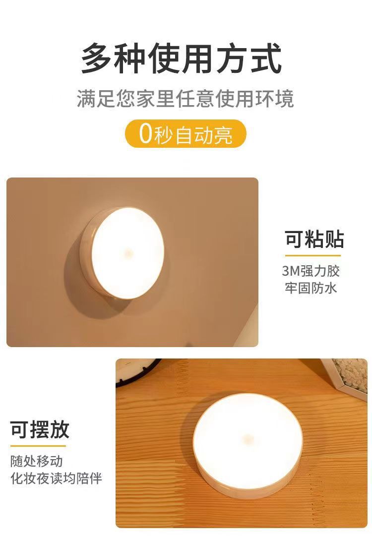 공장 도매 지능형 유도 야간 조명 2 색 인체 유도 usb 충전 자기 흡입 라운드 옷장 캐비닛 조명