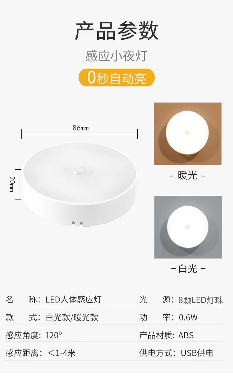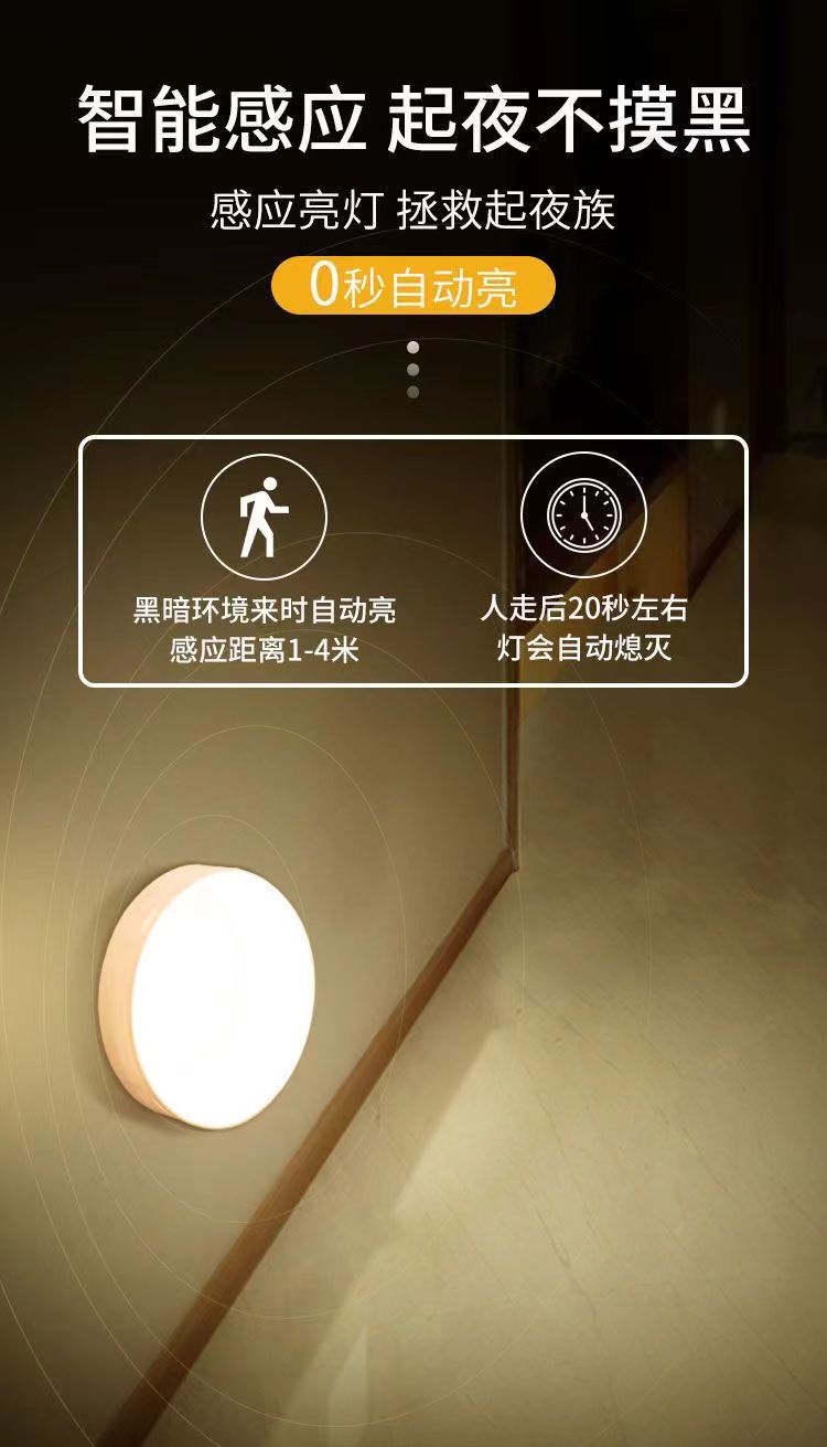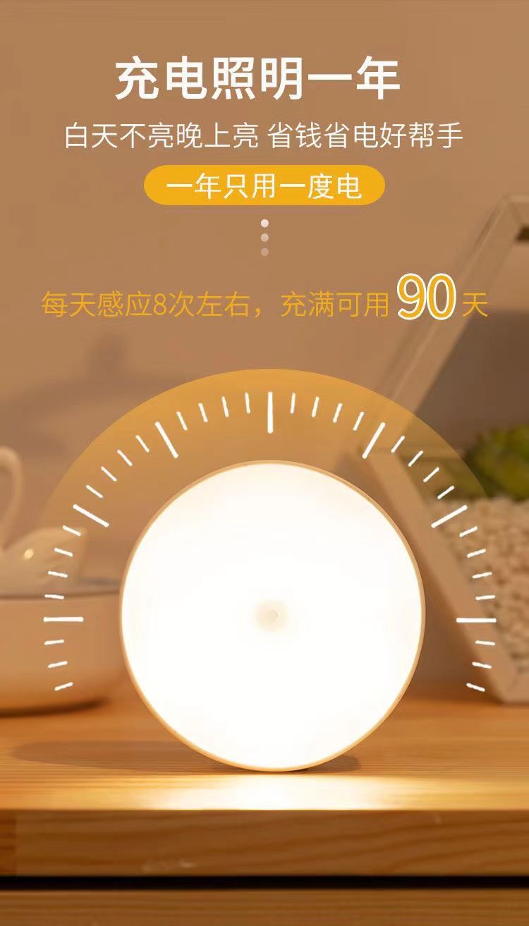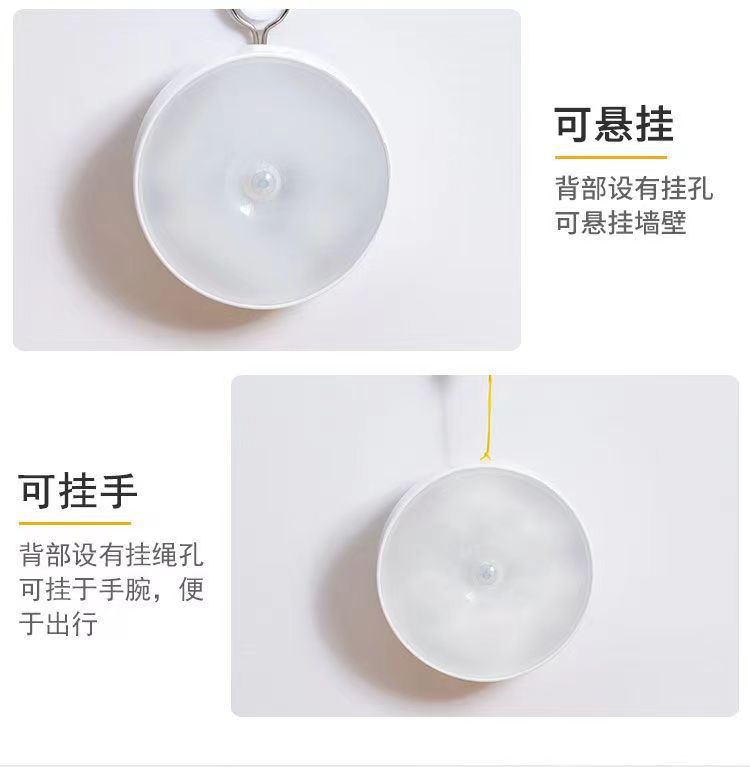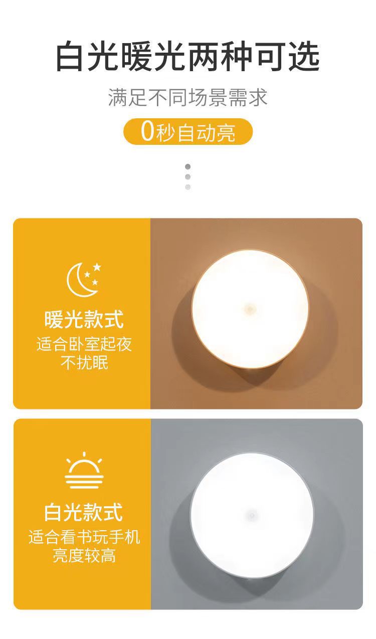 공장 도매 지능형 유도 야간 조명 2 색 인체 유도 usb 충전 자기 흡입 라운드 옷장 캐비닛 조명