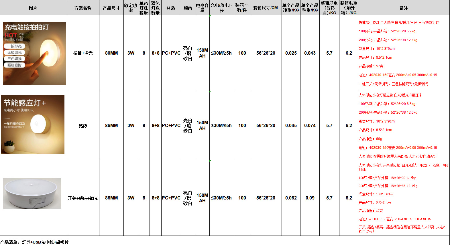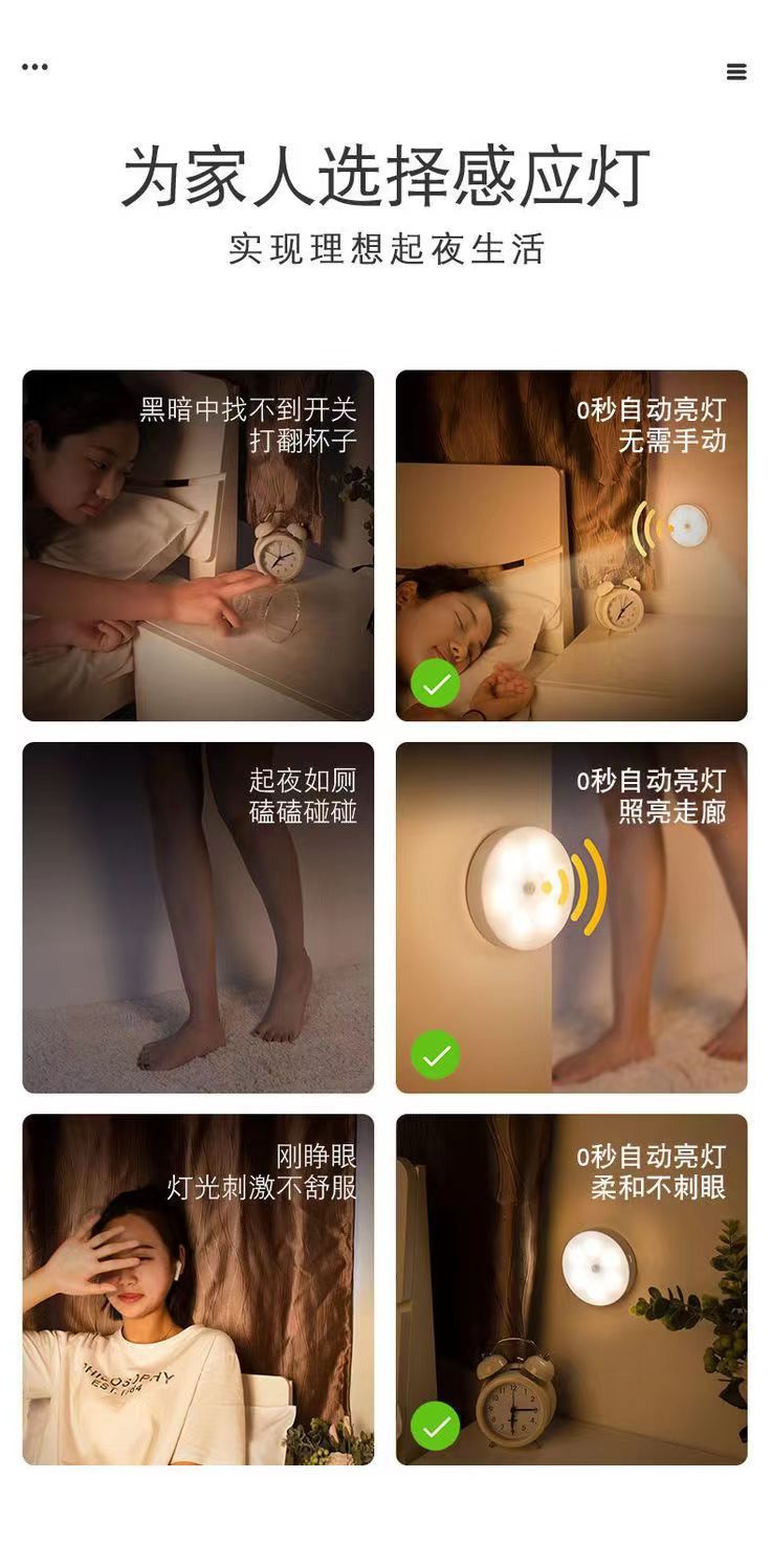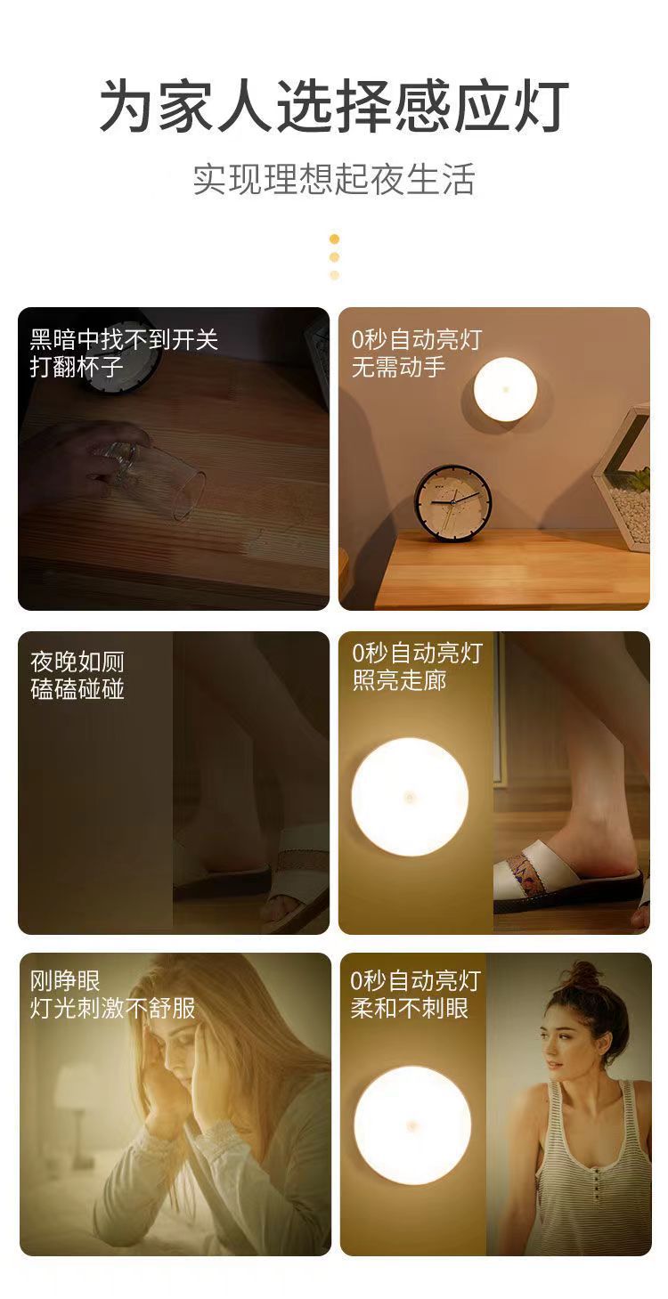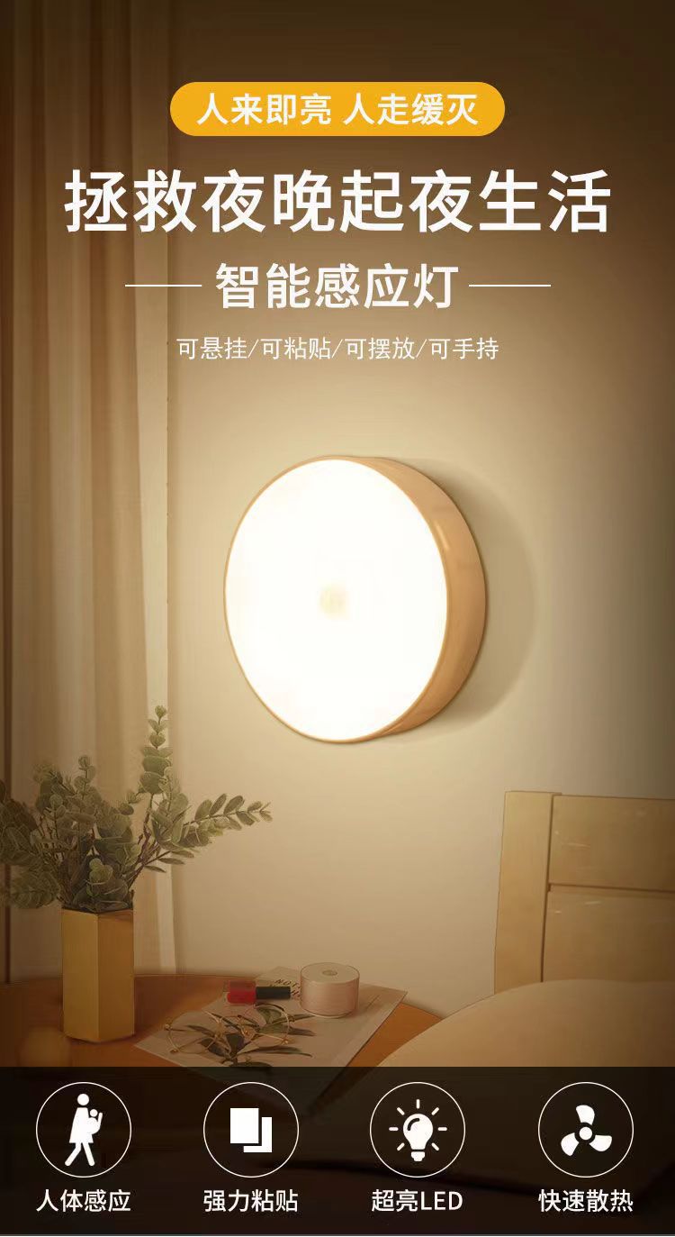 공장 도매 지능형 유도 야간 조명 2 색 인체 유도 usb 충전 자기 흡입 라운드 옷장 캐비닛 조명