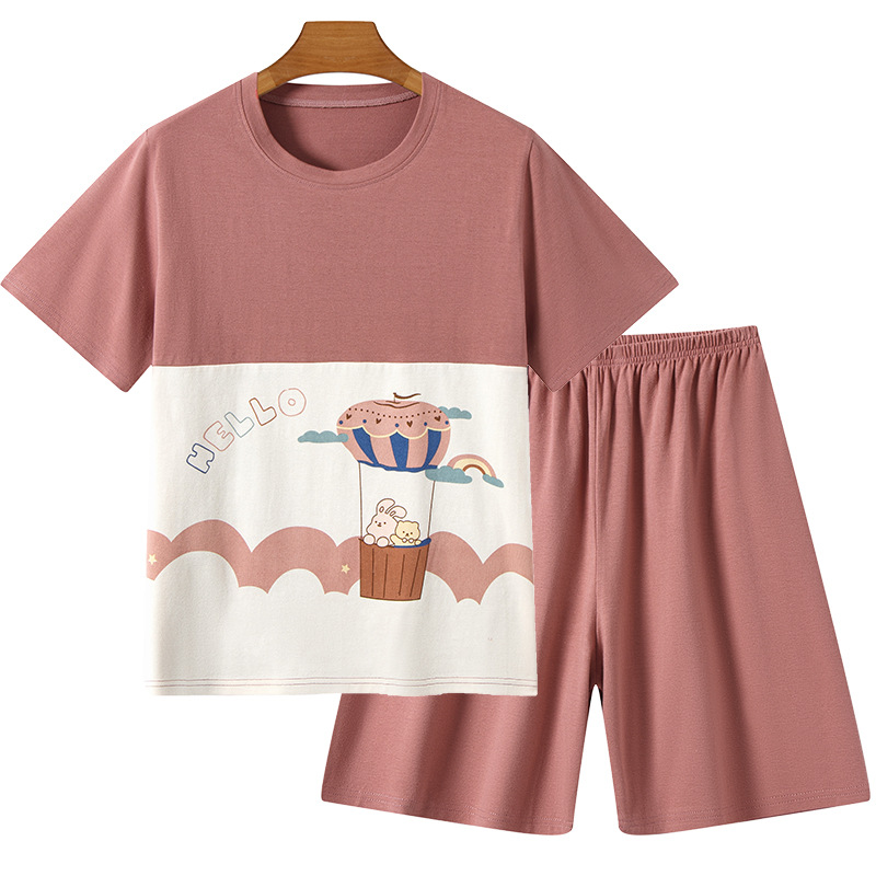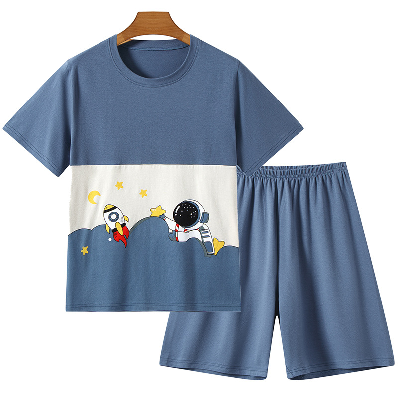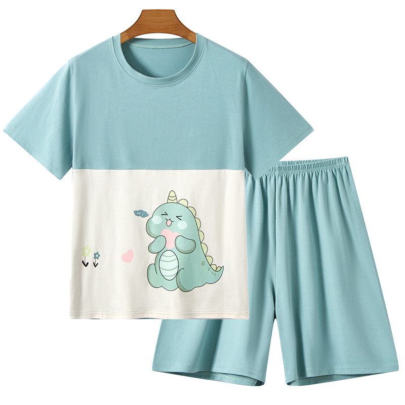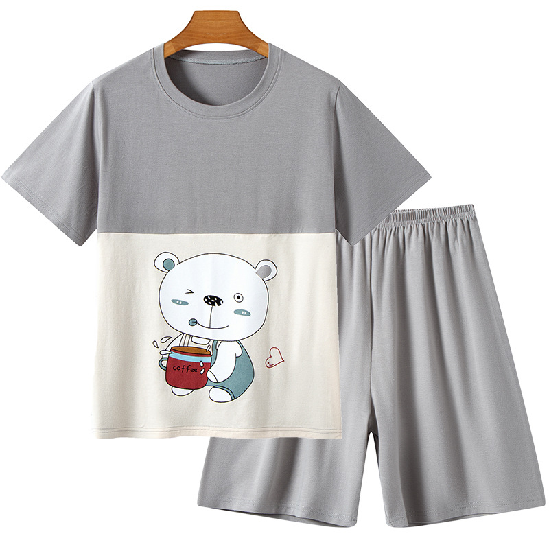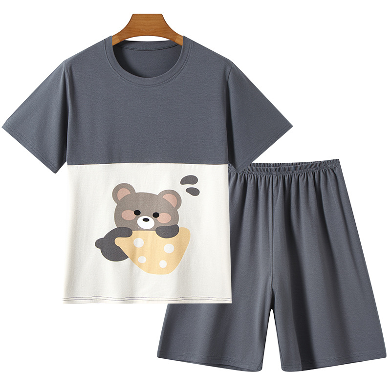 라이크라 코튼 커플 홈웨어 큰 어린이 반팔 세트 남성과 여성의 원피스 반바지 만화 나이트 드레스는 외부에서 입을 수 있습니다.스토어 가기