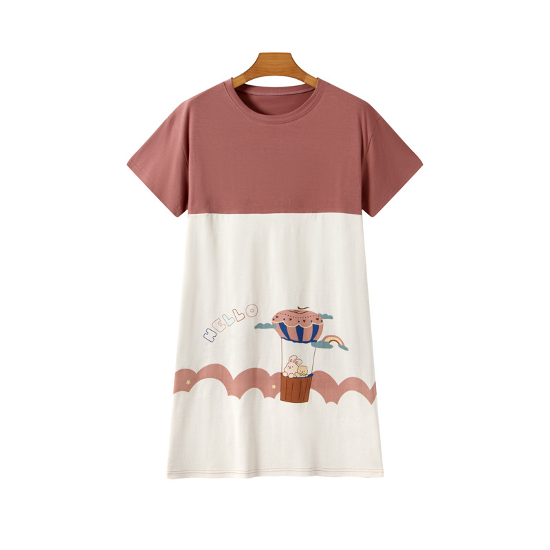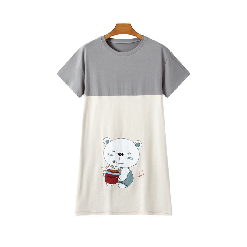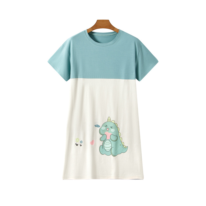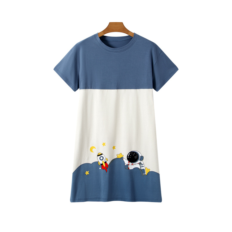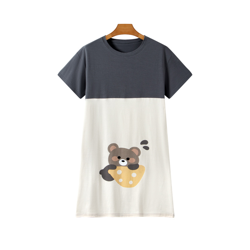 라이크라 코튼 커플 홈웨어 큰 어린이 반팔 세트 남성과 여성의 원피스 반바지 만화 나이트 드레스는 외부에서 입을 수 있습니다.스토어 가기