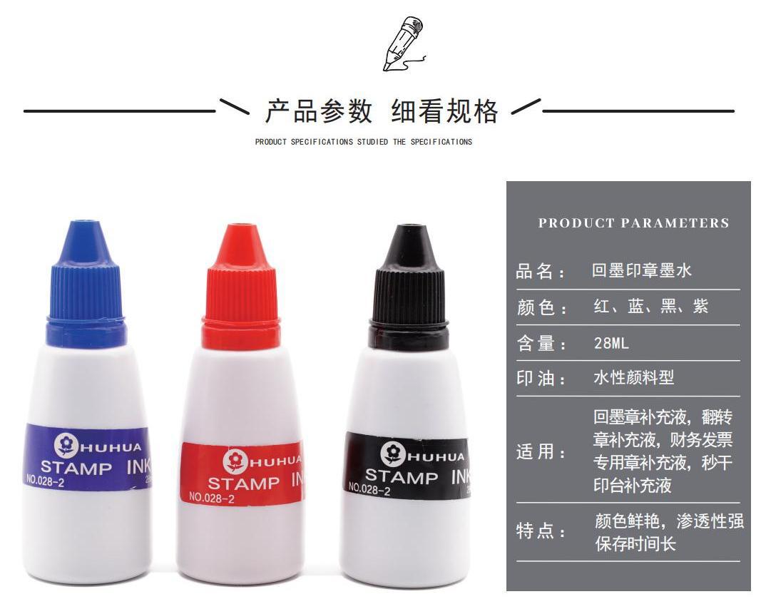 28ml速干清晰水性环保翻转回墨印章油墨印章材料财务办公用品专用补充液公章印油
