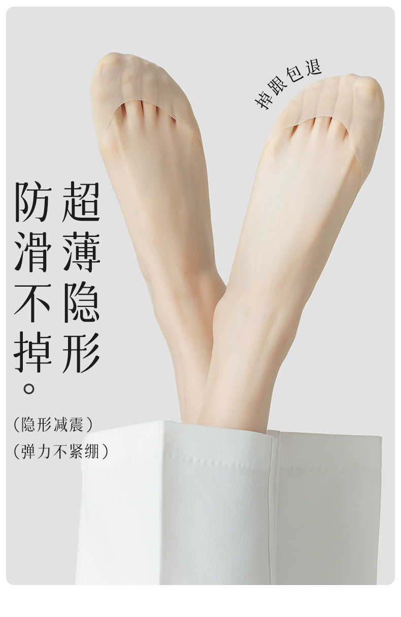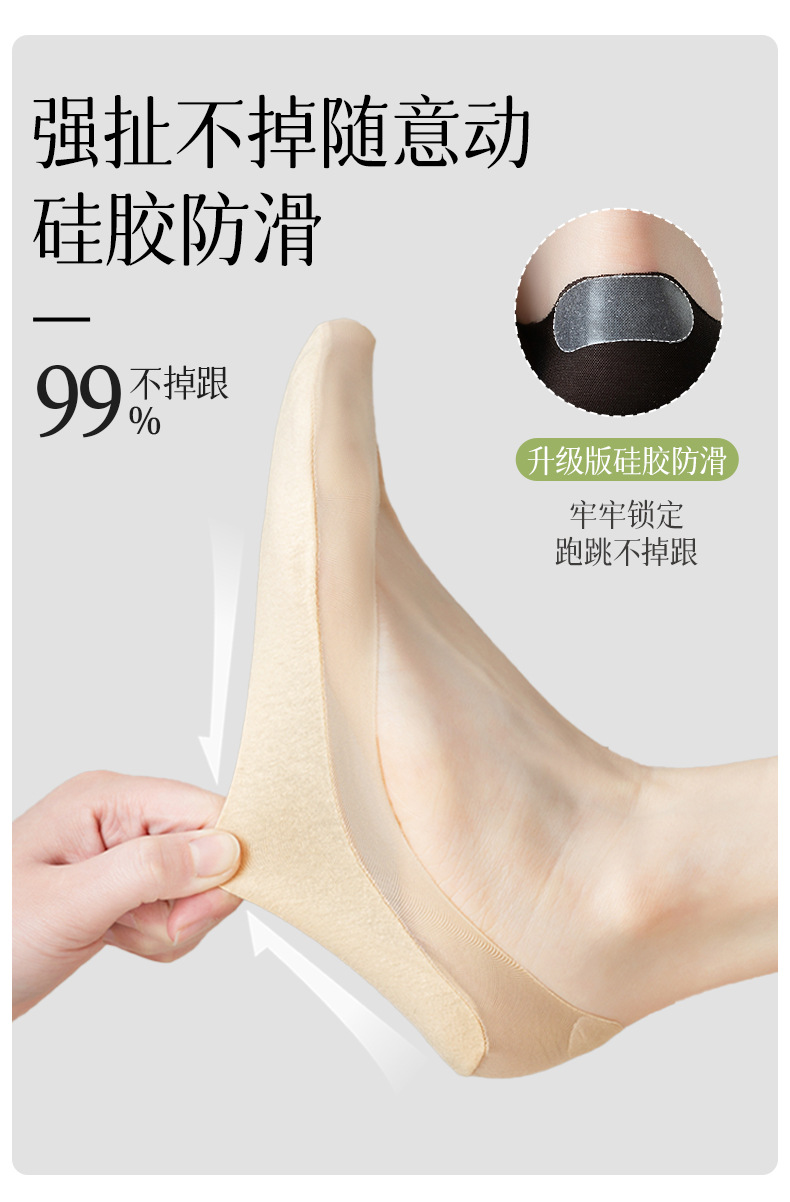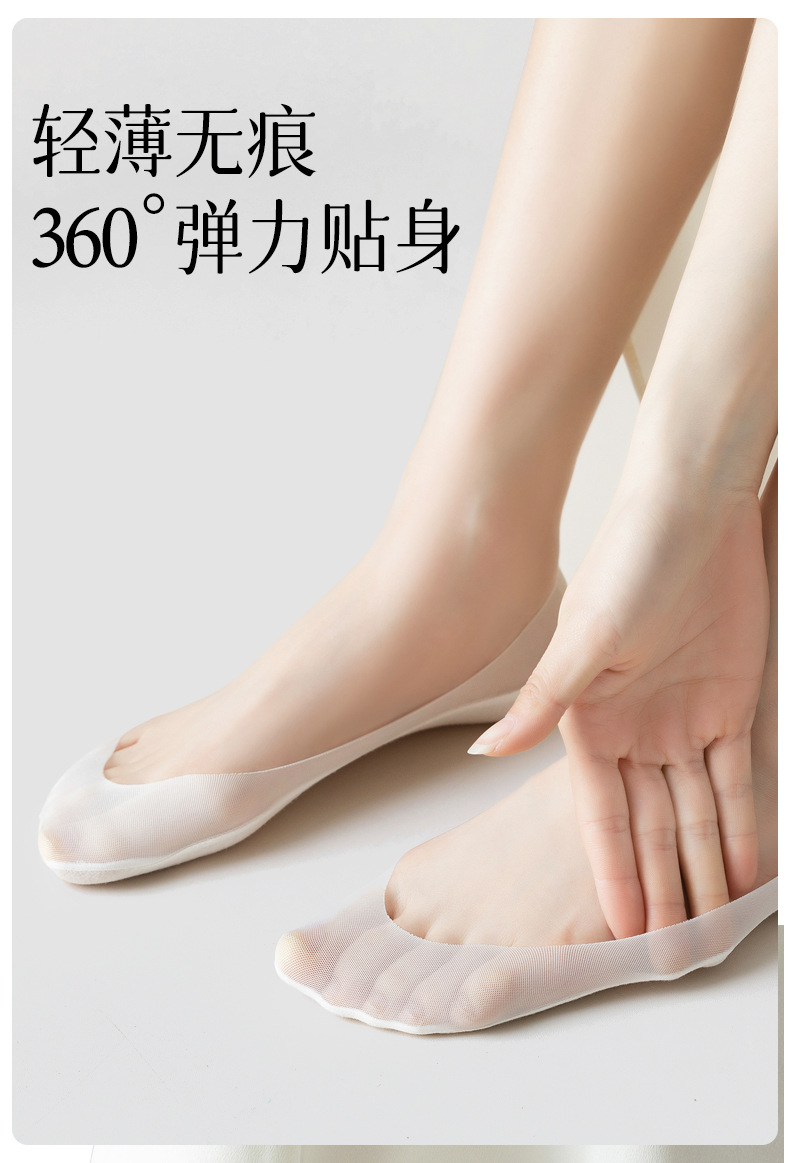 여성용 여름 얇은 보트삭스, 미끄럼 방지, 끈이 빠지지 않는 아이스 실크 소재, 여름용 순면 바닥, 하이힐용, 초박형, 얕은 입구, 투명 양말