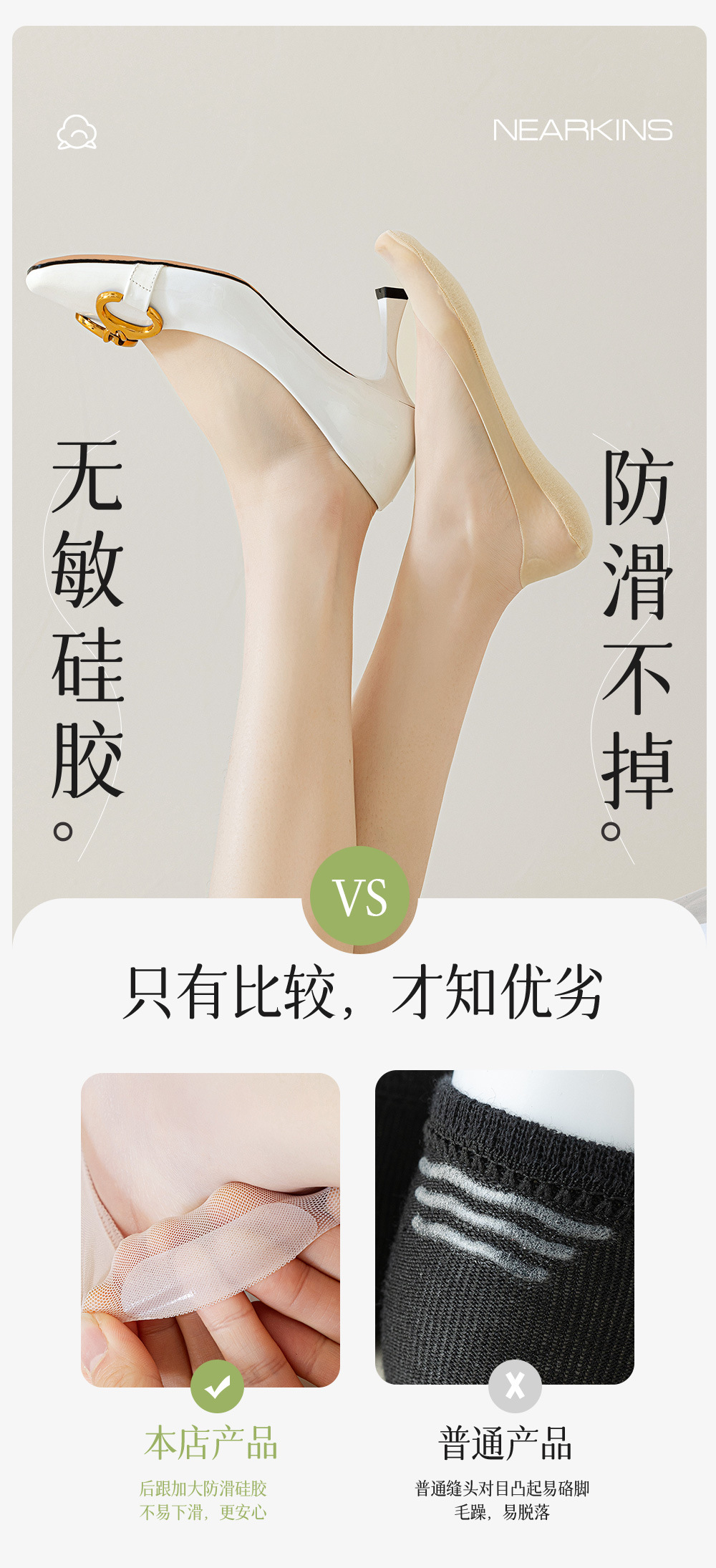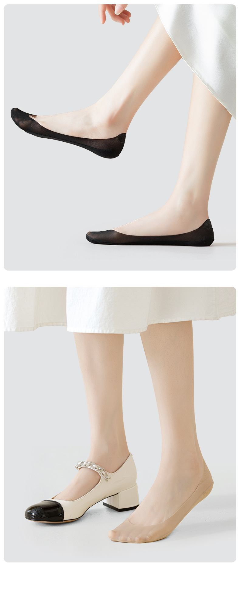 여성용 여름 얇은 보트삭스, 미끄럼 방지, 끈이 빠지지 않는 아이스 실크 소재, 여름용 순면 바닥, 하이힐용, 초박형, 얕은 입구, 투명 양말스토어 가기