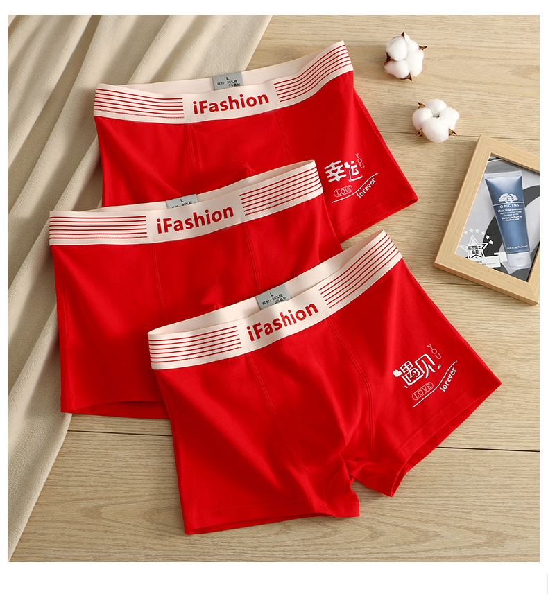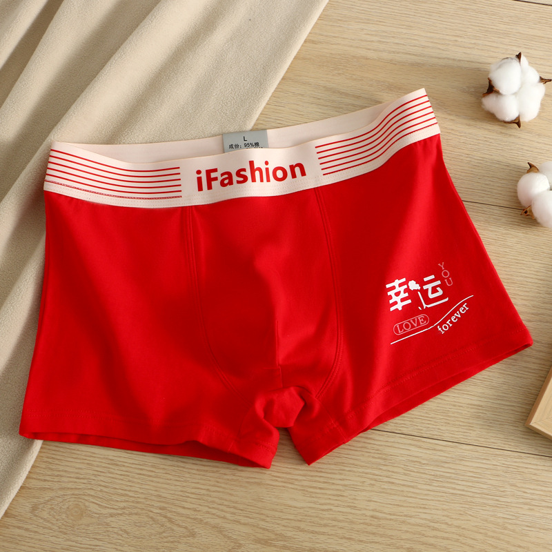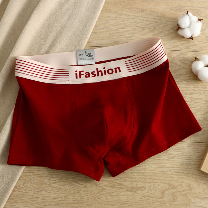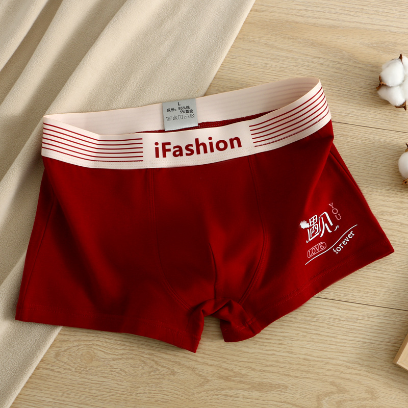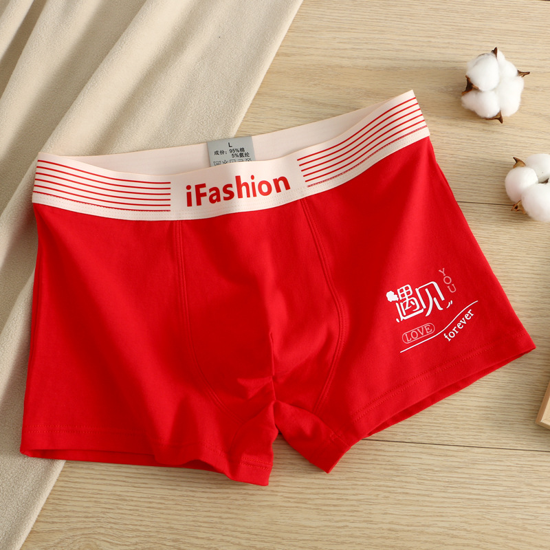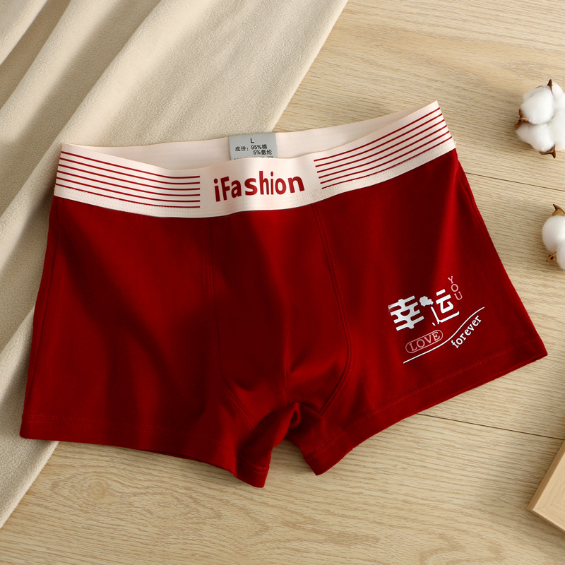 Benmingnian 부르고뉴 남성 속옷 면화 남성 복서 중간 허리 반바지 머리 중학생 빨간 속옷 바닥스토어 가기