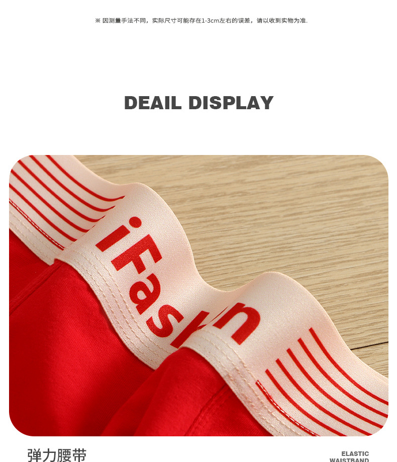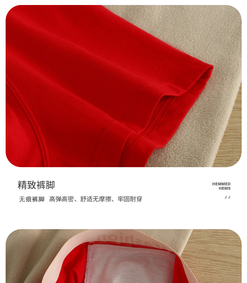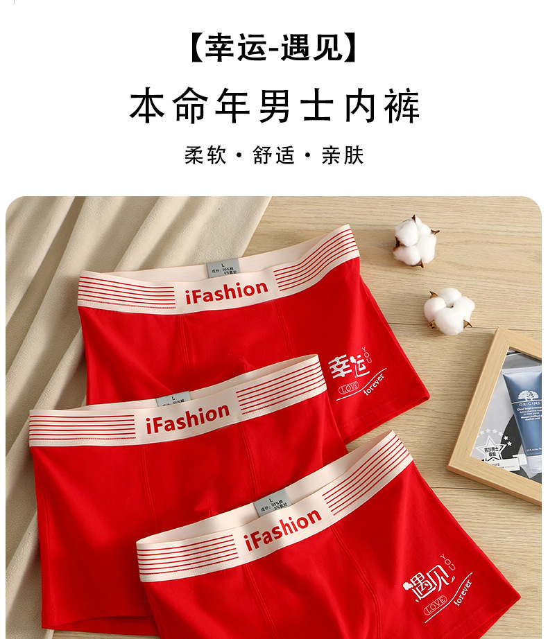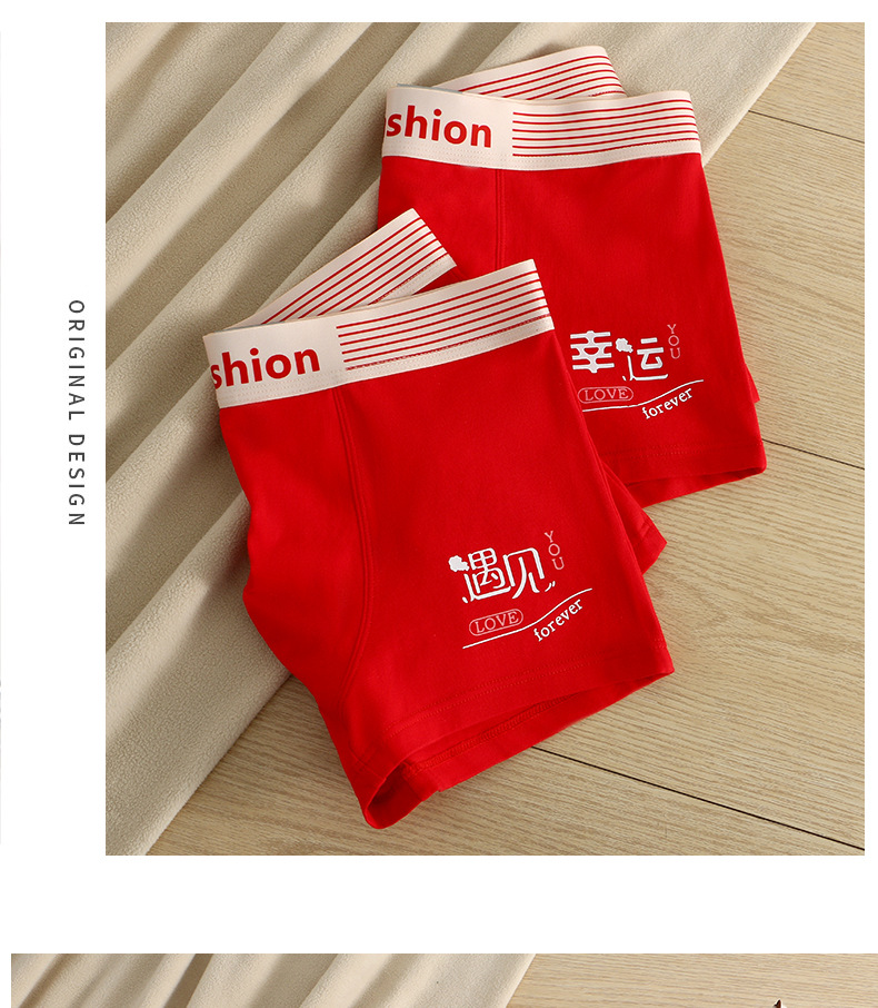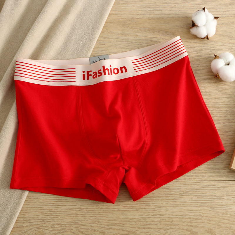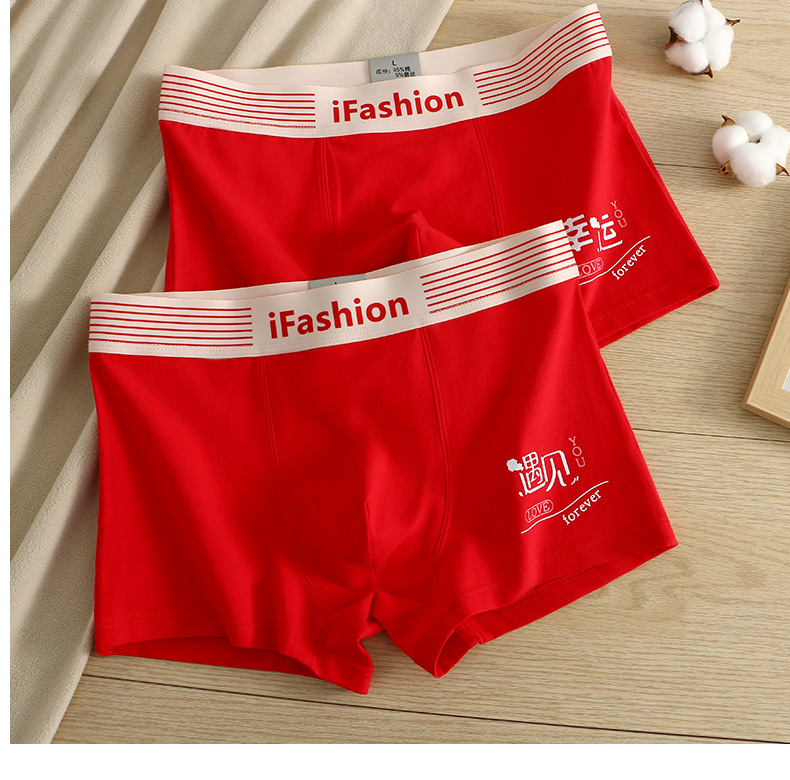 Benmingnian 부르고뉴 남성 속옷 면화 남성 복서 중간 허리 반바지 머리 중학생 빨간 속옷 바닥스토어 가기