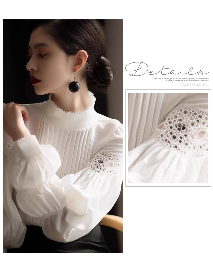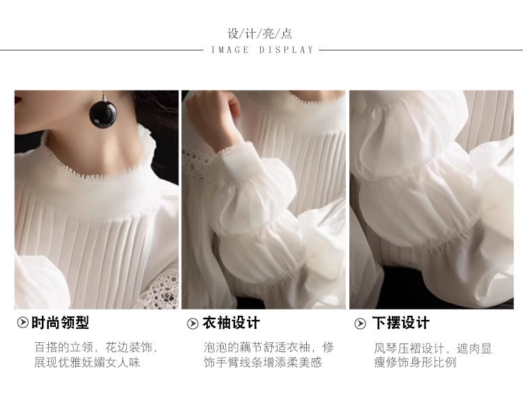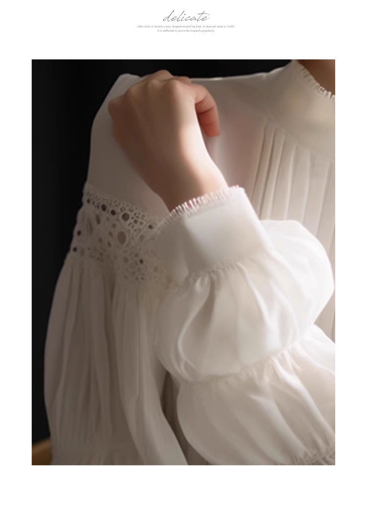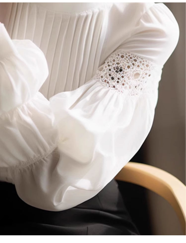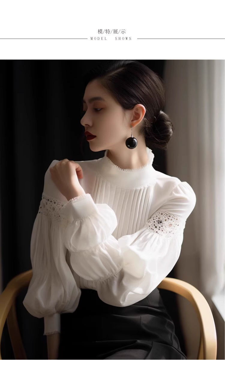 2024 레이스 셔츠/쉬폰 셔츠 간단한 한국 스타일 표준 긴 소매 H 자형 랜턴 소매 풀오버 봄과 가을 단색스토어 가기