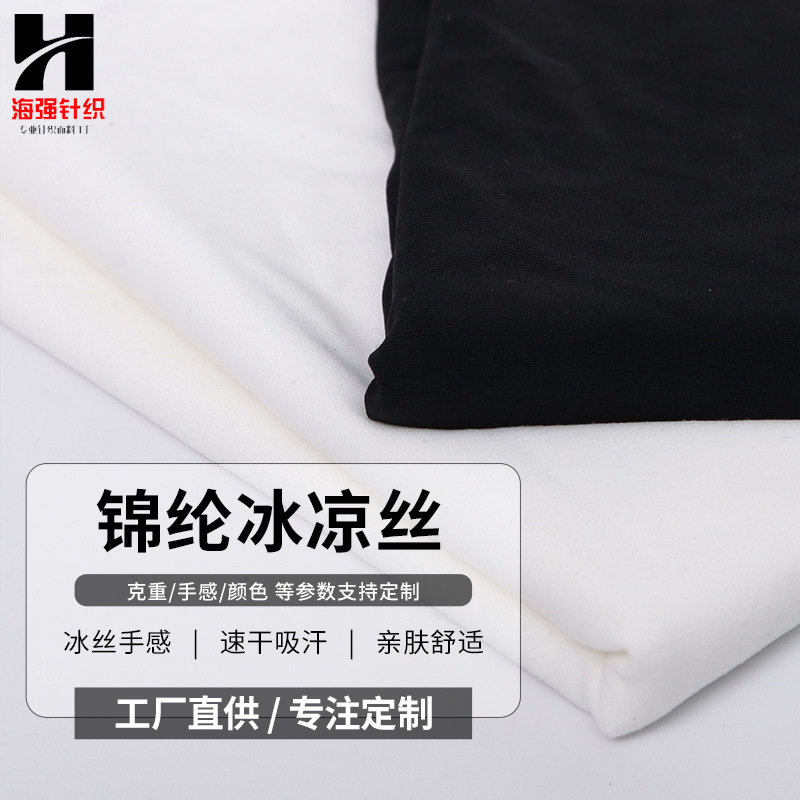 品名/Name: 锦纶冰凉丝 主要成分/Main components: 约86锦纶14氨纶 成品幅宽:/Finished product width 162cm(可定制) 成品克重/Finished product weight: 180g(可定制) 颜色/colour: 现货颜色:黑色 本白 浅灰 浅杏 支持色样定染