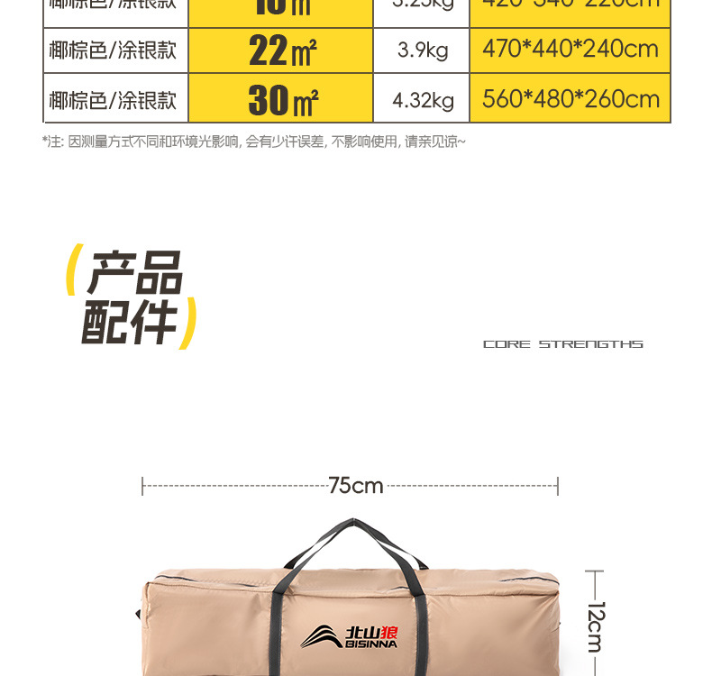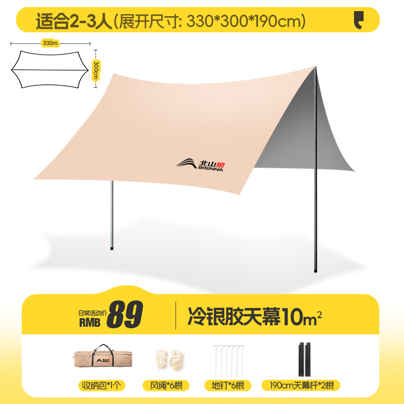 Beishan Wolf 실버 코팅 캐노피 텐트 야외 대형 피크닉 캠핑 장비 풀 세트 두꺼운 태양 방지 차양