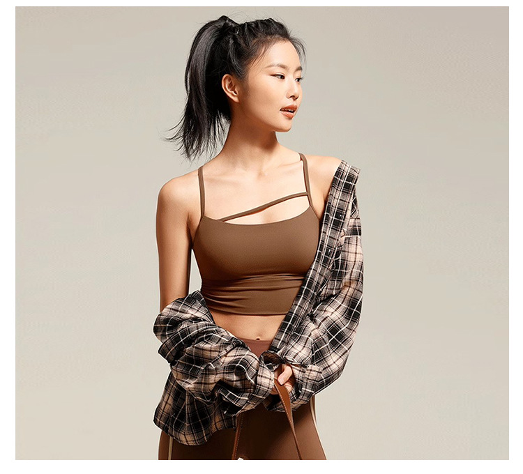 유럽과 미국 스타일의 여성용 원피스 요가 캐미솔, 가슴 패드 내장, 속건성, 피트니스 스포츠 브라, 아우터웨어, 신상품스토어 가기