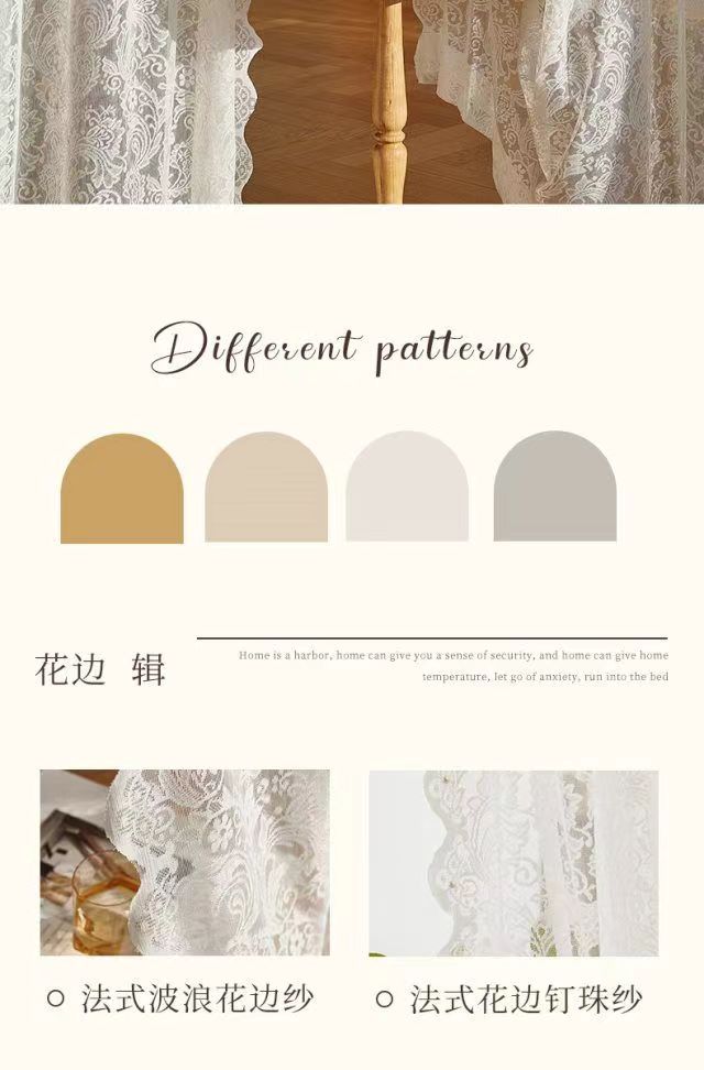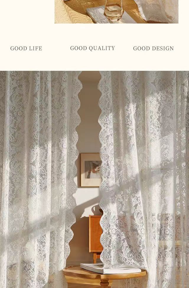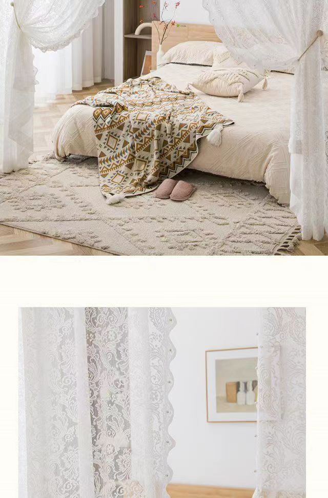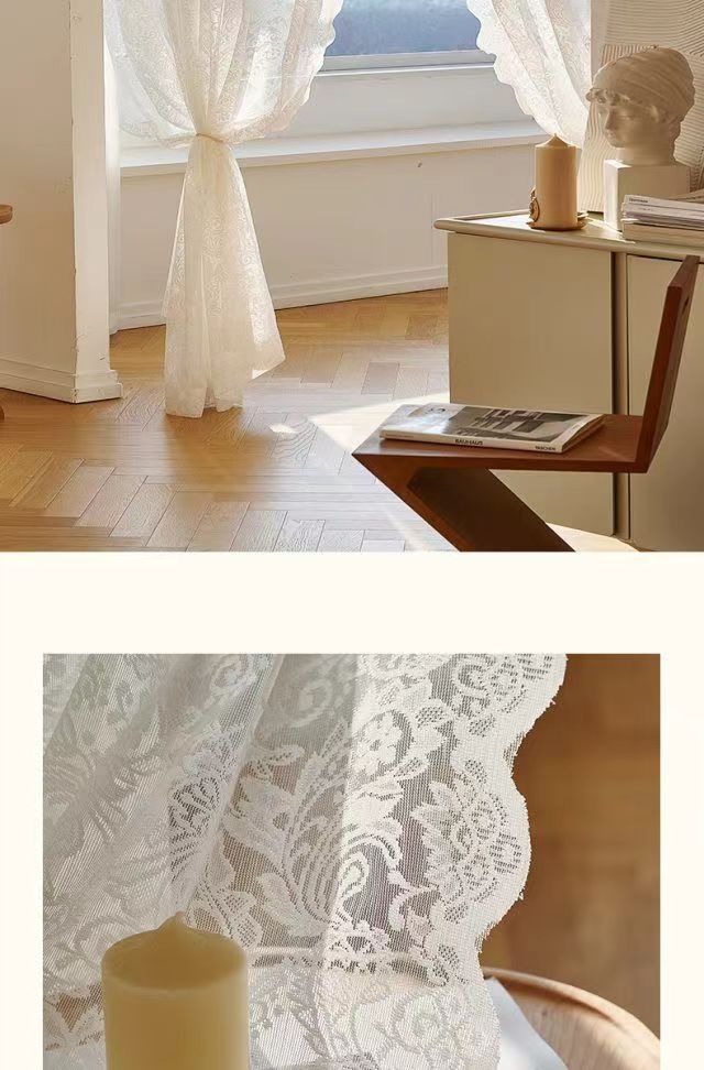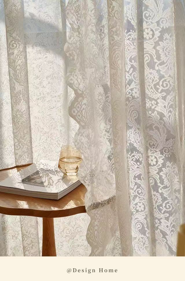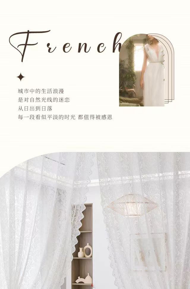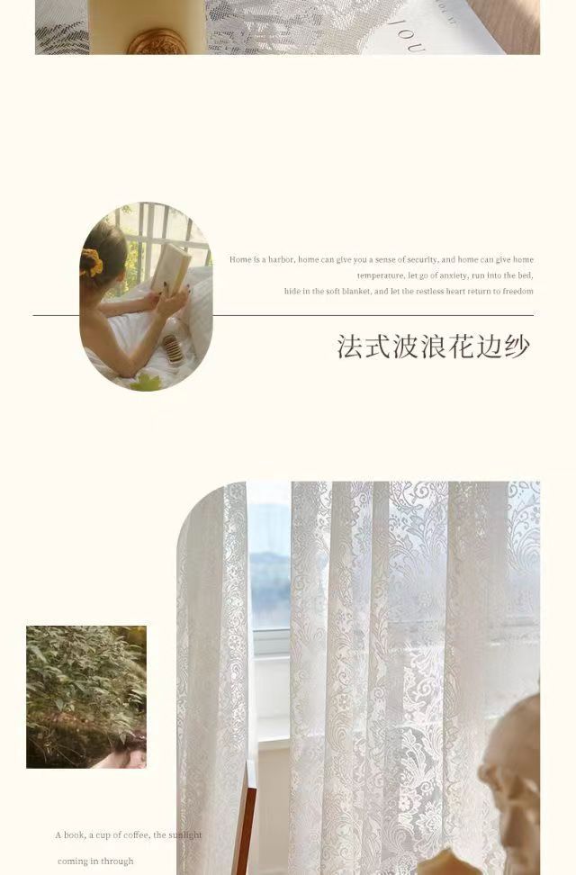 프랑스 복고풍 레이스 거즈 커튼 침실 발코니 베이 창 화면 흰색 거즈 파티션 웨이브 레이스 시골 목가적 커튼스토어 가기