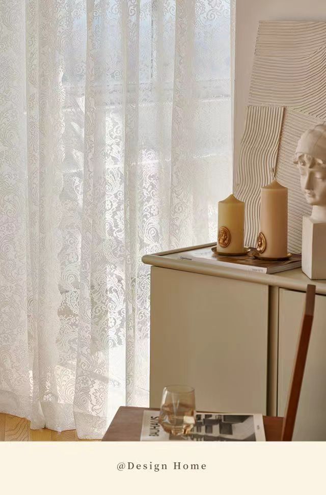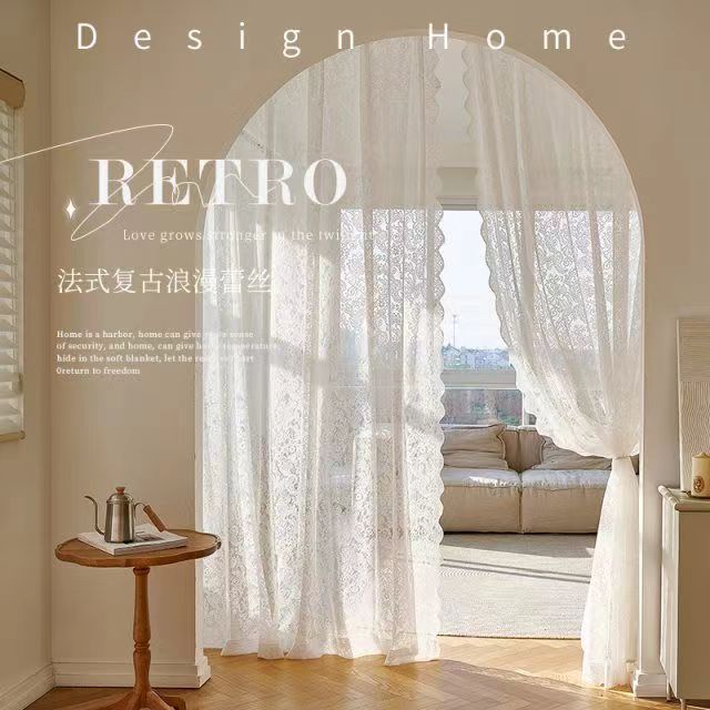 프랑스 복고풍 레이스 거즈 커튼 침실 발코니 베이 창 화면 흰색 거즈 파티션 웨이브 레이스 시골 목가적 커튼