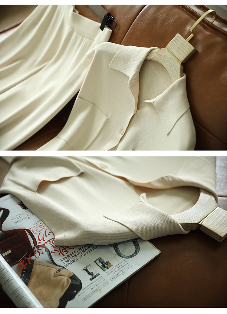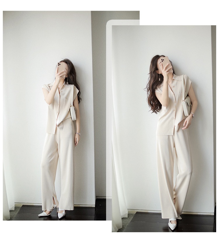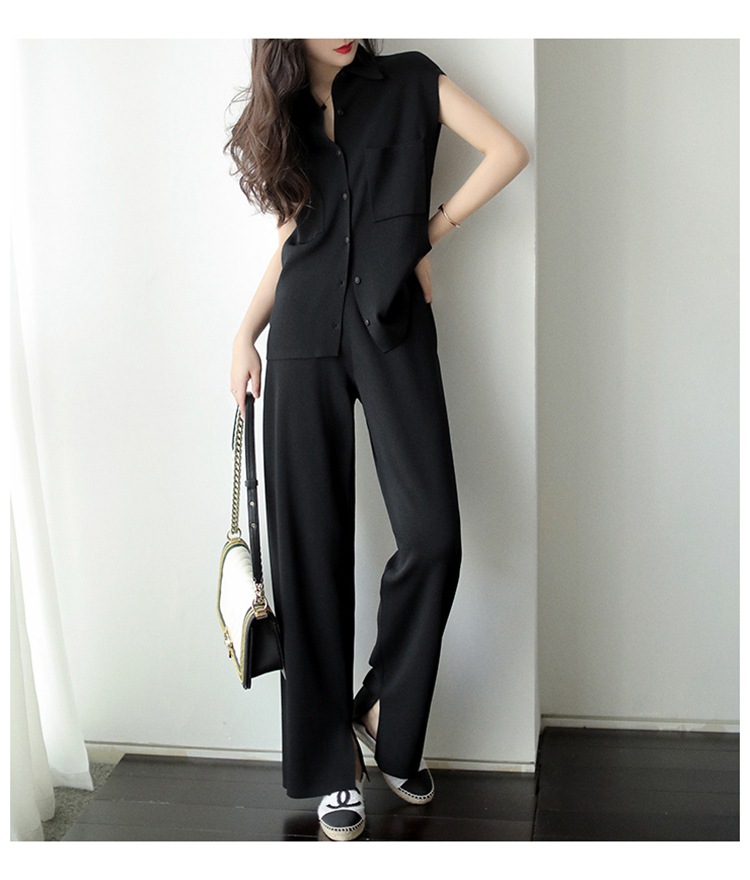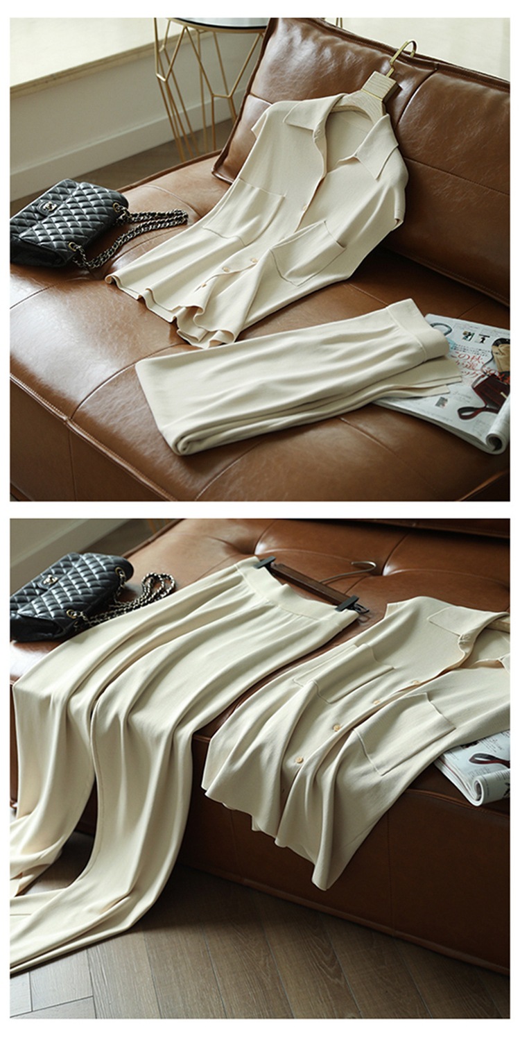 7029는 스타일과 기품을 동시에 갖추고 있습니다! 드레이프 니트 탑+와이드 팬츠 투피스 세트